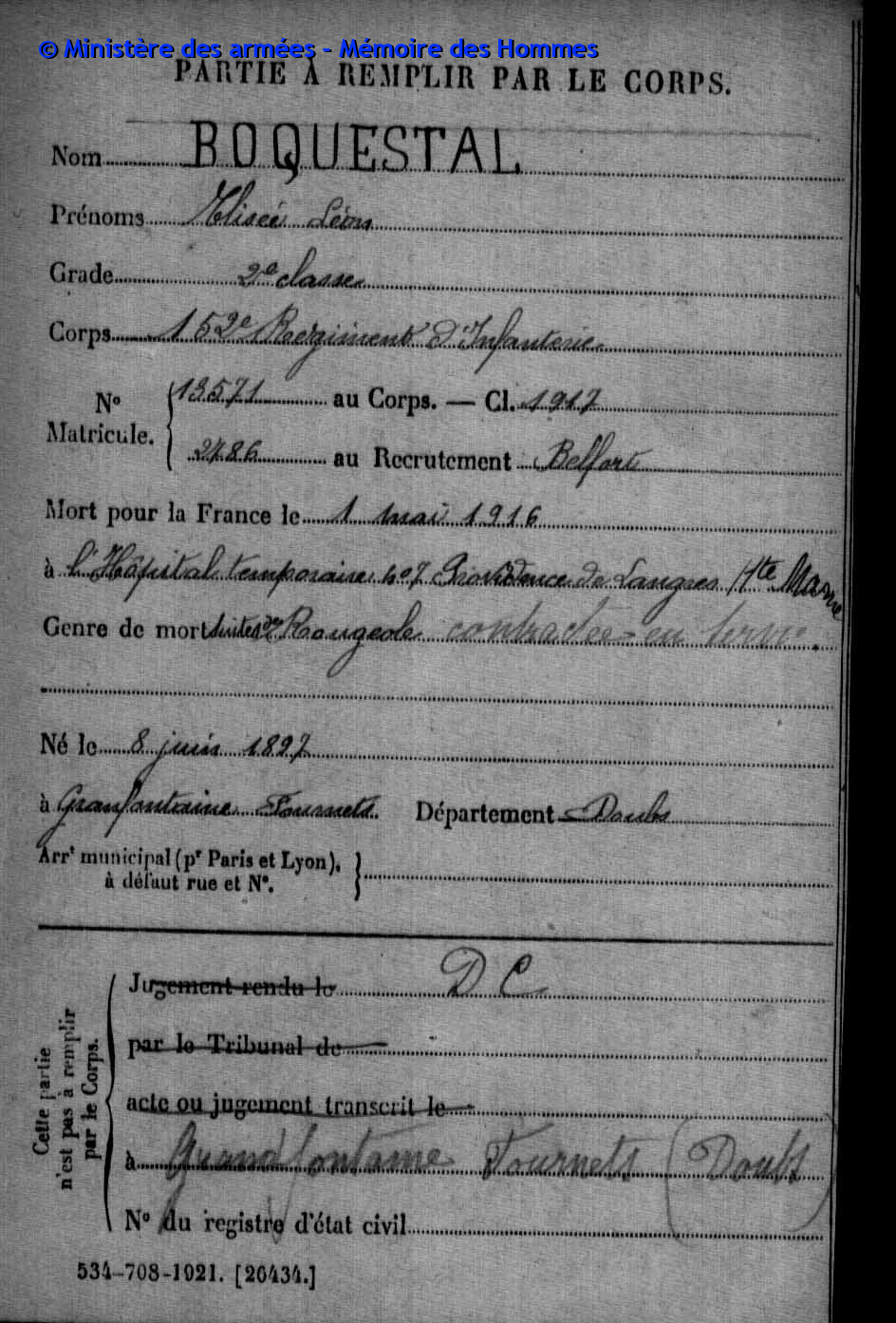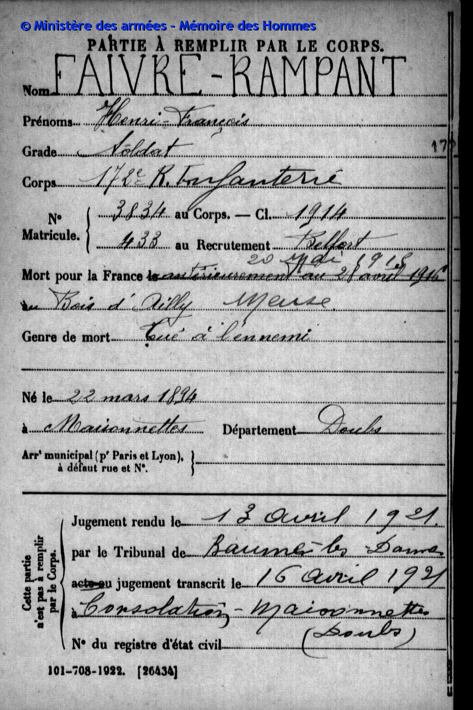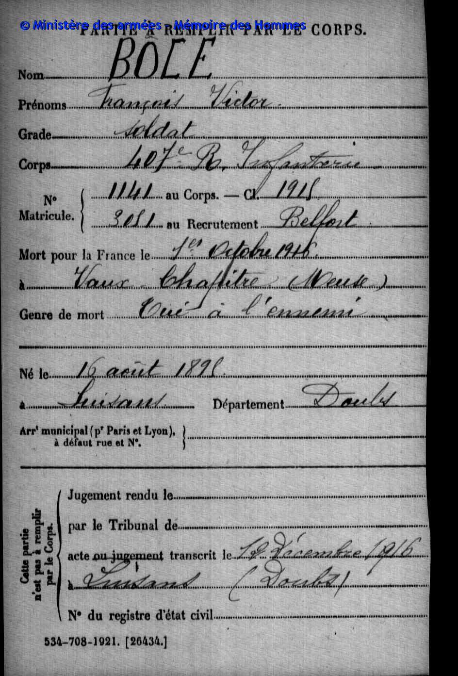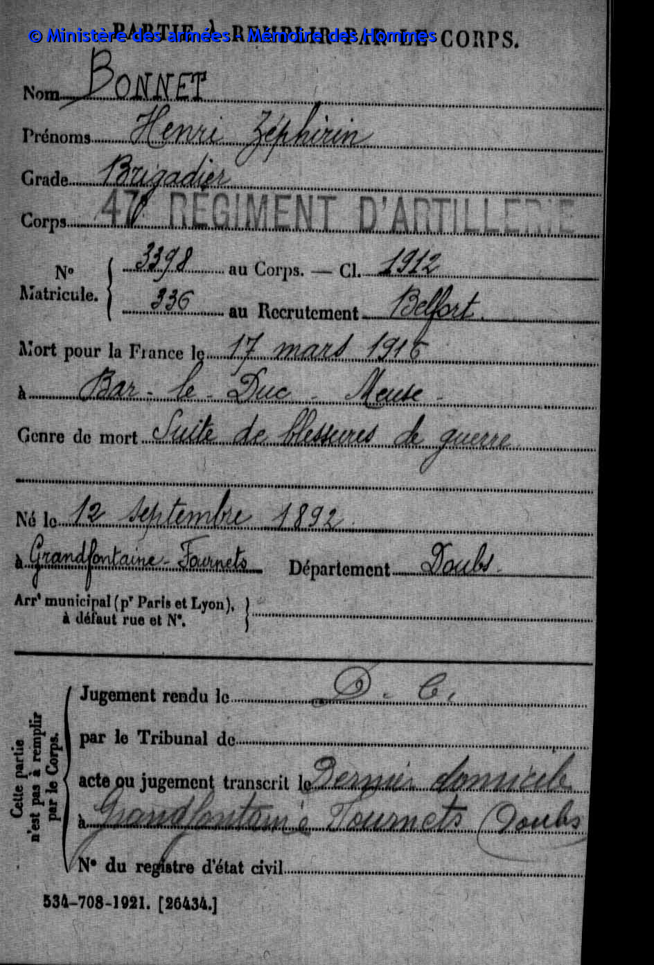 Verstarb an seinen Wunden in Bar-le-Duc - Meuse