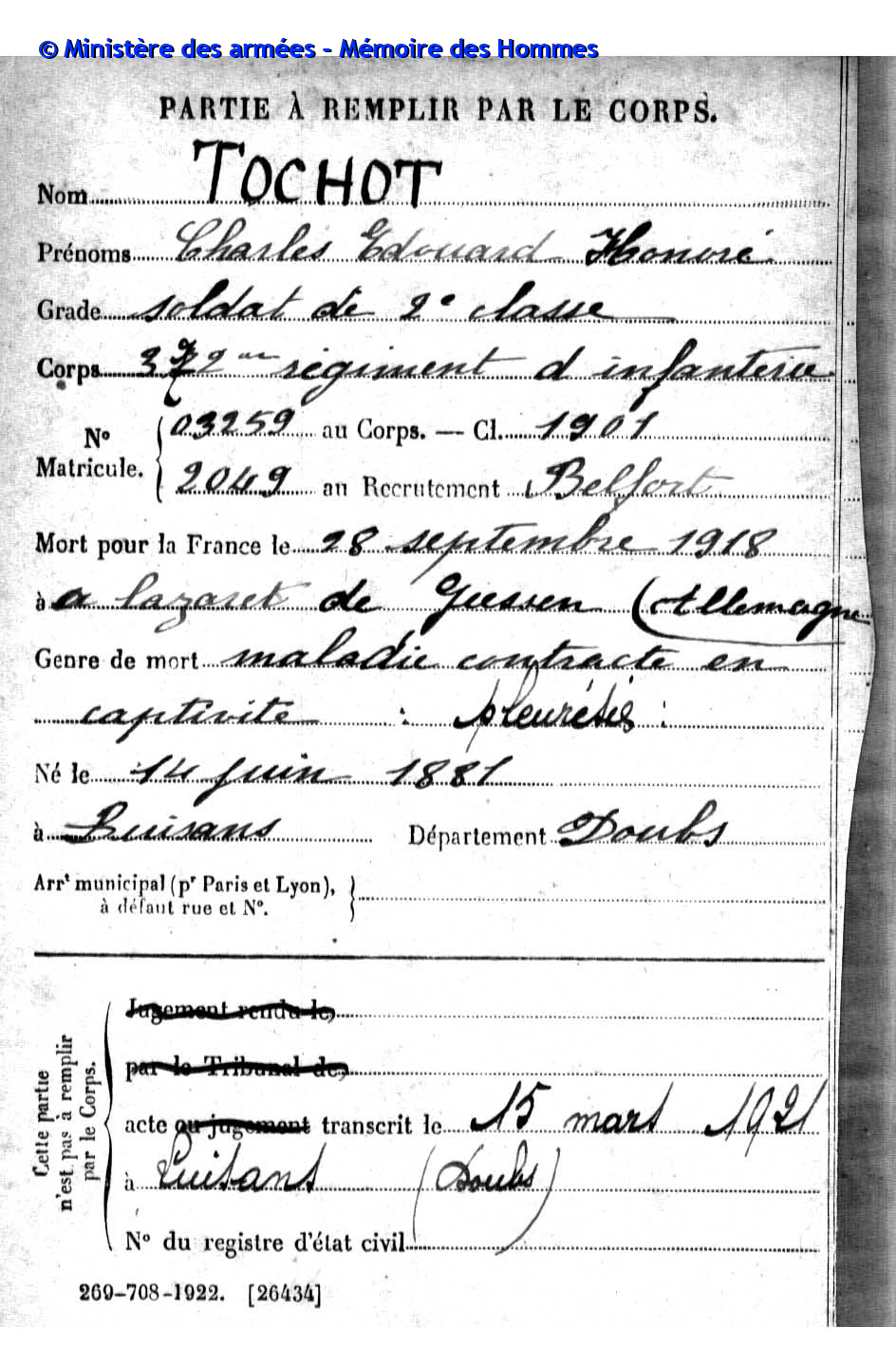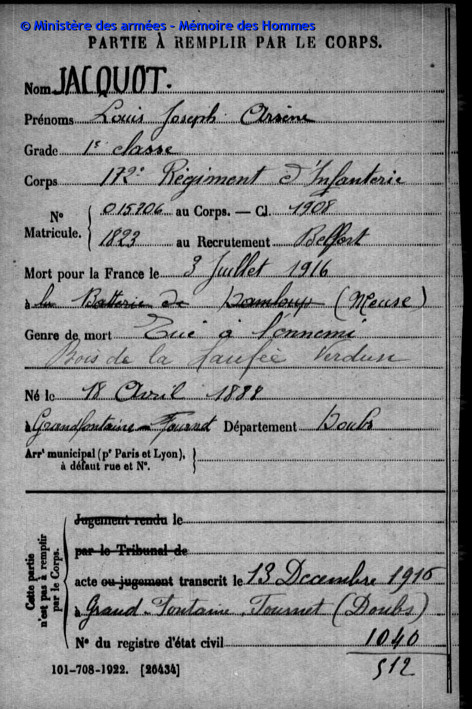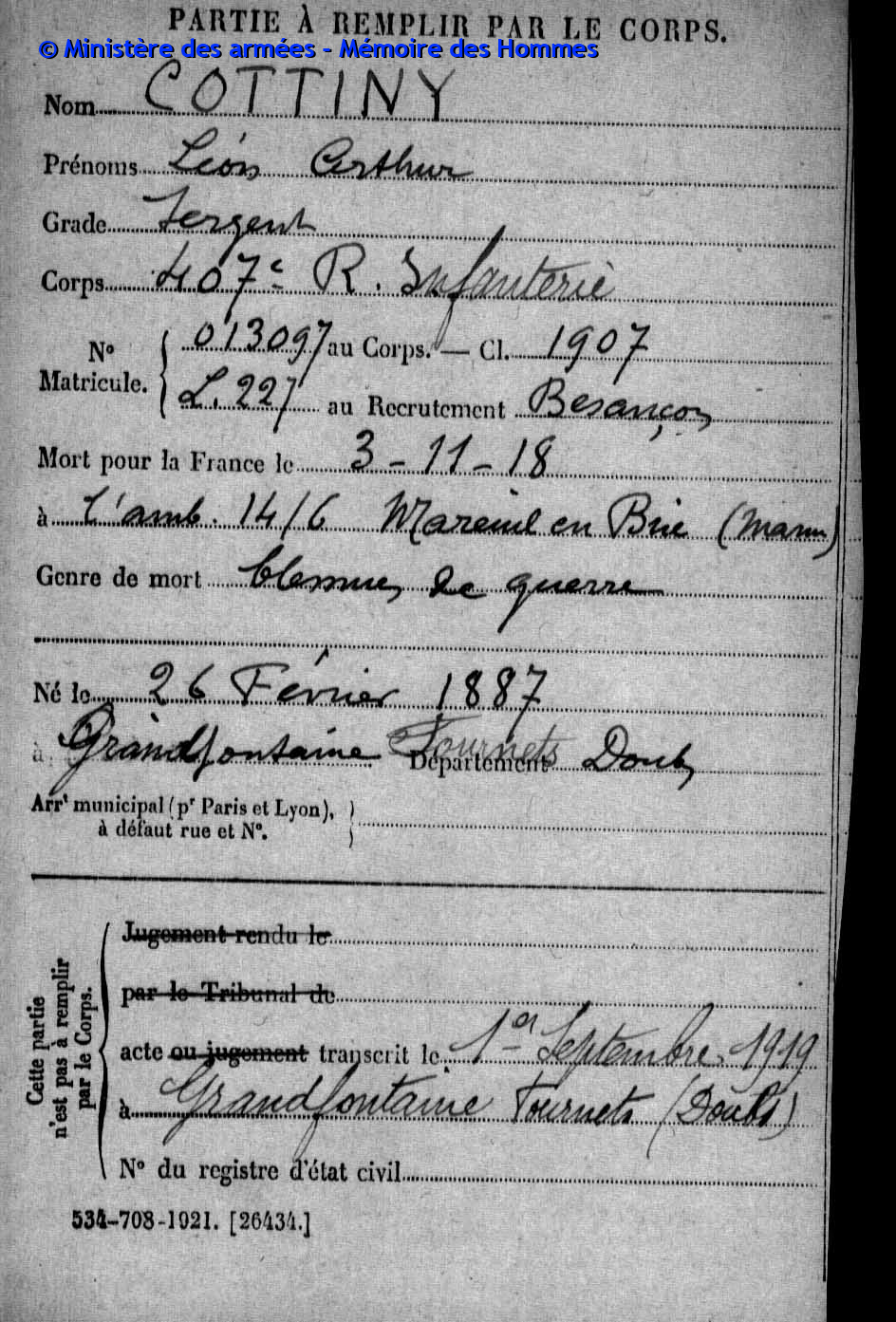 Verstarb an seinen Wunden in Bar-le-Duc - Meuse