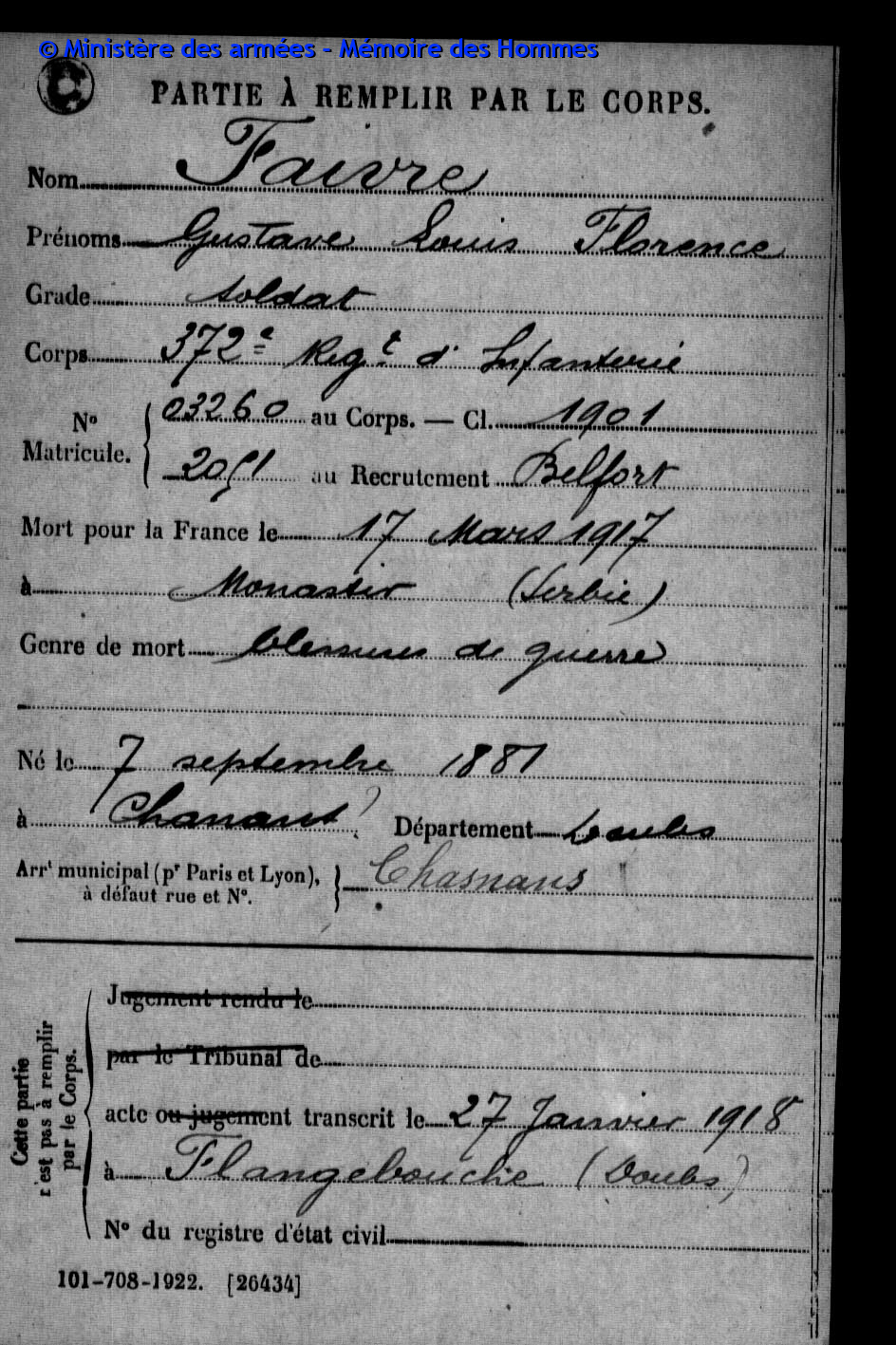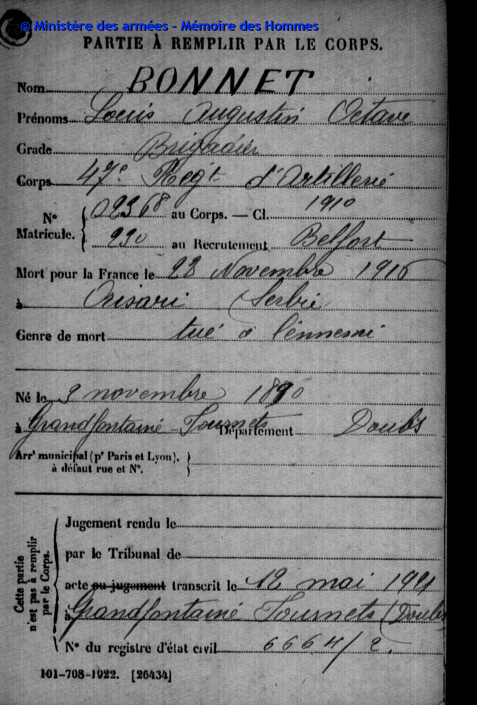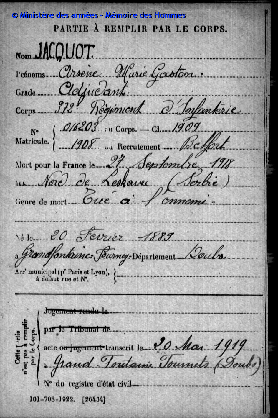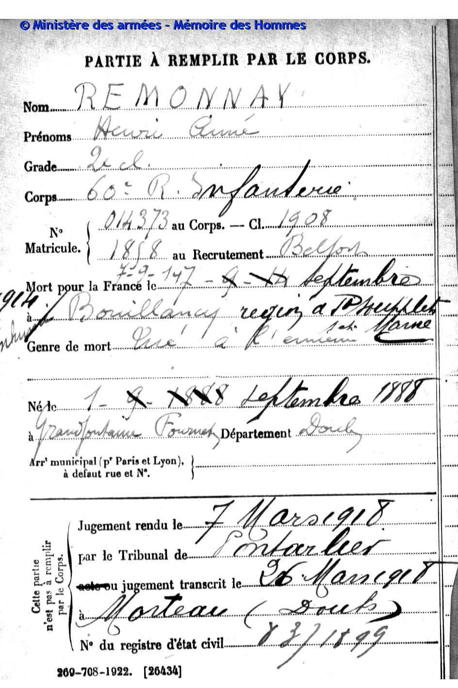 Verstarb an seinen Wunden in Bar-le-Duc - Meuse