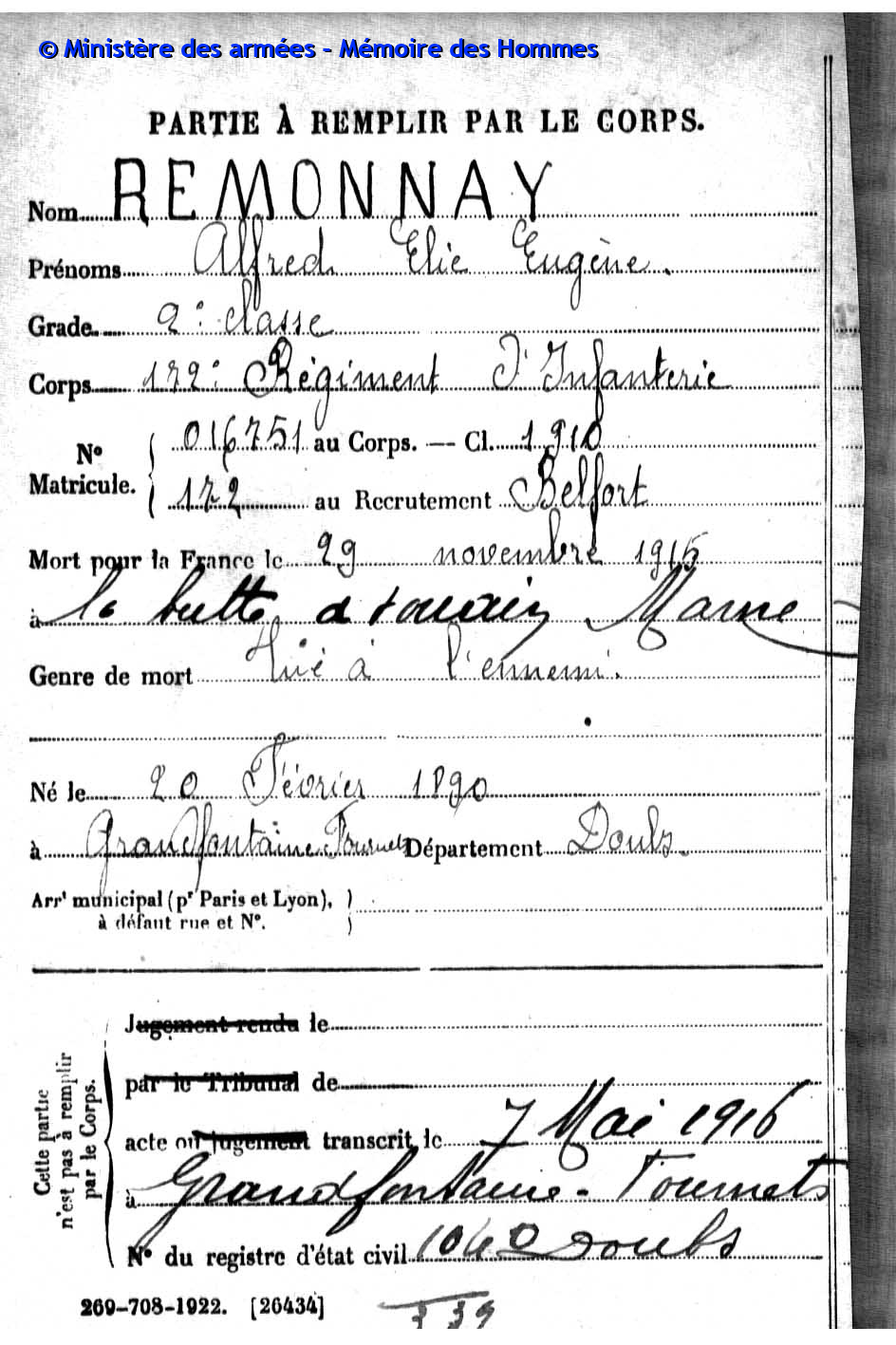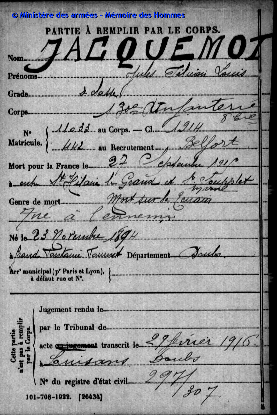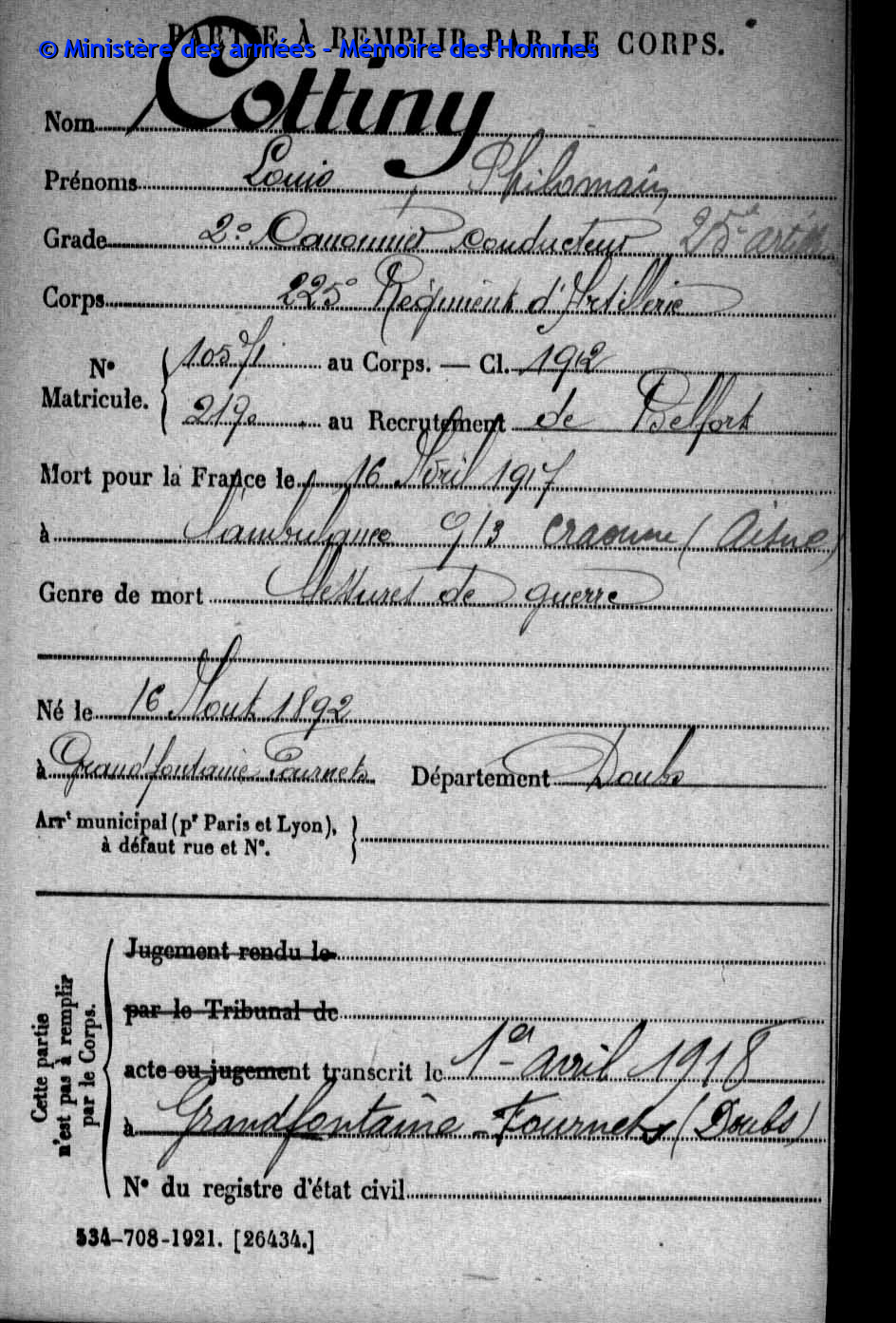 Verstarb an seinen Wunden in Jonchery-sur-Suippe