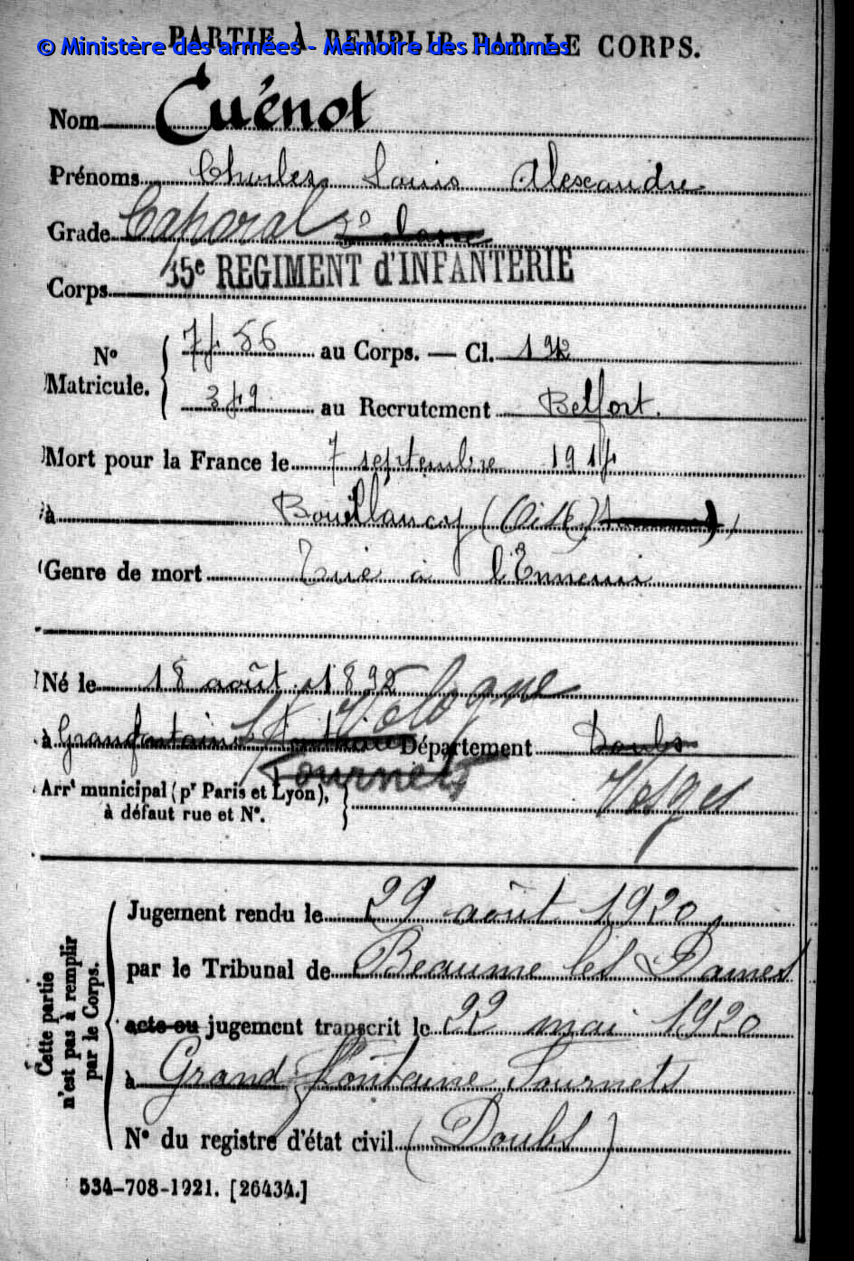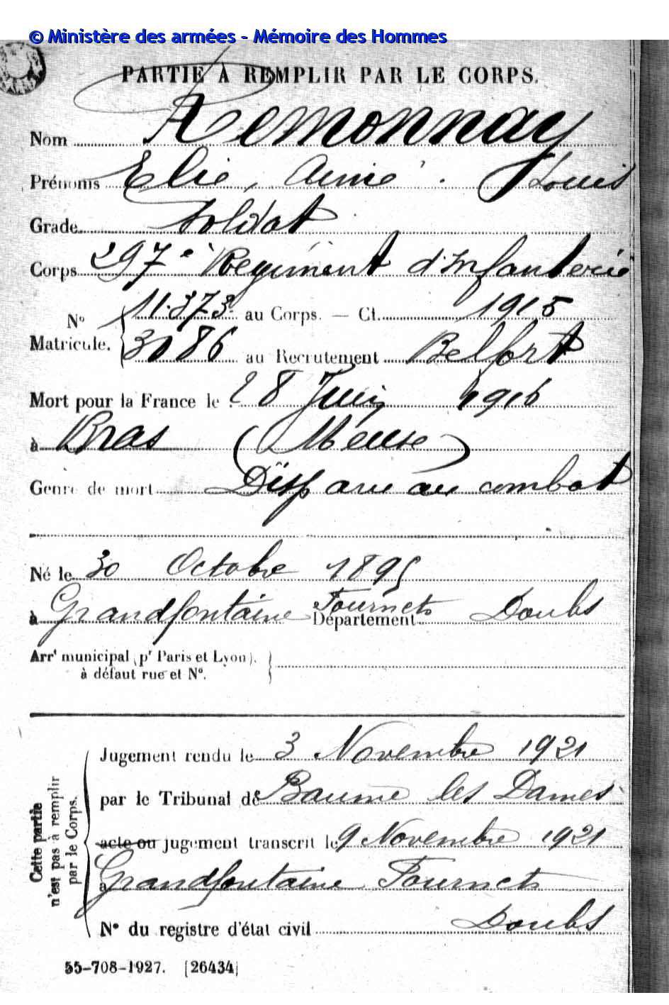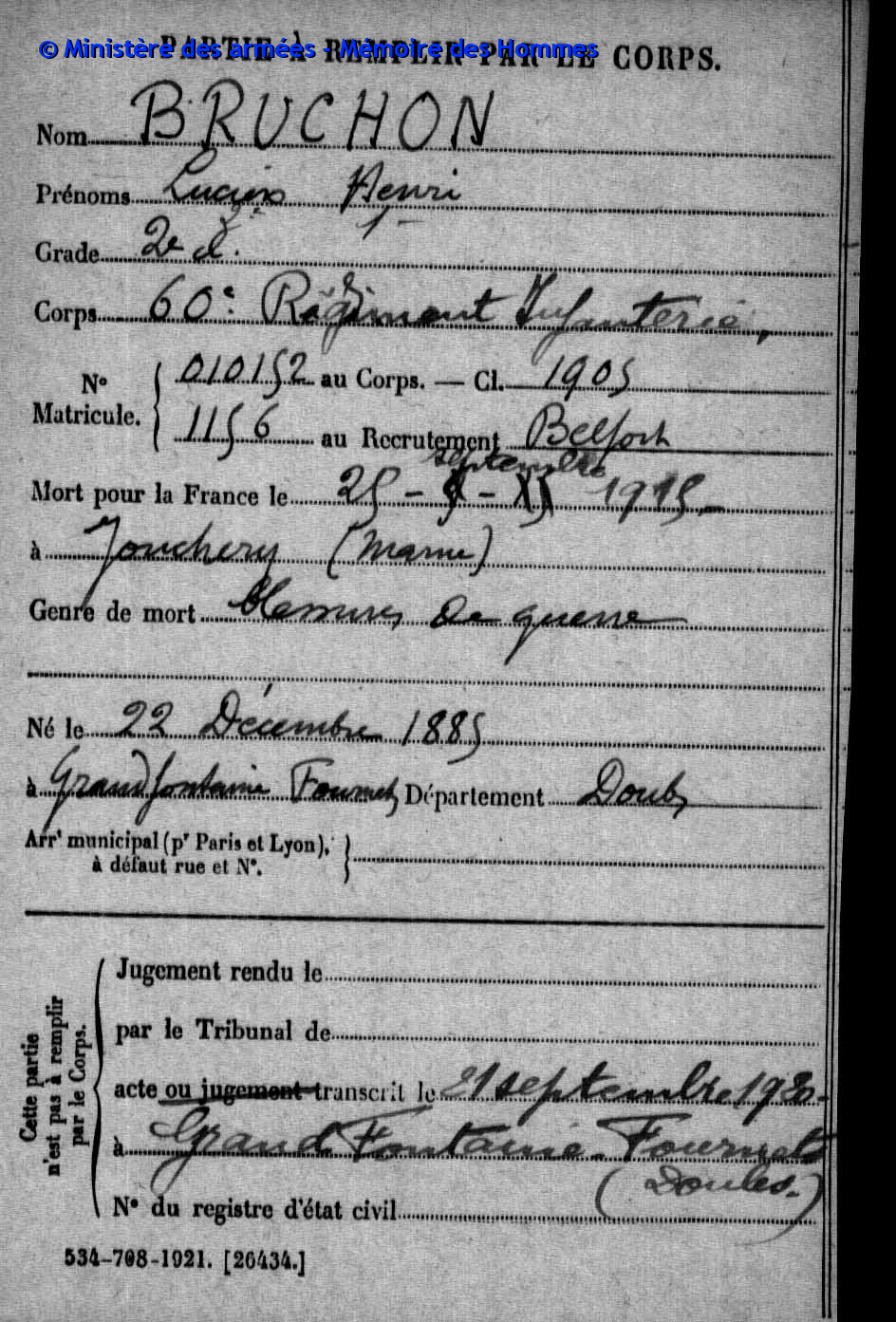 Verstarb an seinen Wunden in Jonchery-sur-Suippe