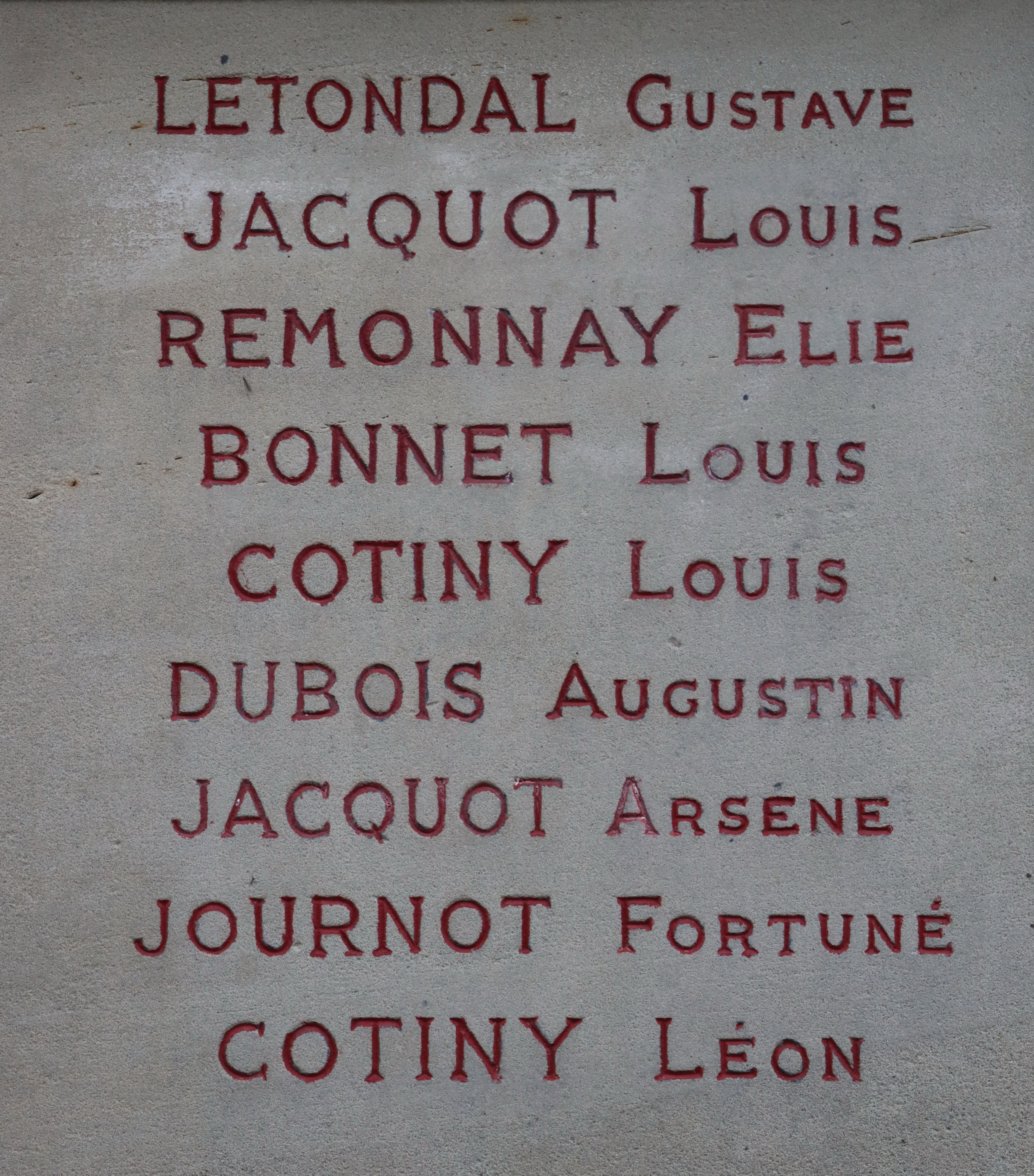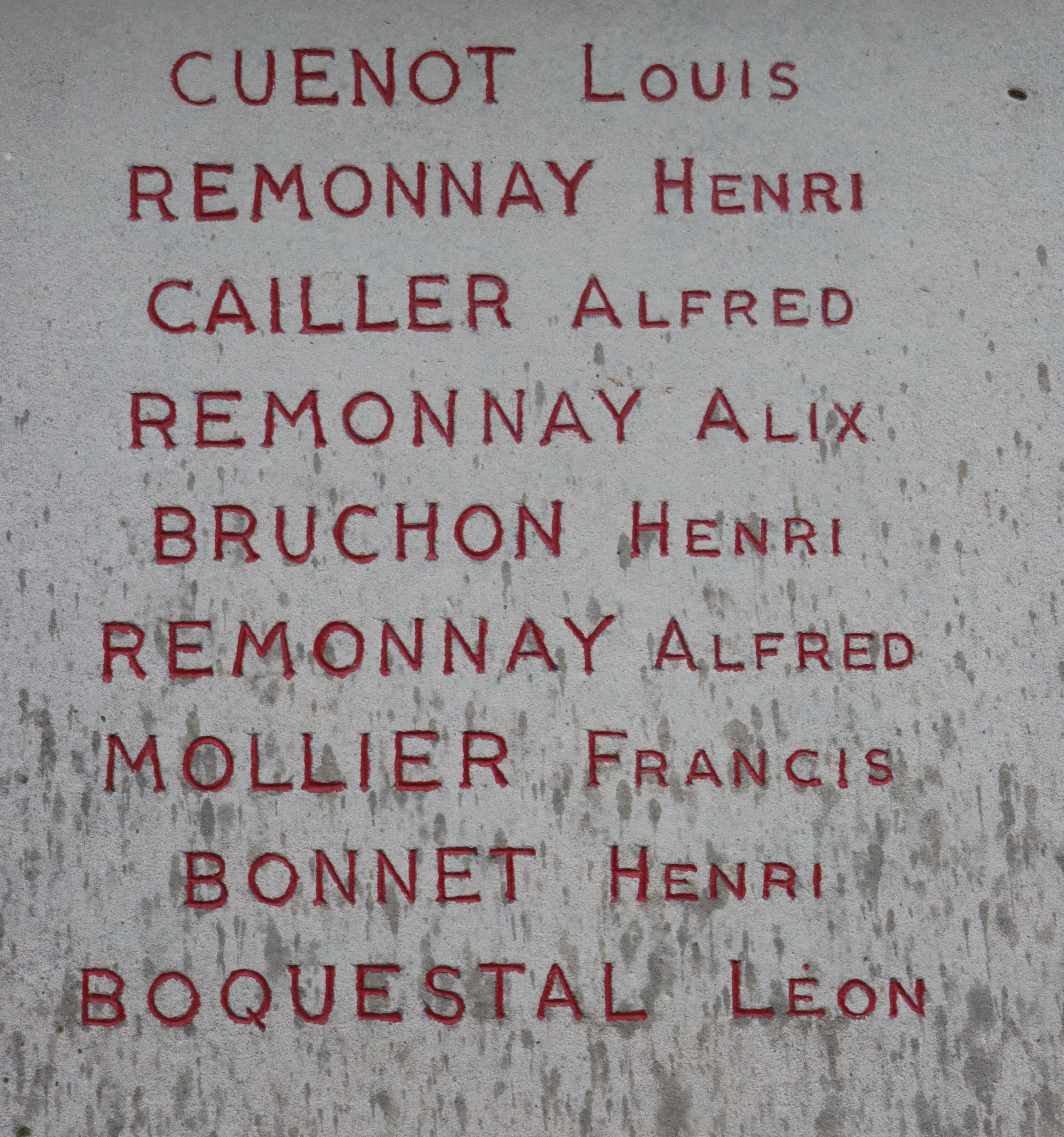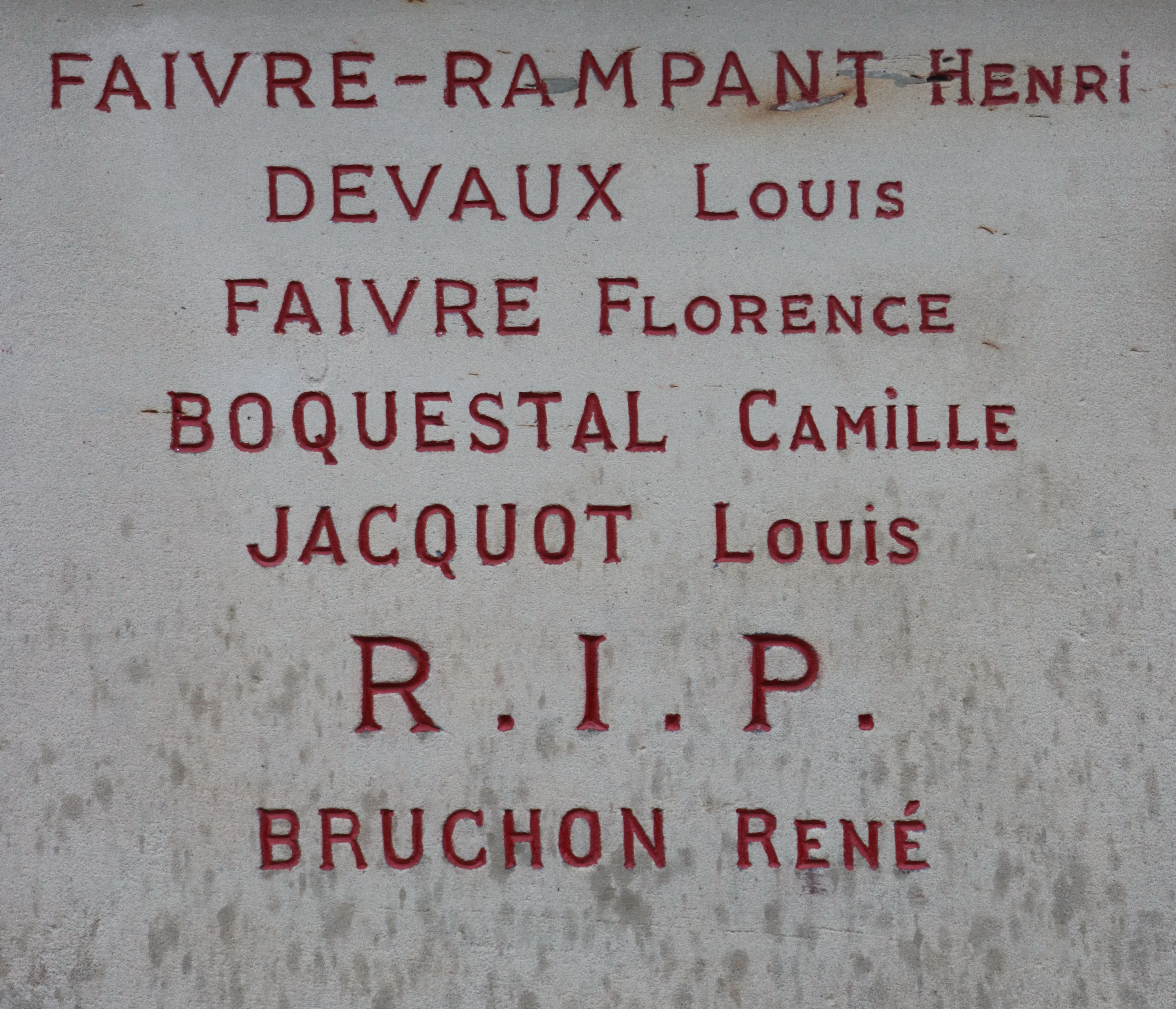 Auf dem Kriegerdenkmal des Ortsteils Grandfontaine-Fournets
