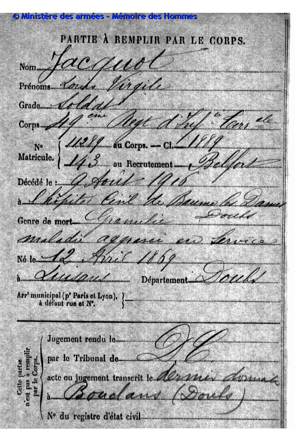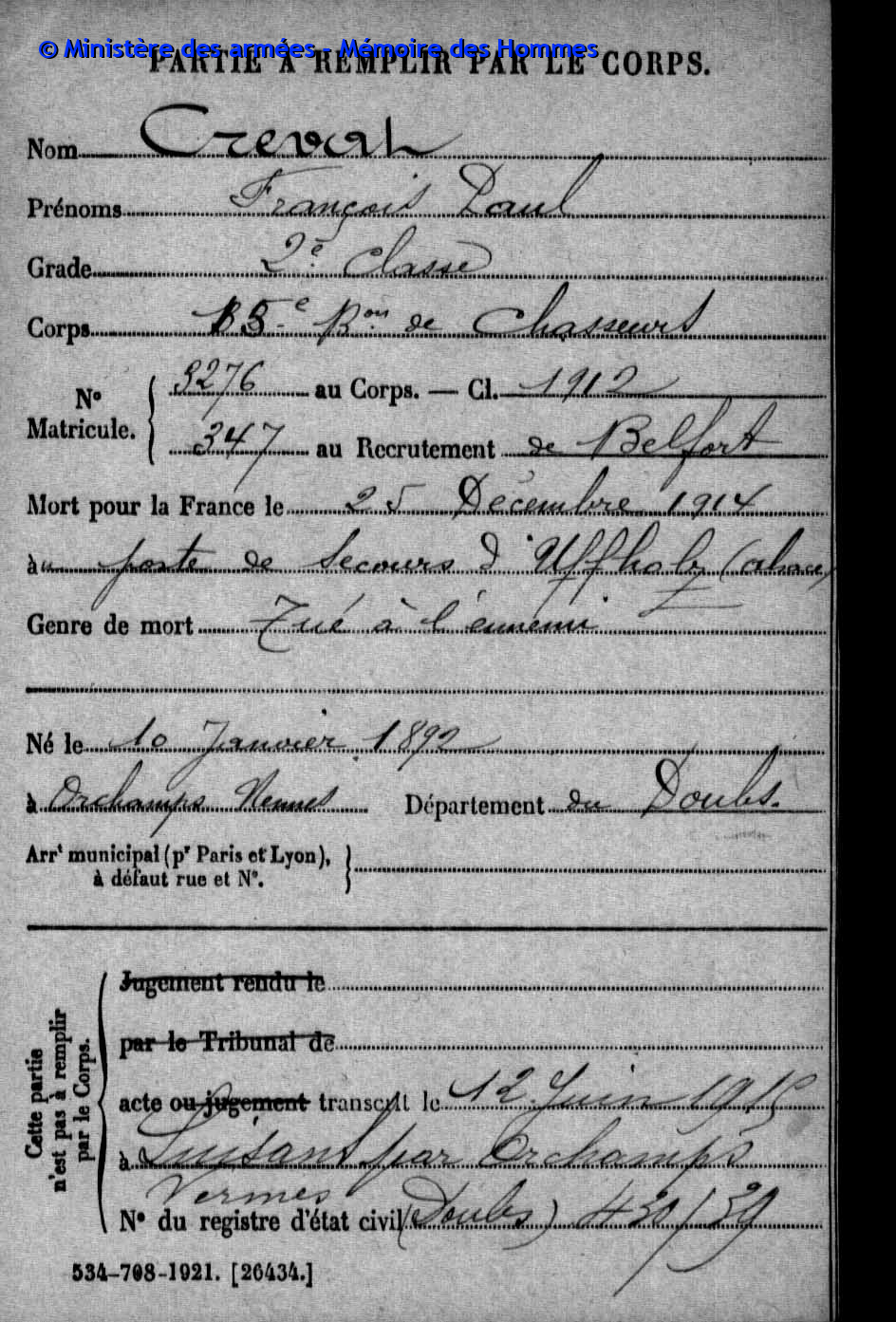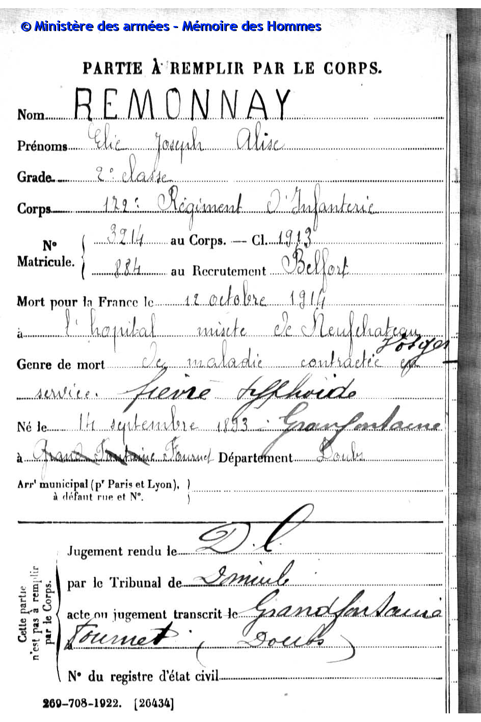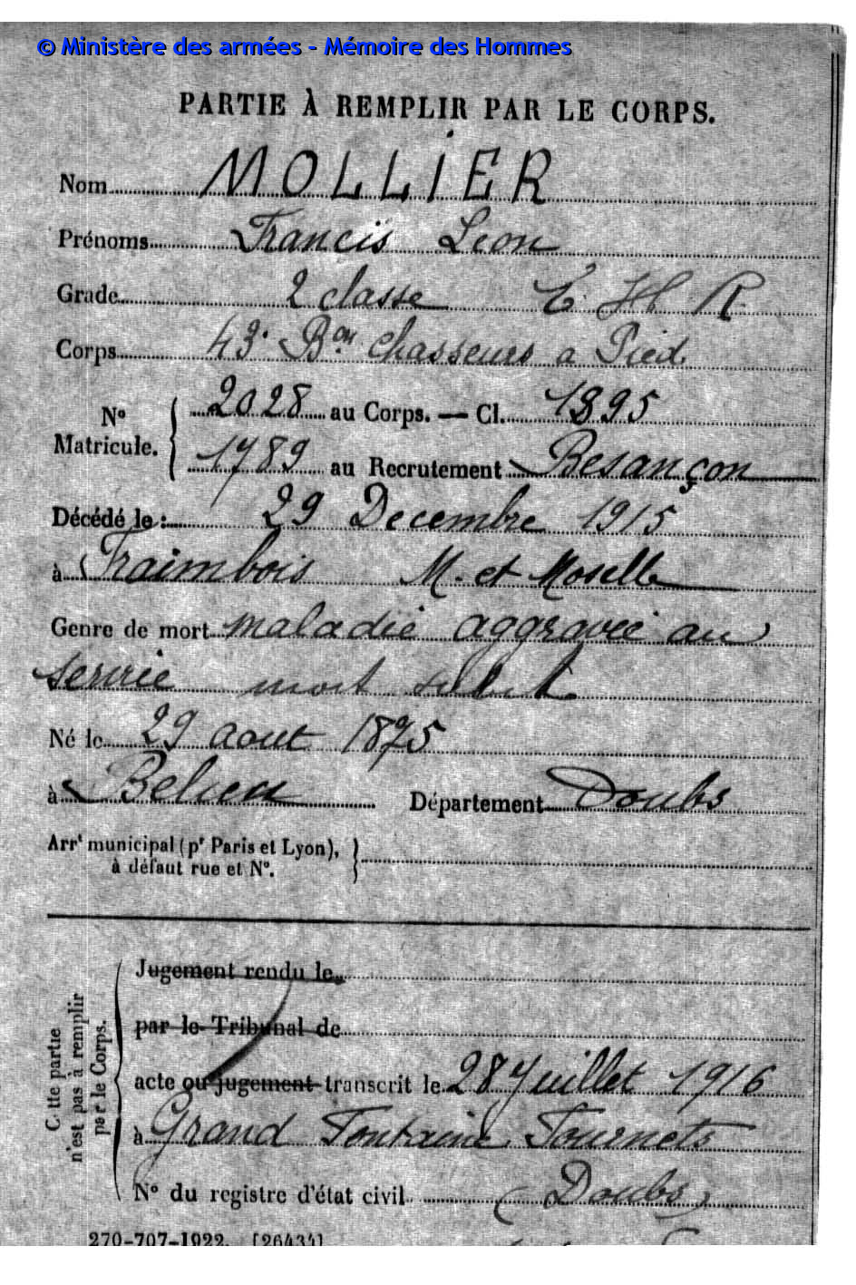 Verstarb durch Krankheit in Fraimbis - Meurthe-et-Moselle