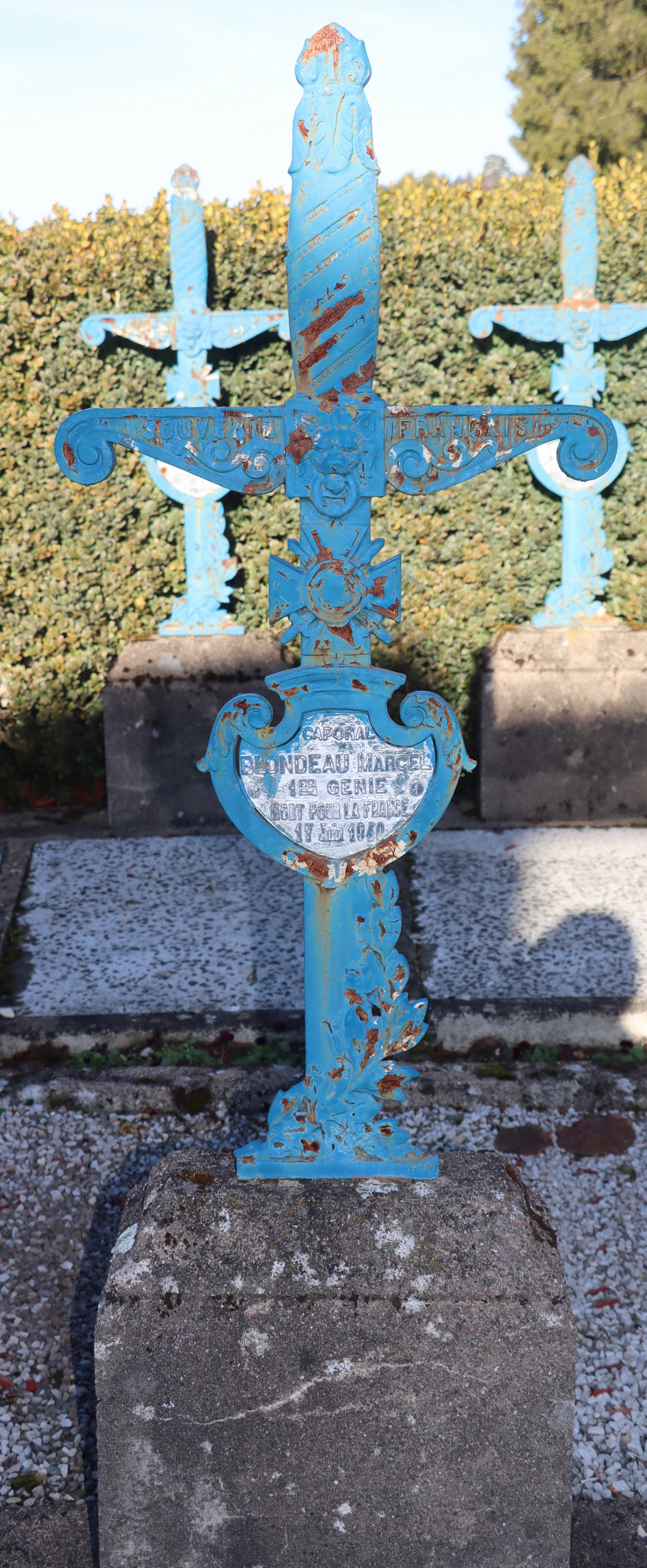 Sapeur MORE Albert Joseph Henri 12.12.1900 - 16.06.1940 15ème Régiment du Génie Verstarb an seinen Wunden in Chaux-les-Port - Haute-Saone (F) Militärfeld Gemeindefriedhof in Navenne (F) Individuelles Grab ohne Nummer |