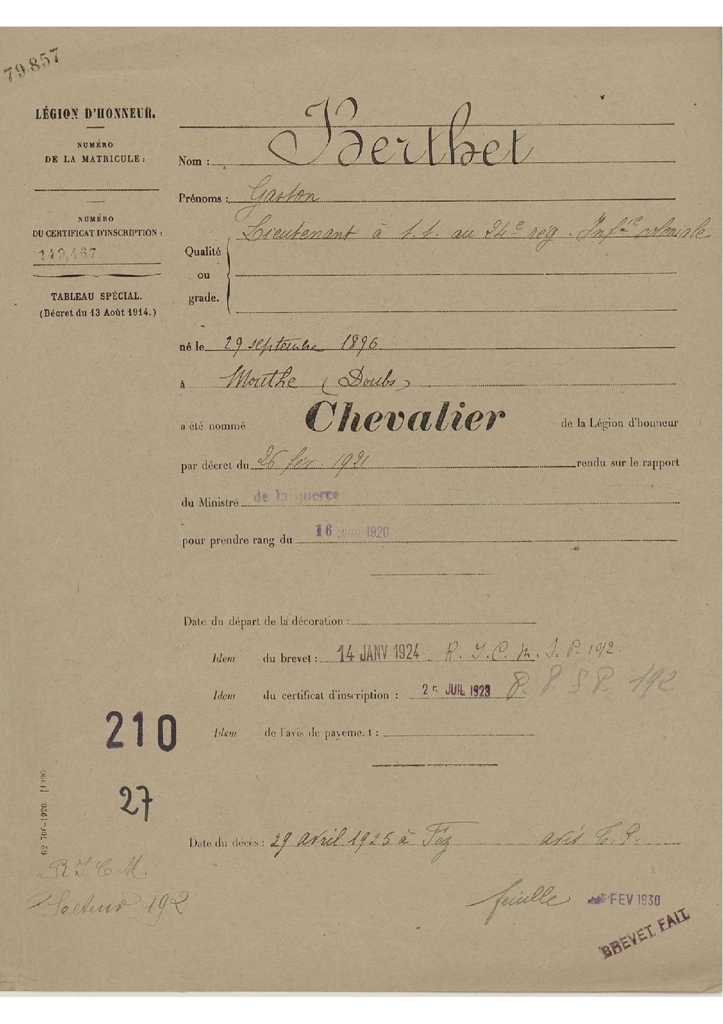 2ème classe MEUNIER Gaston Jules Elie 18.02.1888 - 20.08.1916 2ème Régiment des Marche de Zouaves Gefallen in Jeniköj (Mazedonien) |