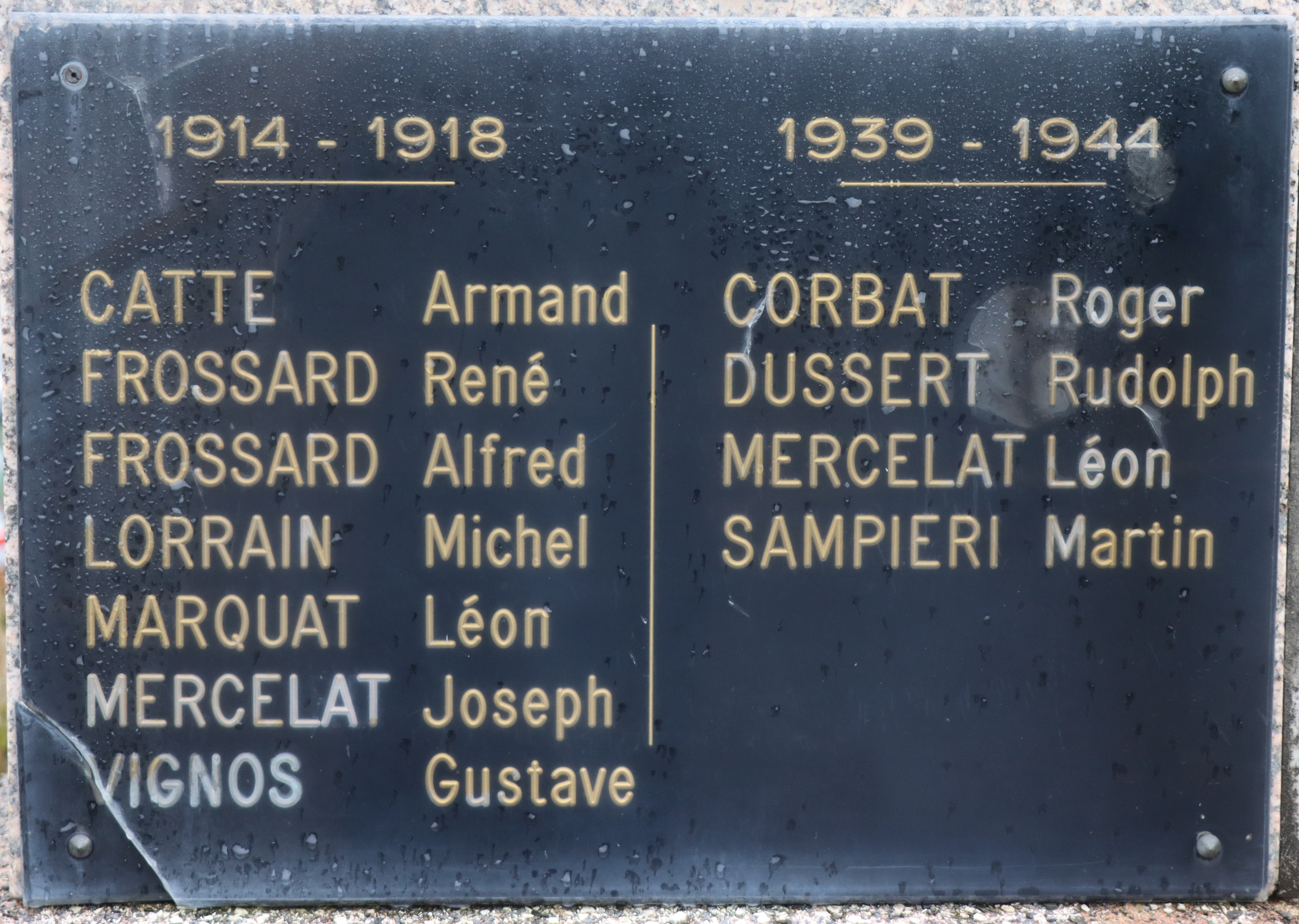 Auf dem Kriegerdenkmal der 2,02 Km2 kleinen Gemeinde mit 338 Einwohner im Departement Territoire de Belfort (F), sind 5 von den 12 Kriegsopfer mit Fabian Coulot verwandt.
