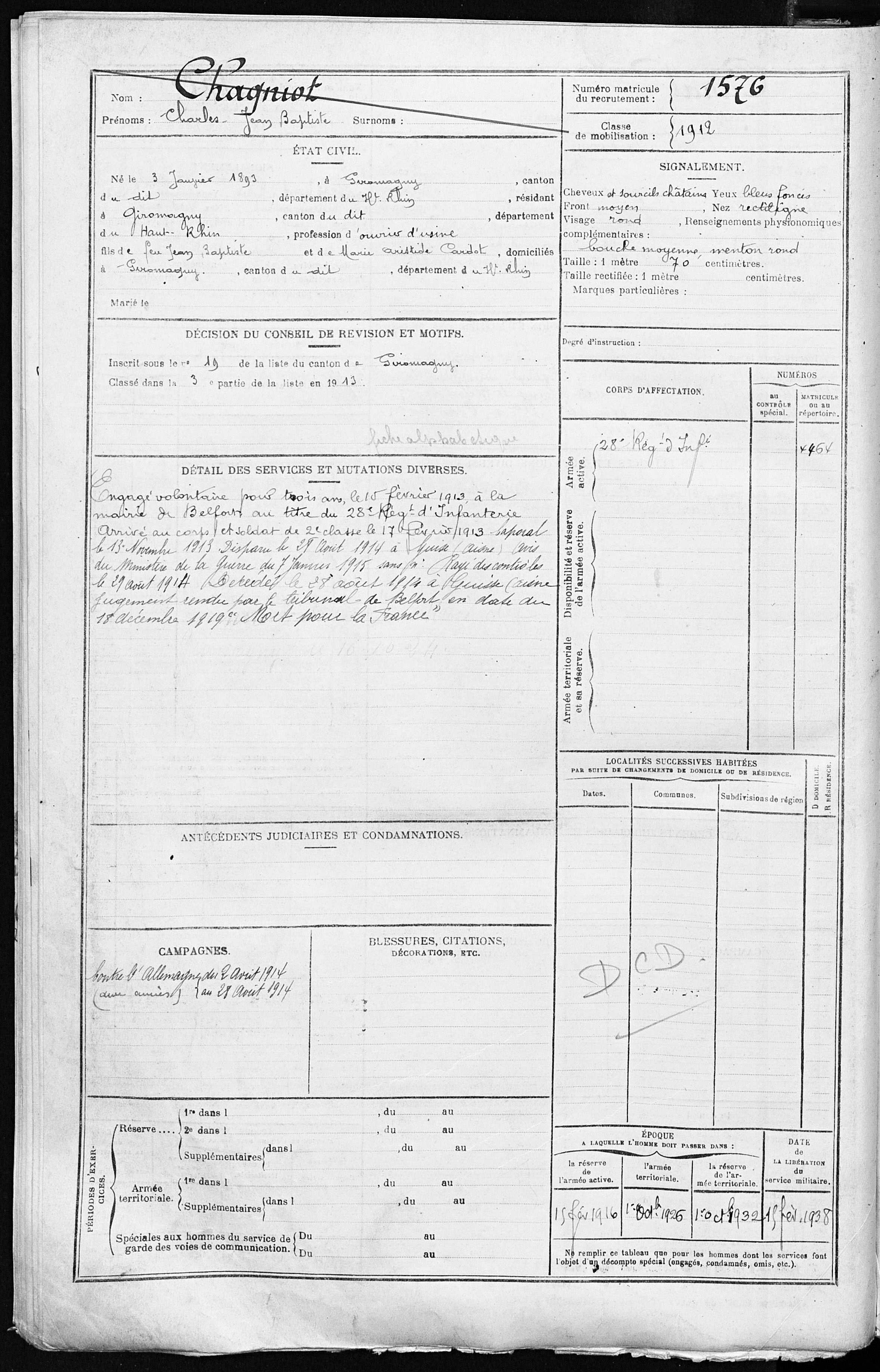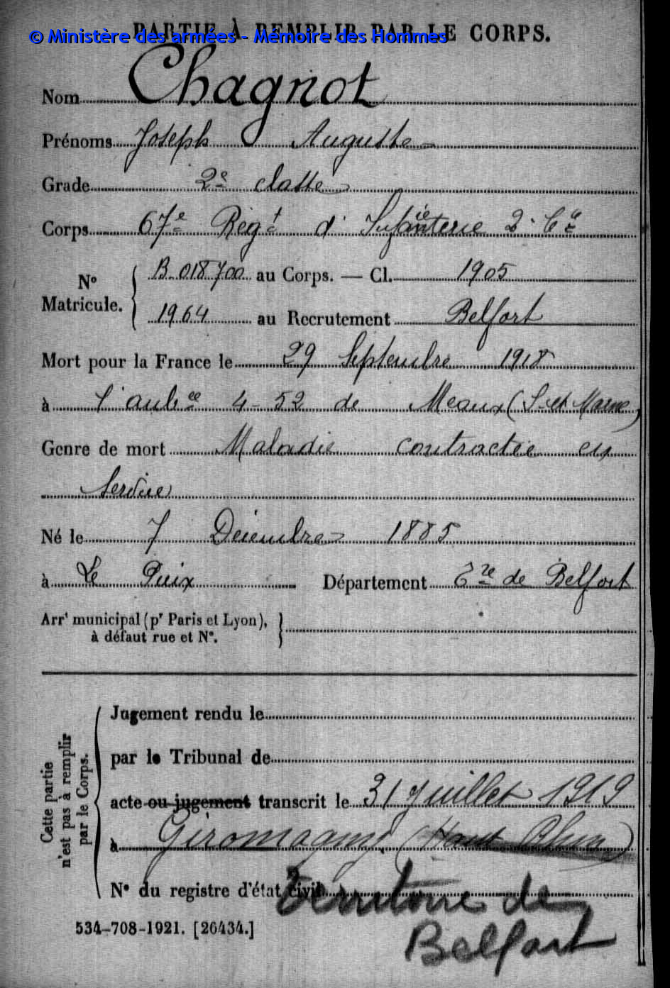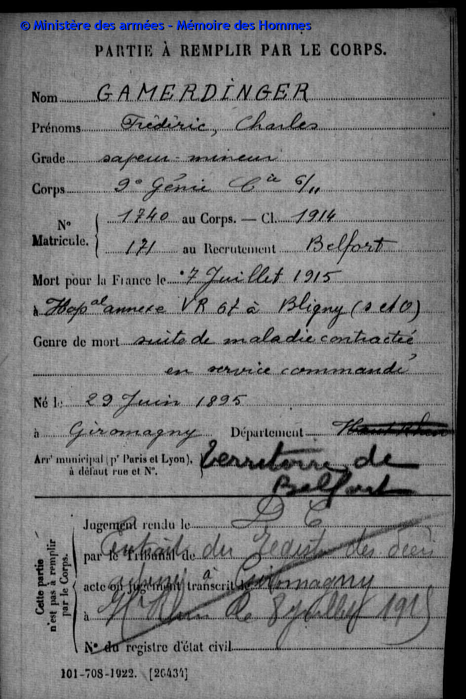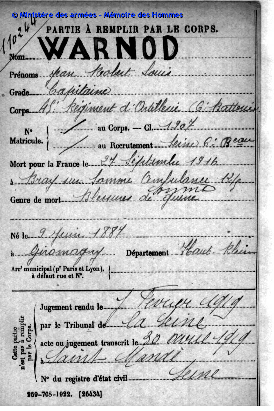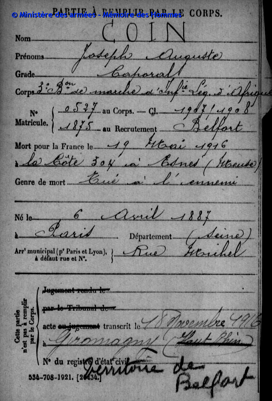 Aspirant GINOT Marcel Charles Jean 26.06.1898 - 02.06.1918 152ème Régiment d'Infanterie 9ème Compagnie (Rote Teufel aus Colmar / F) Gefallen in Belleau - Aisne (F) |
