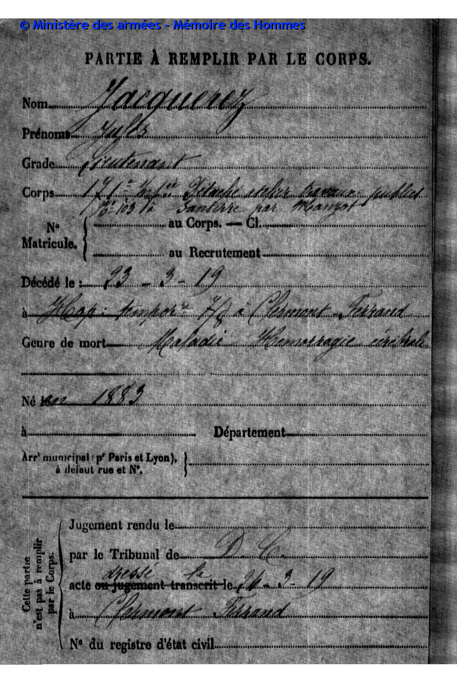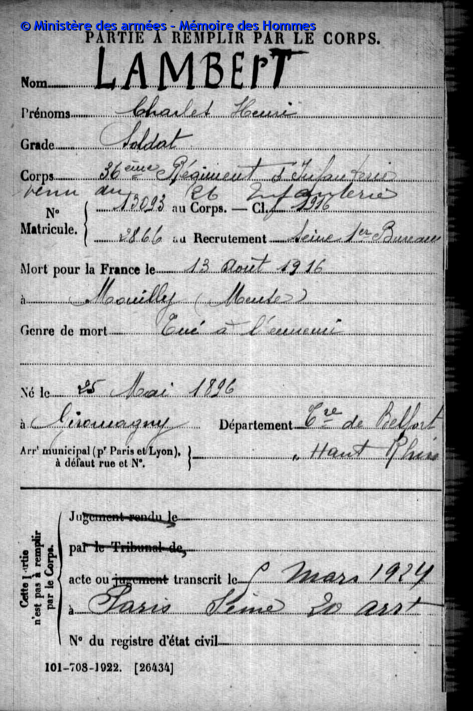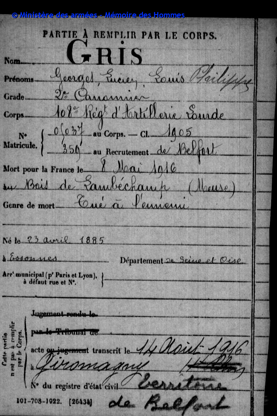 Sous-lieutenant CANAL Camille Joseph 06.09.1894 - 13.05.1916 42ème Régiment d'Infanterie Gefallen beim Fort Vaux in Verdun (F) |