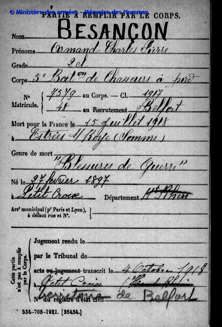 er am 06.09.1915 nochmals über Petit-Croix