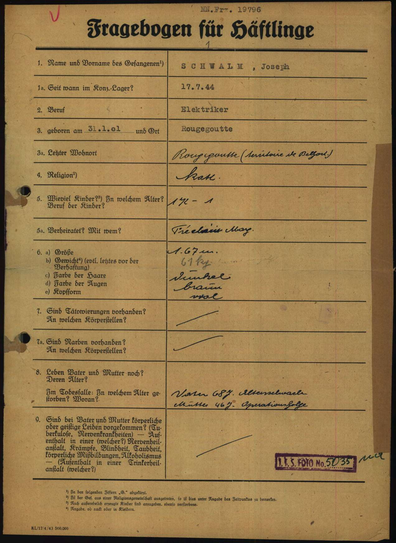 Soldat MARCHAL Paul Louis 03.06.1908 - 09.06.1940 35ème Régiment d'Infanterie Gefallen in Frankreich (Keine näheren Informationen bekannt) |