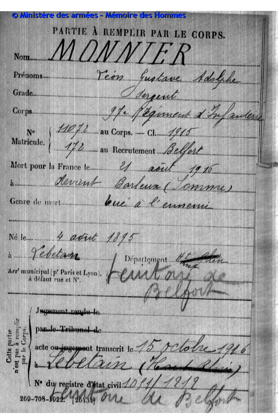Territoire de Belfort (F) sind auf dem Kriegerdenkmal 42 Kriegsopfer