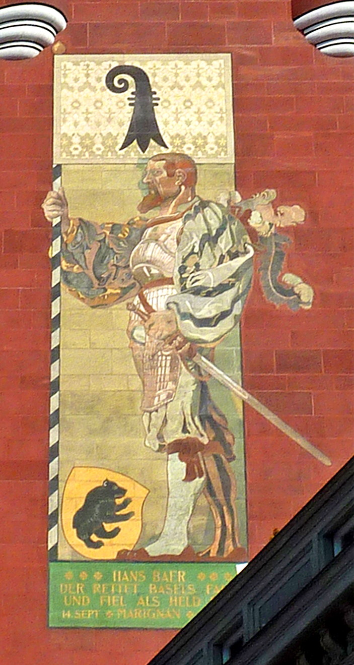 Hauptmann Hans Michael Finck 1485 - 14.09.1515 Befehlshaber der Truppen aus dem französischen Mulhouse, welches damals der Eidgenossenschaft angehörte. Gefallen bei der Schlacht |