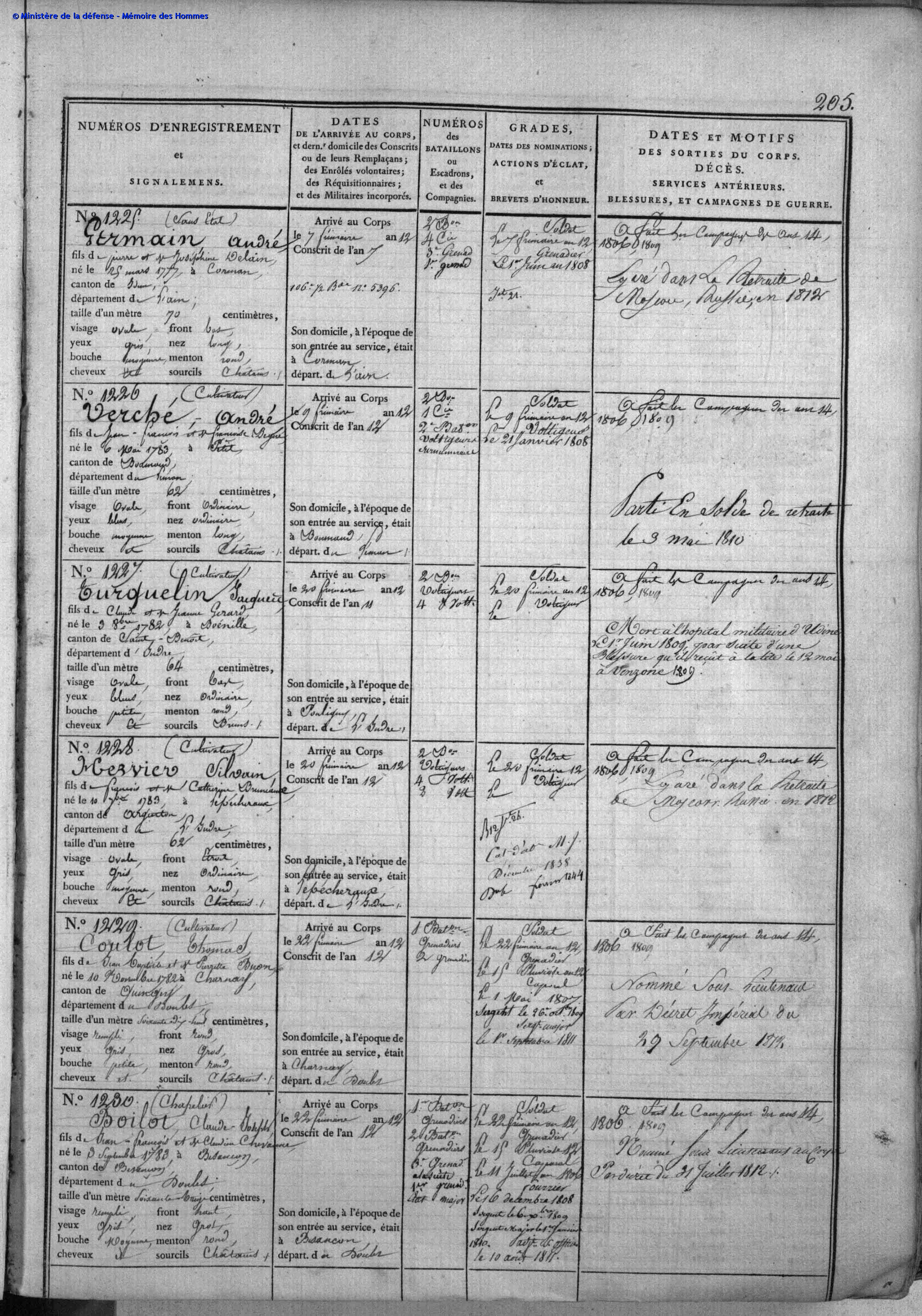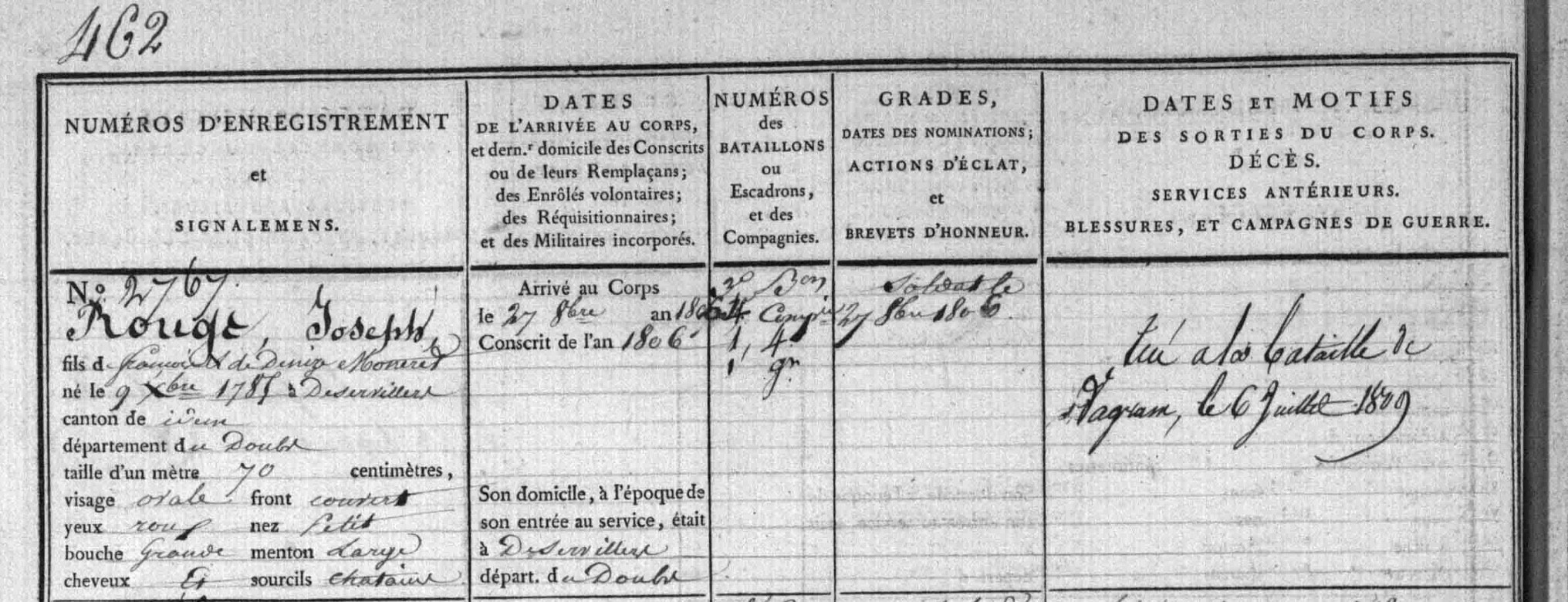 Soldat Marie Agapite Ravier 13.05.1781 - 06.07.1809 Gefallen |