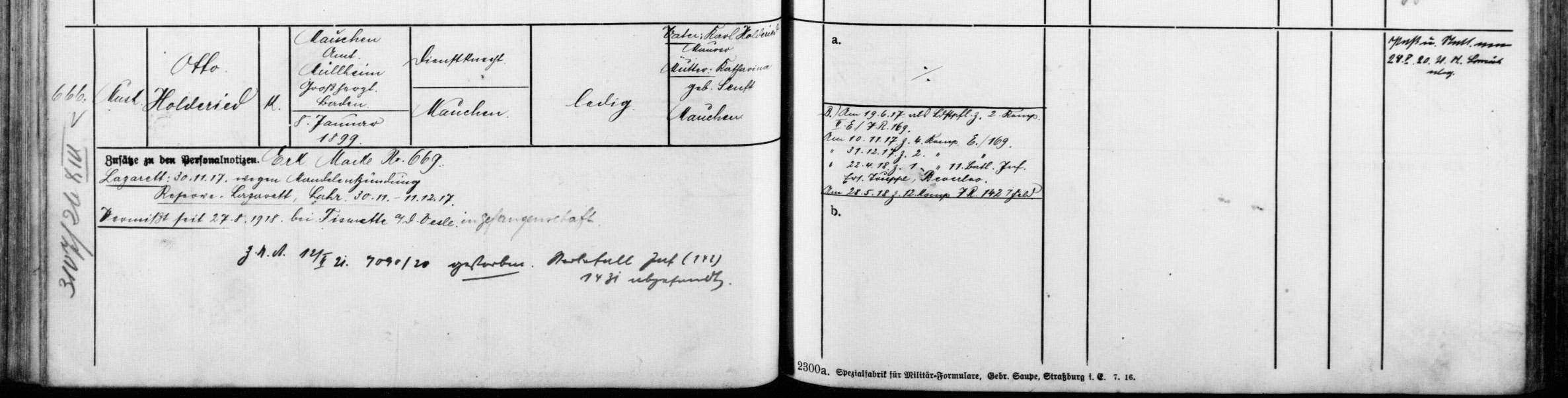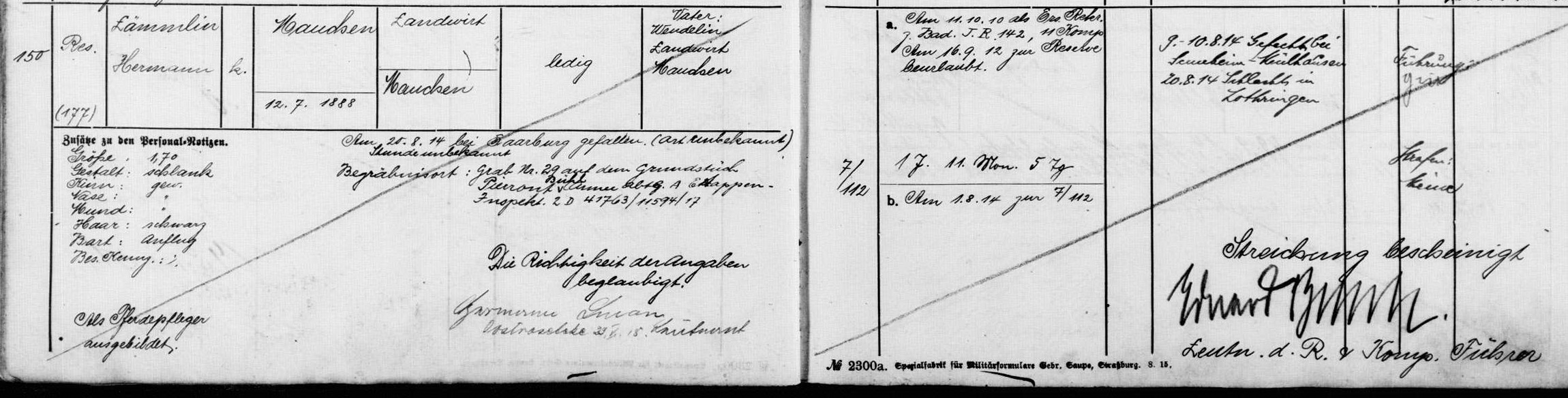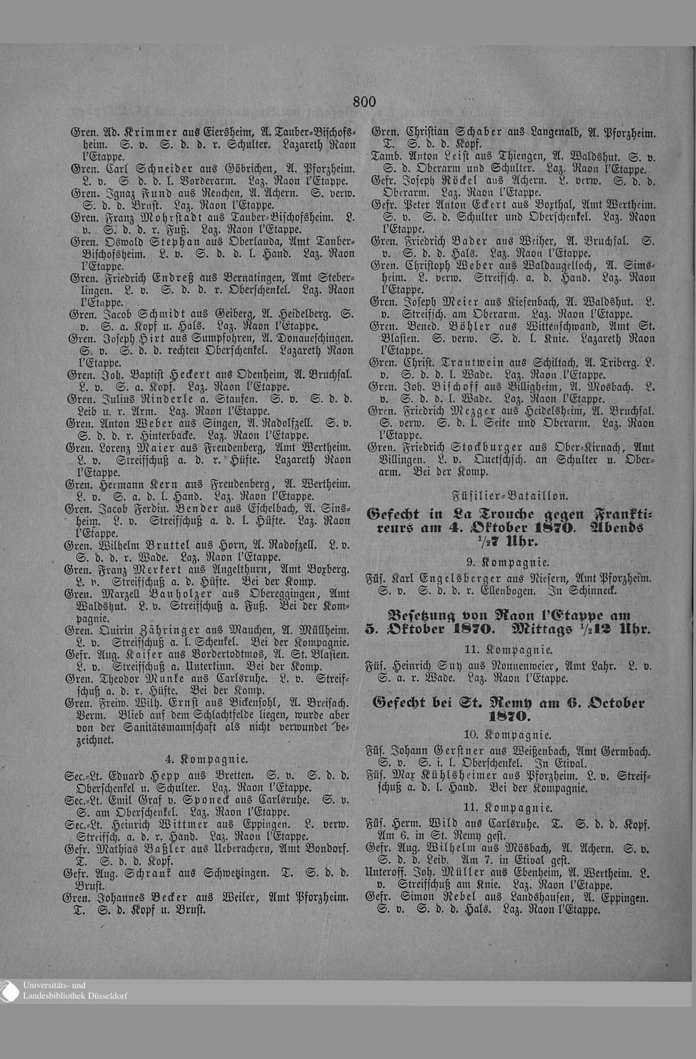 Grenadier ZÄHRINGER Quirin 28.03.1849 - 01.07.1888 Grossherzoglich Badisches 1.Leib Grenadier Regiment 3. Kompagnie Verwundung beim Gefecht in Etival (F) |