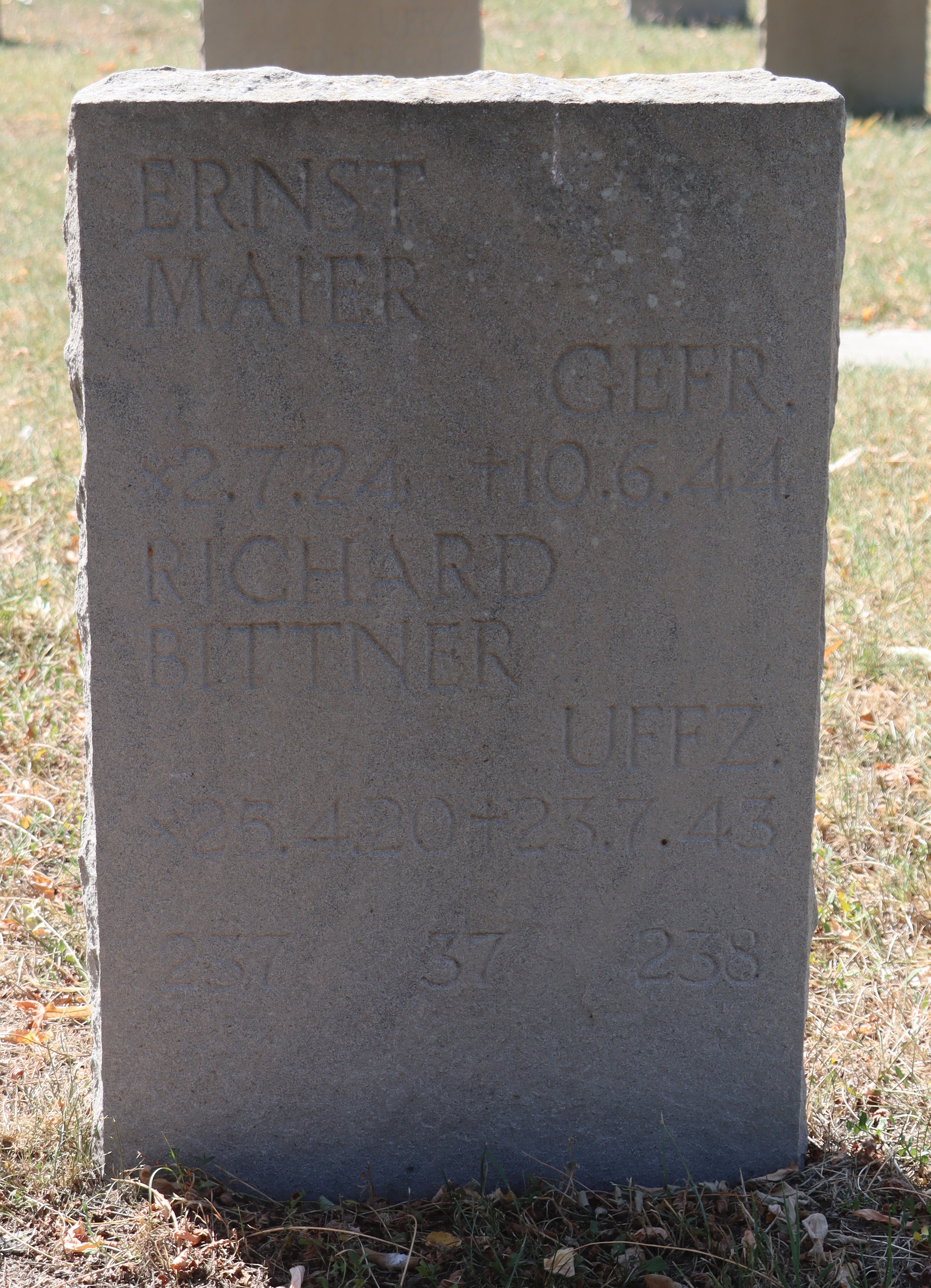 Soldat MAYER Emil Friedrich 22.09.1922 - 01.01.1945 Gilt als vermisst in Polen Kriegsgräberstätte in Poznan-Milostowo (PL) Name im Gedenkbuch verzeichnet |