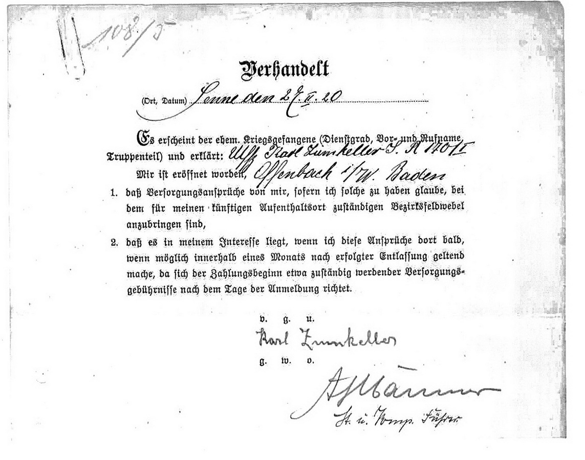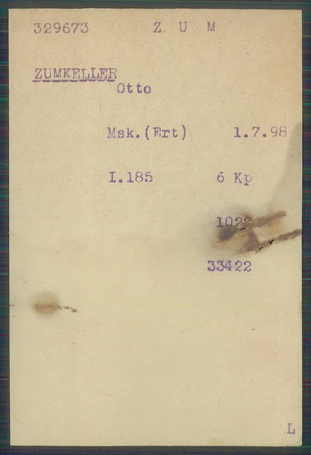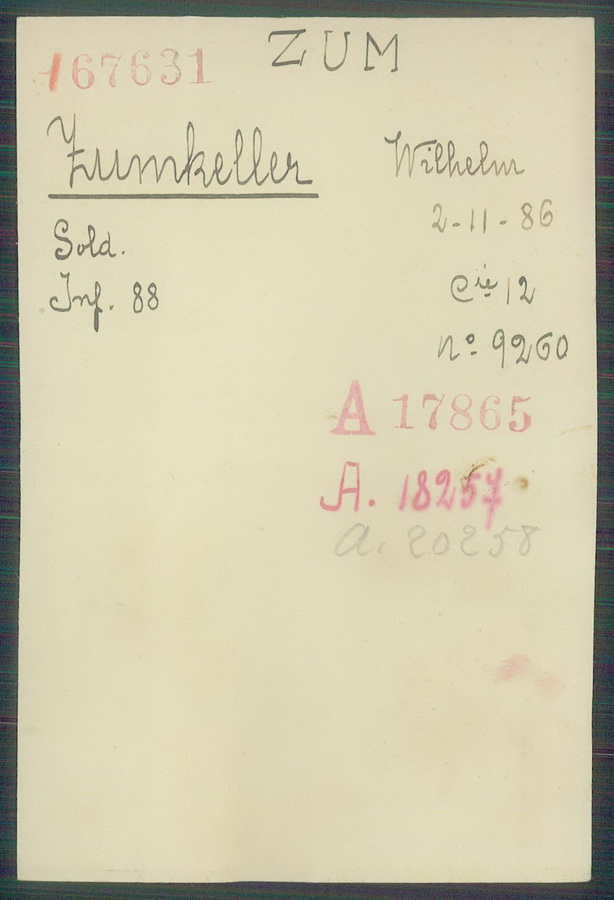 Musketier Otto ZUMKELLER geboren: 01.07.1898 Infanterie Regiment 185, 6. Kompagnie |