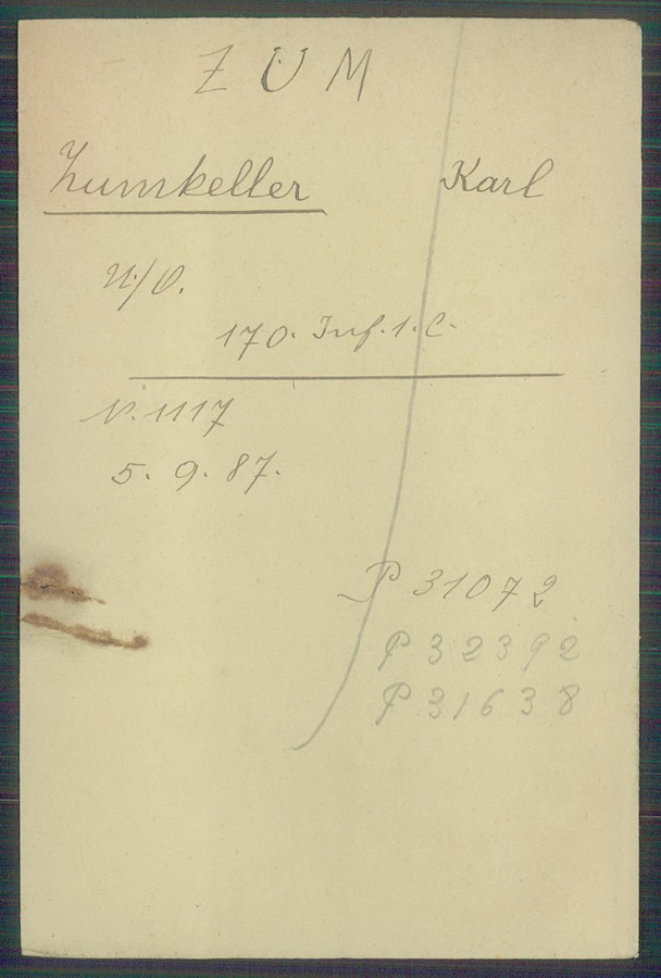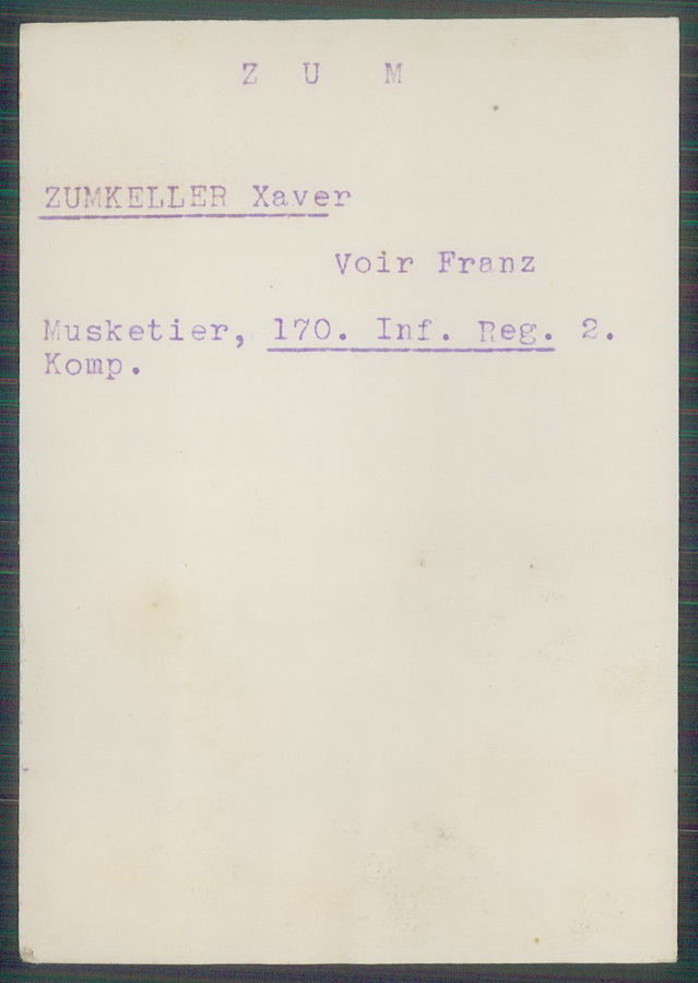 Musketier Xaver ZUMKELLER Infanterie Regiment 170, 2. Kompagnie |