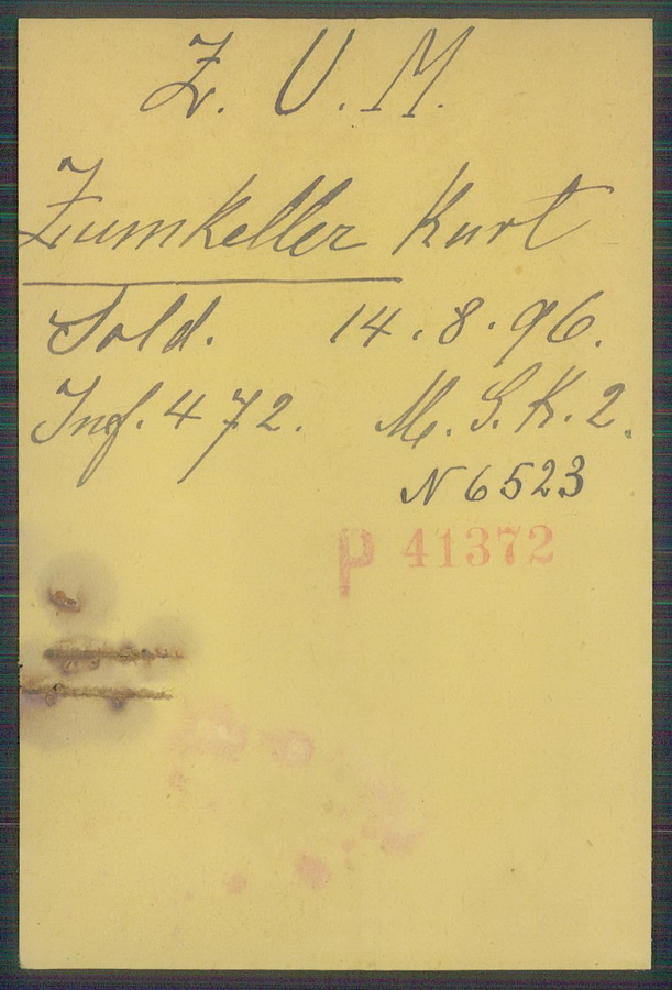Soldat Kurt ZUMKELLER geboren: 14.08.1896 in Sindenau / Sachsen Infanterie Regiment 472 |