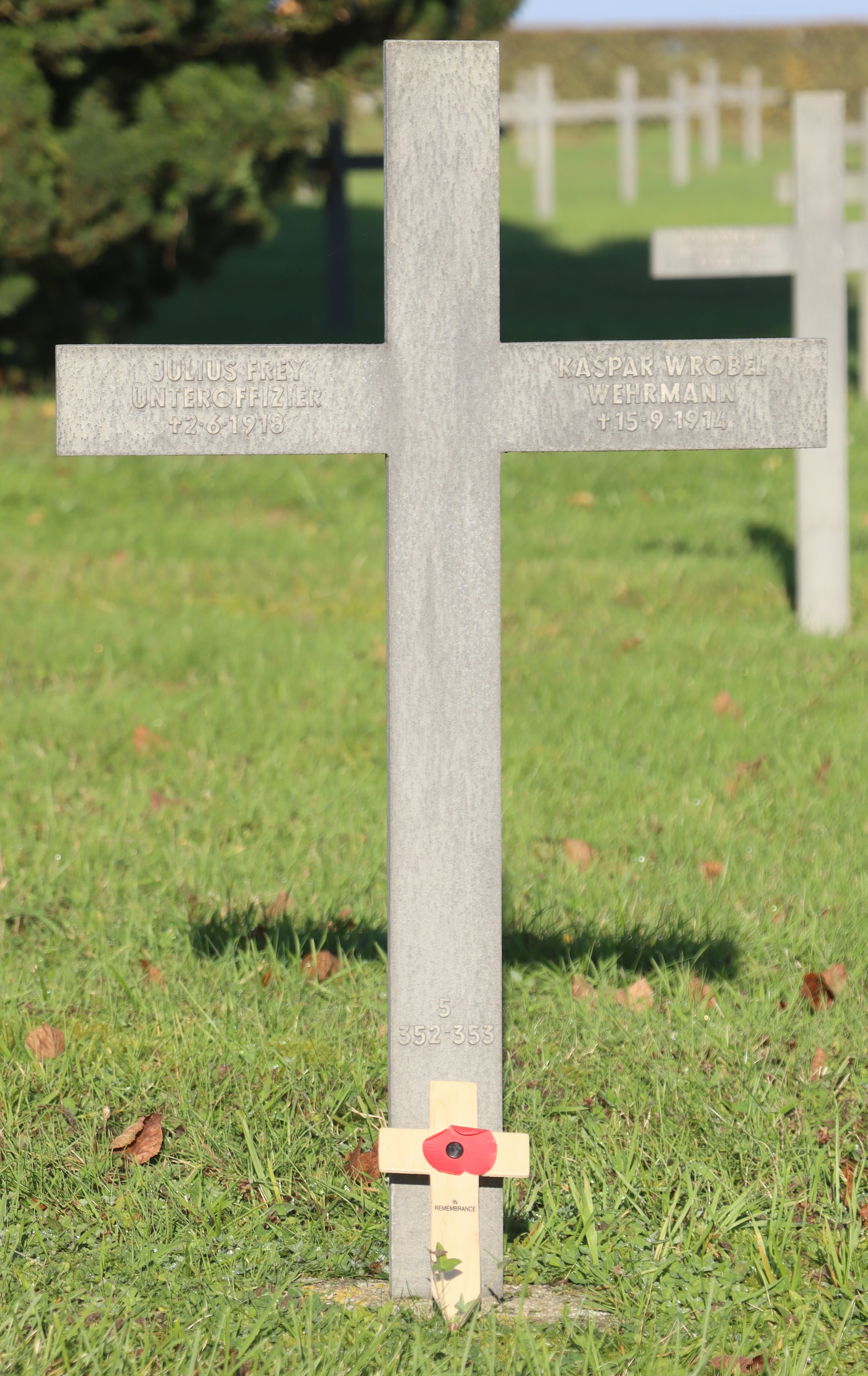 Pionier FREY Walter 06.02.1922 - 10.07.1943 Pionier-Bataillon No. 659 2. Kompagnie Gefallen in Gurica (GR) Kriegsgräberstätte in Dionyssos-Rapendoza (GR) Gruft 2, Reihe 4, Platte 11 |