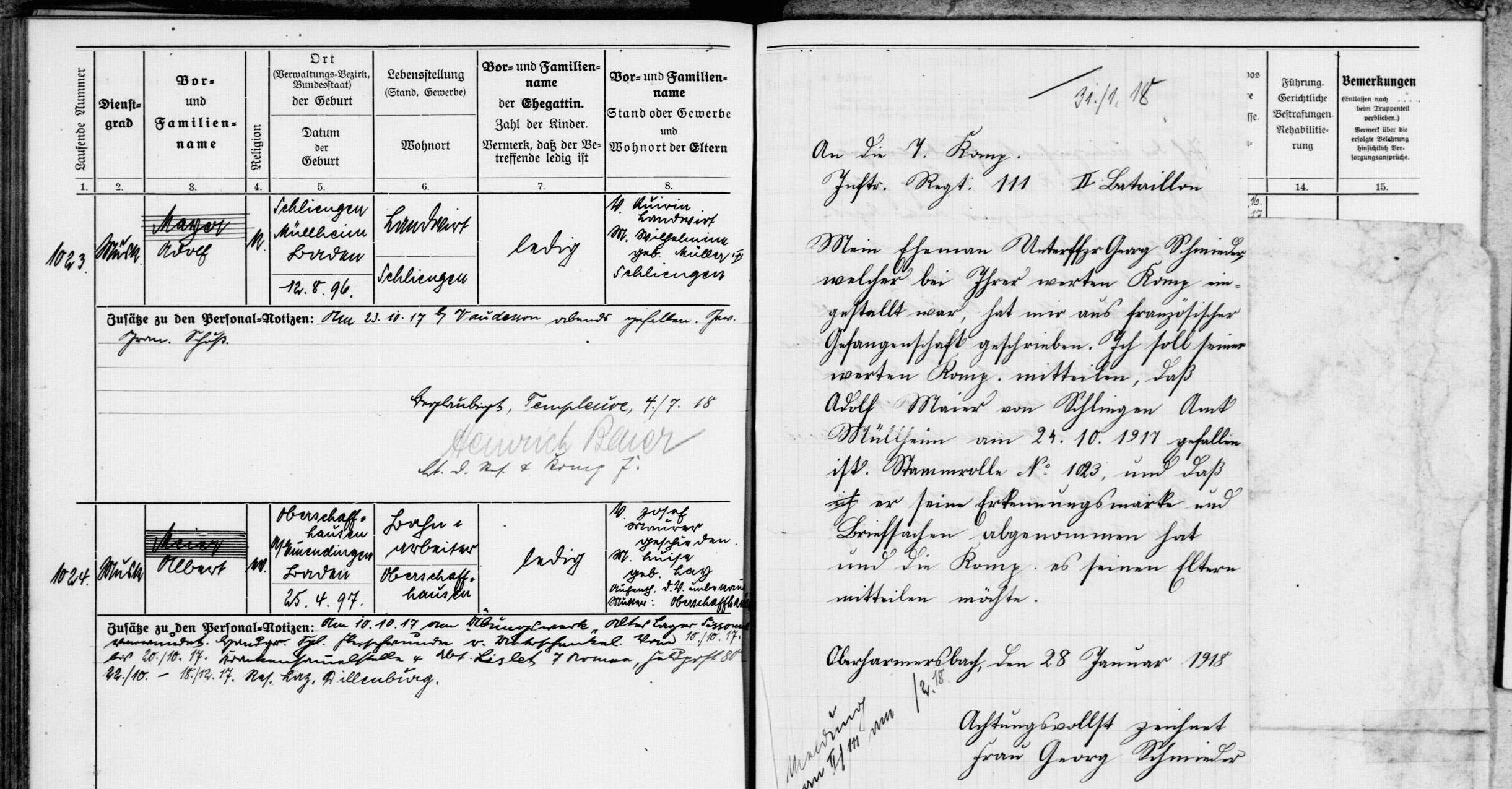 Unteroffizier METZGER Adolf 29.11.1879 - 28.07.1917 Landwehr-Brigade-Ersatz-Bataillon No.55 4. Kompagnie Gefallen |