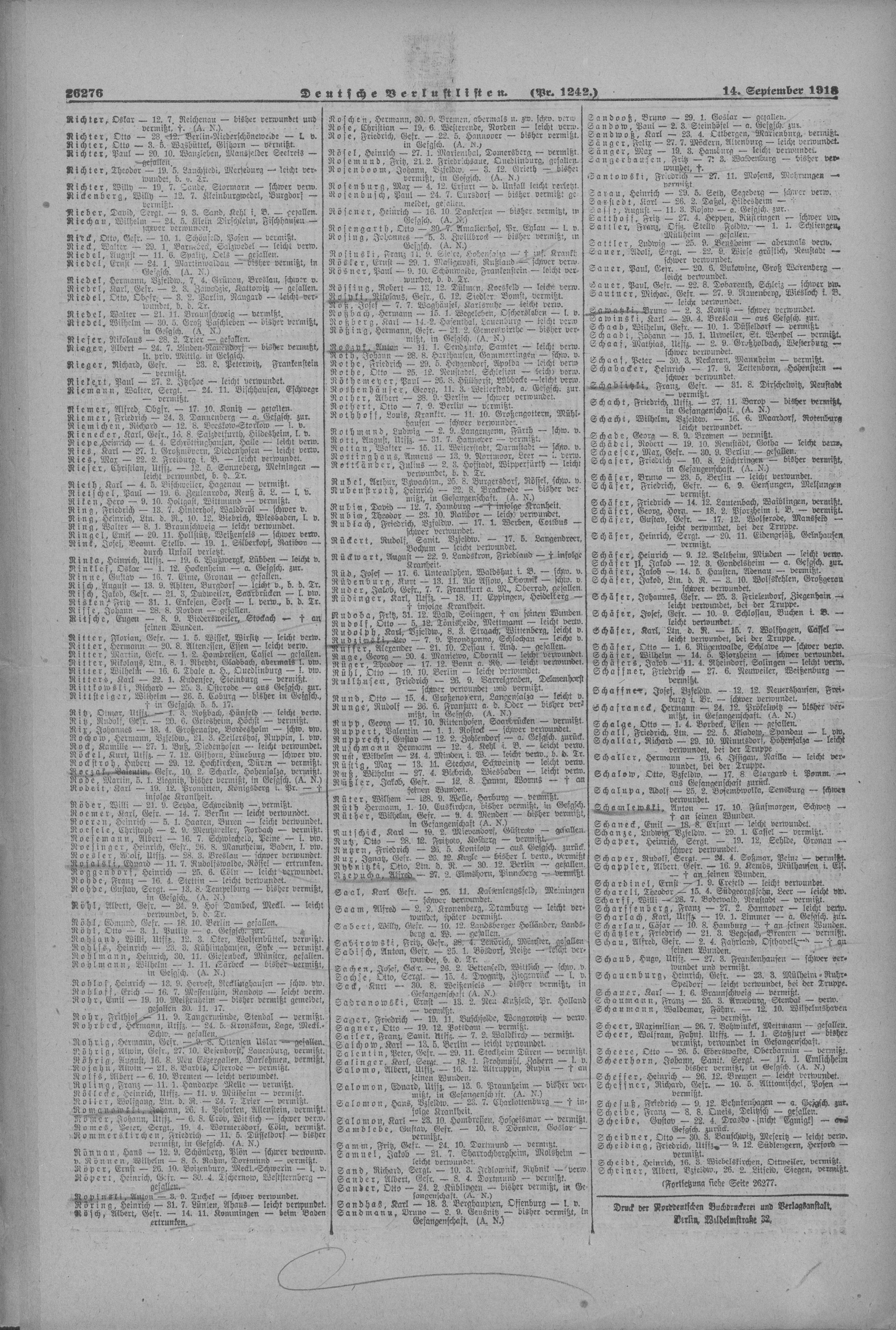 Wehrmann KAMMERKNECHT Friedrich 27.09.1884 - 18.11.1916 Brigade-Ersatz-Bataillon No.5 1. Kompagnie Gefallen |