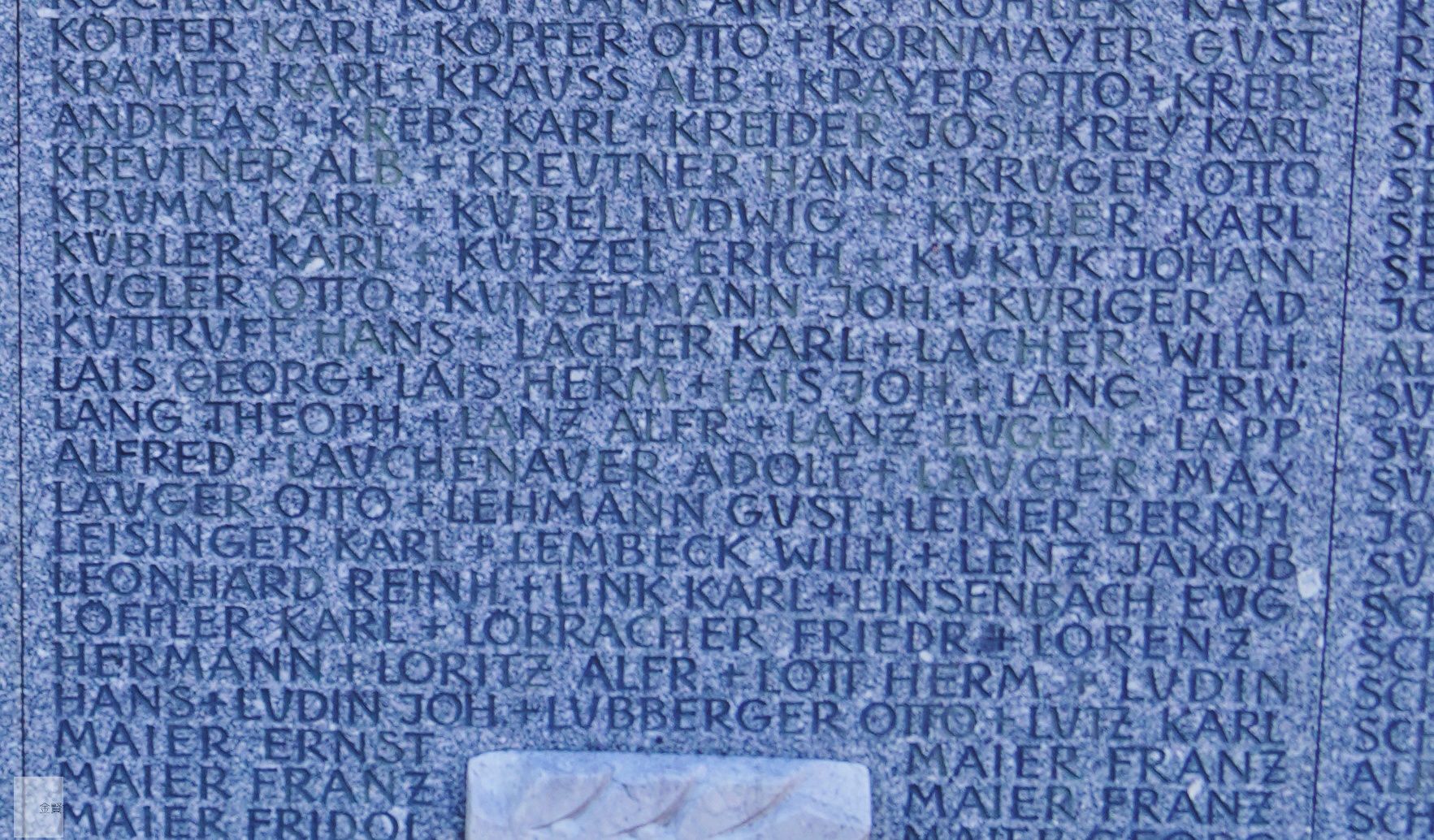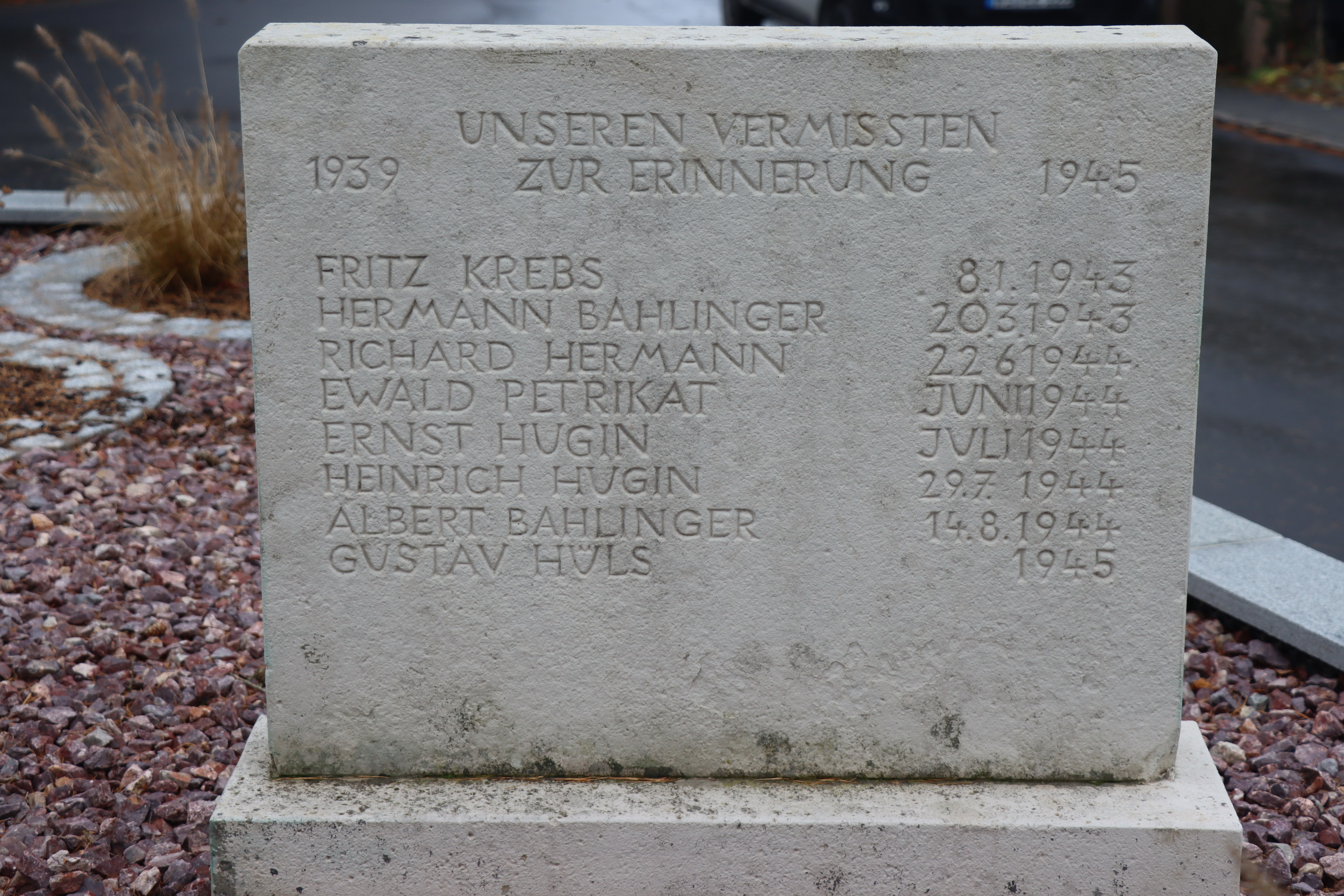 Unteroffizier BAHLINGER Albert Friedrich 02.11.1921 - 22.11.1944 Galt zuerst als vermisst. Verstarb in russischer Kriegsgefangenschaft in Stalino (RUS) |