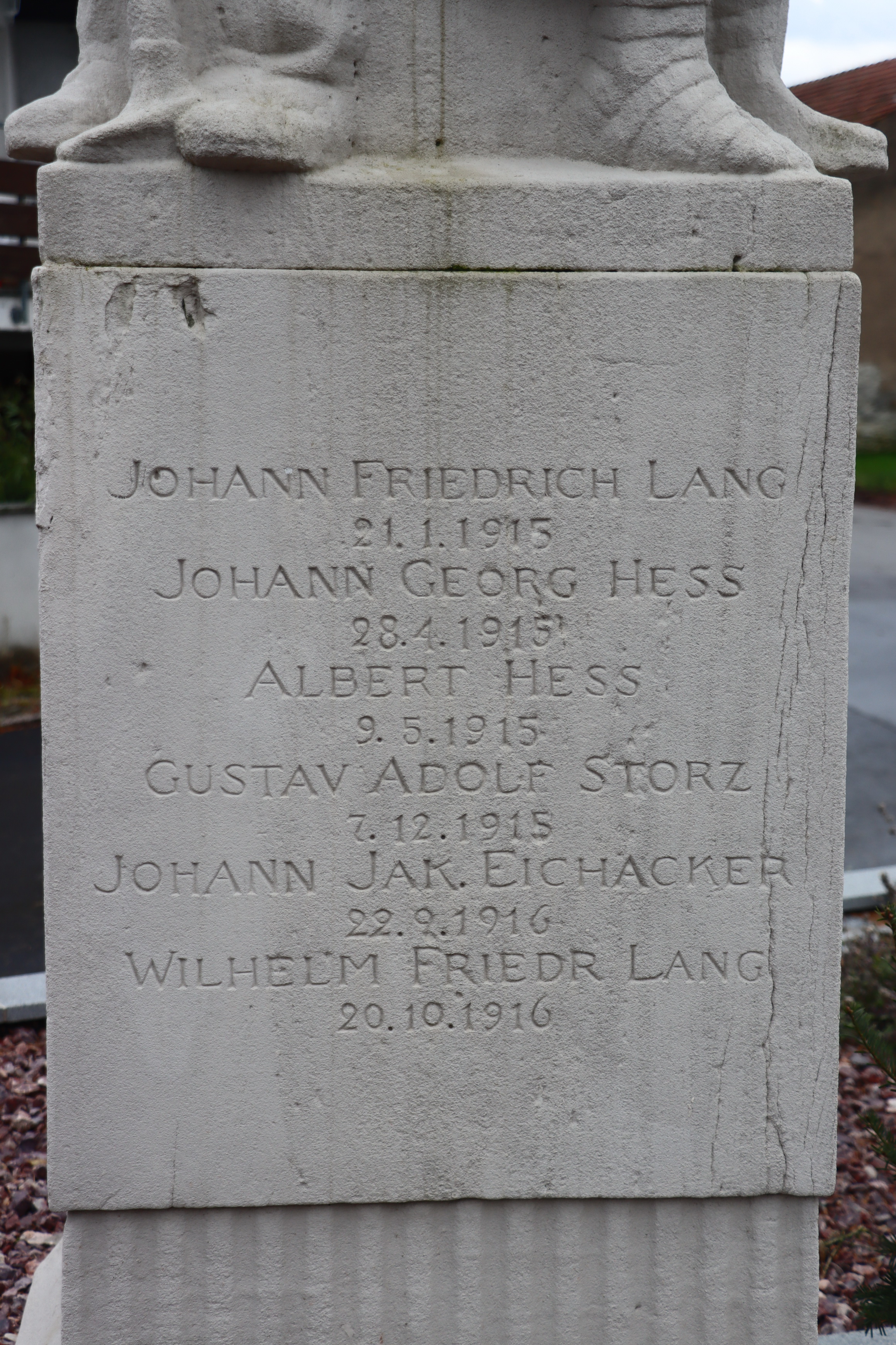 Von den 32 Namen der gefallenen Soldaten der beiden Weltkriege sind 28 mit Fabian Coulot verwandt, ebenso 1 Veteran des Deutschen-Krieges (1866) und 4 Veteranen des Deutsch-Französischen Krieges (1870/71)