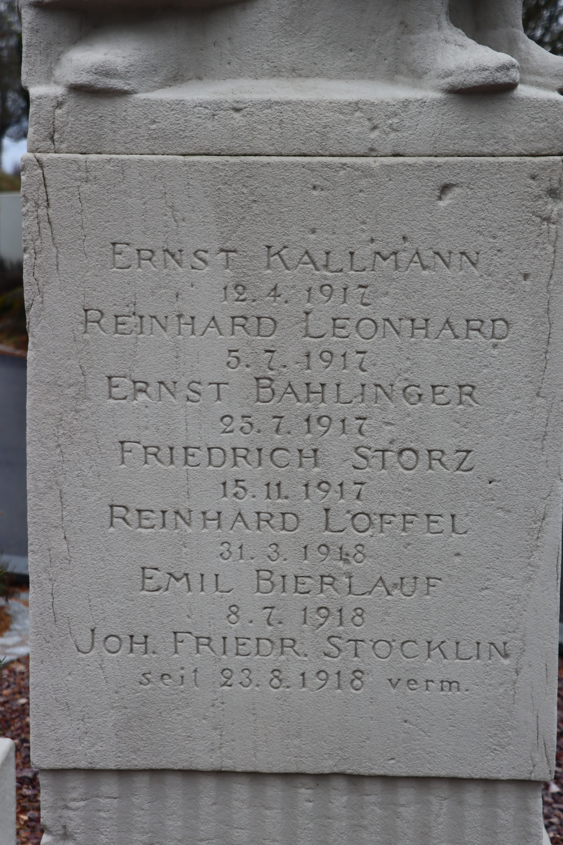 Musketier STORZ Friedrich 10.07.1879 - 15.11.1917 Verstarb durch seinen Wunden auf dem Hauptverbandsplatz in Cagnicourt (F) |