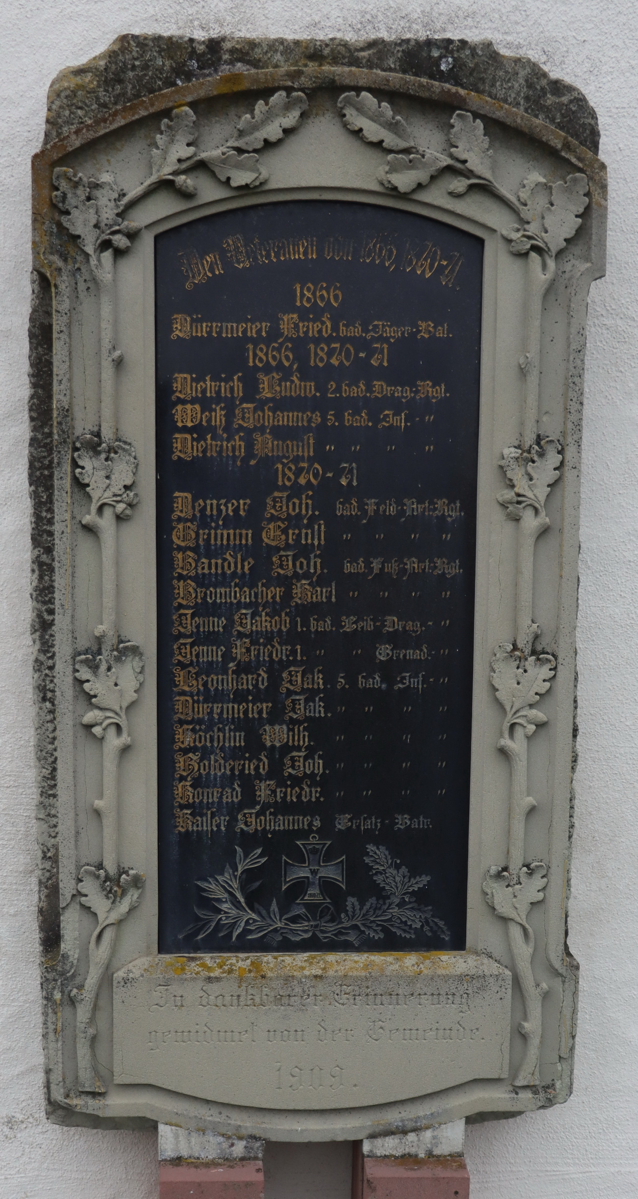 ![]() Deutsch-Französischer Krieg 1870/71 An der Aussenmauer der Kirche von Blansingen befindet sich die Ehrentafel der Kriegsveteranen |