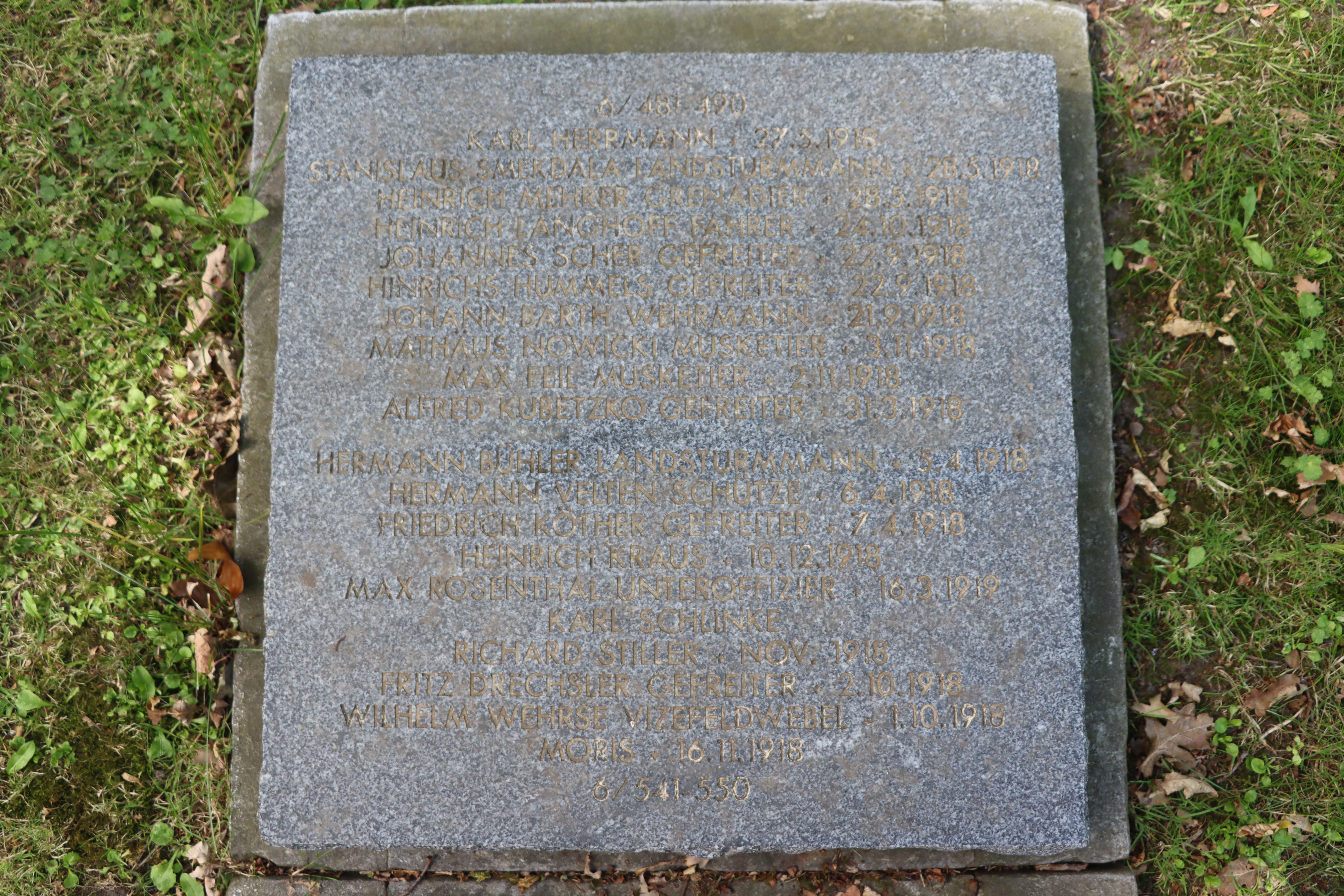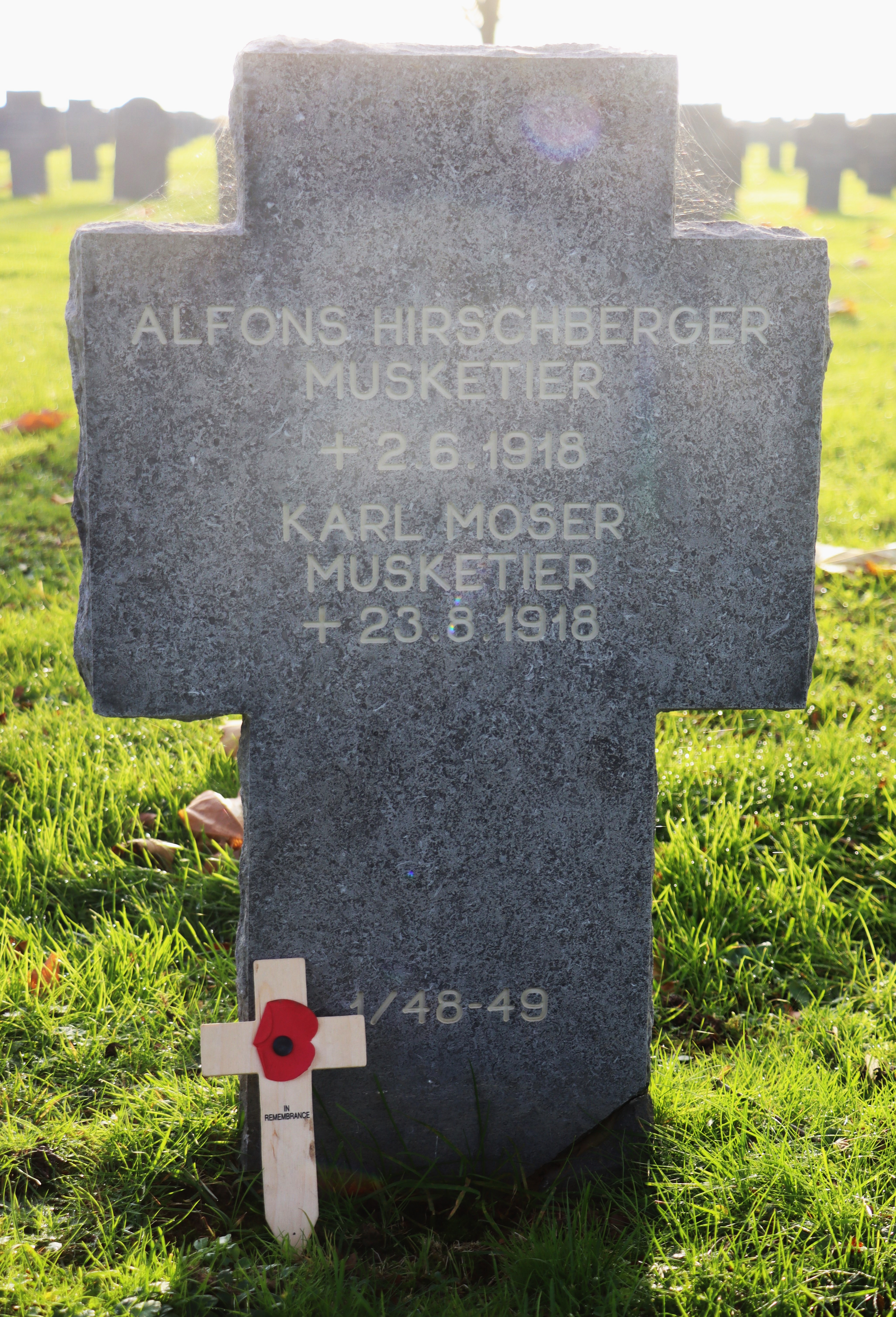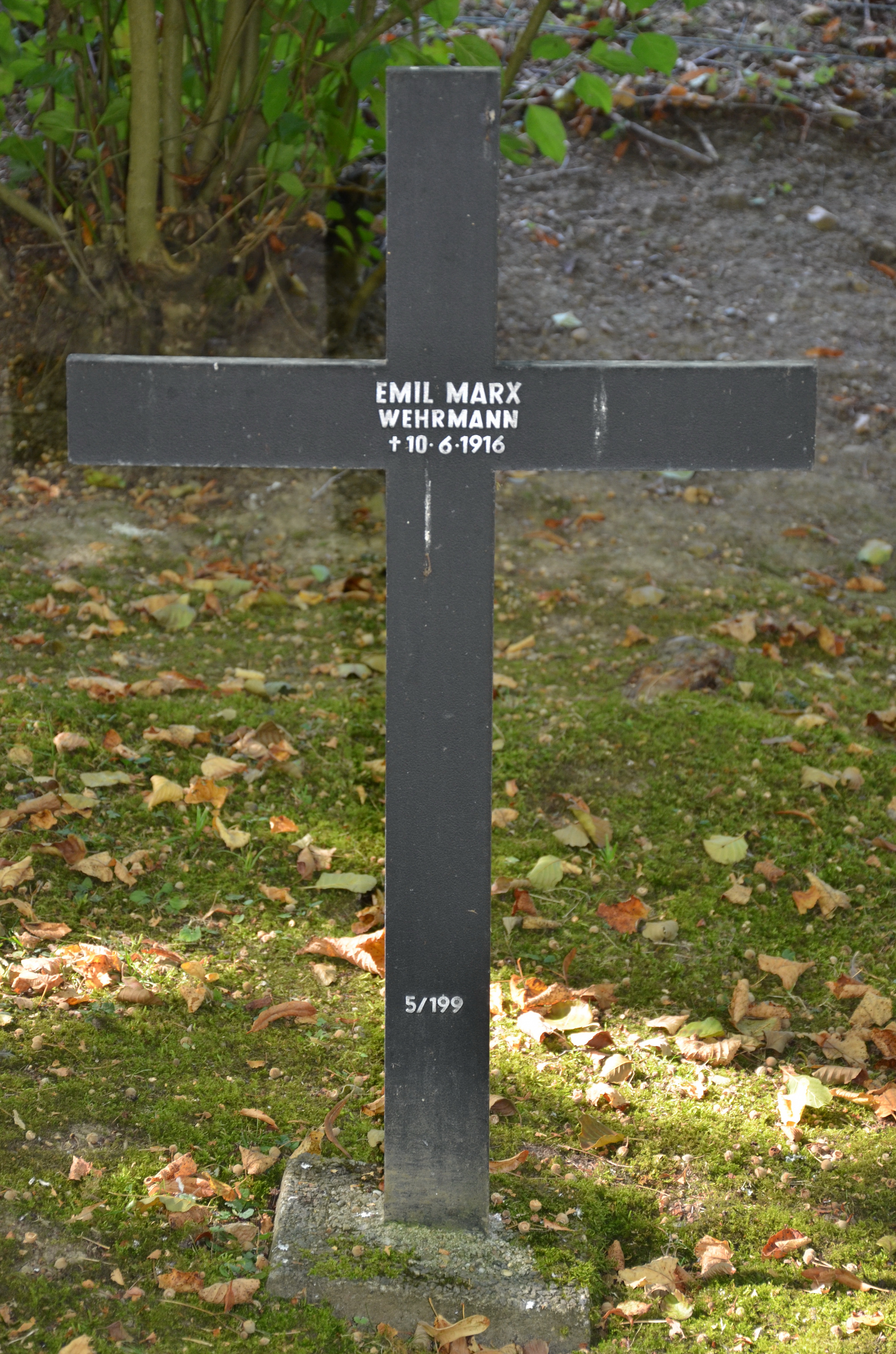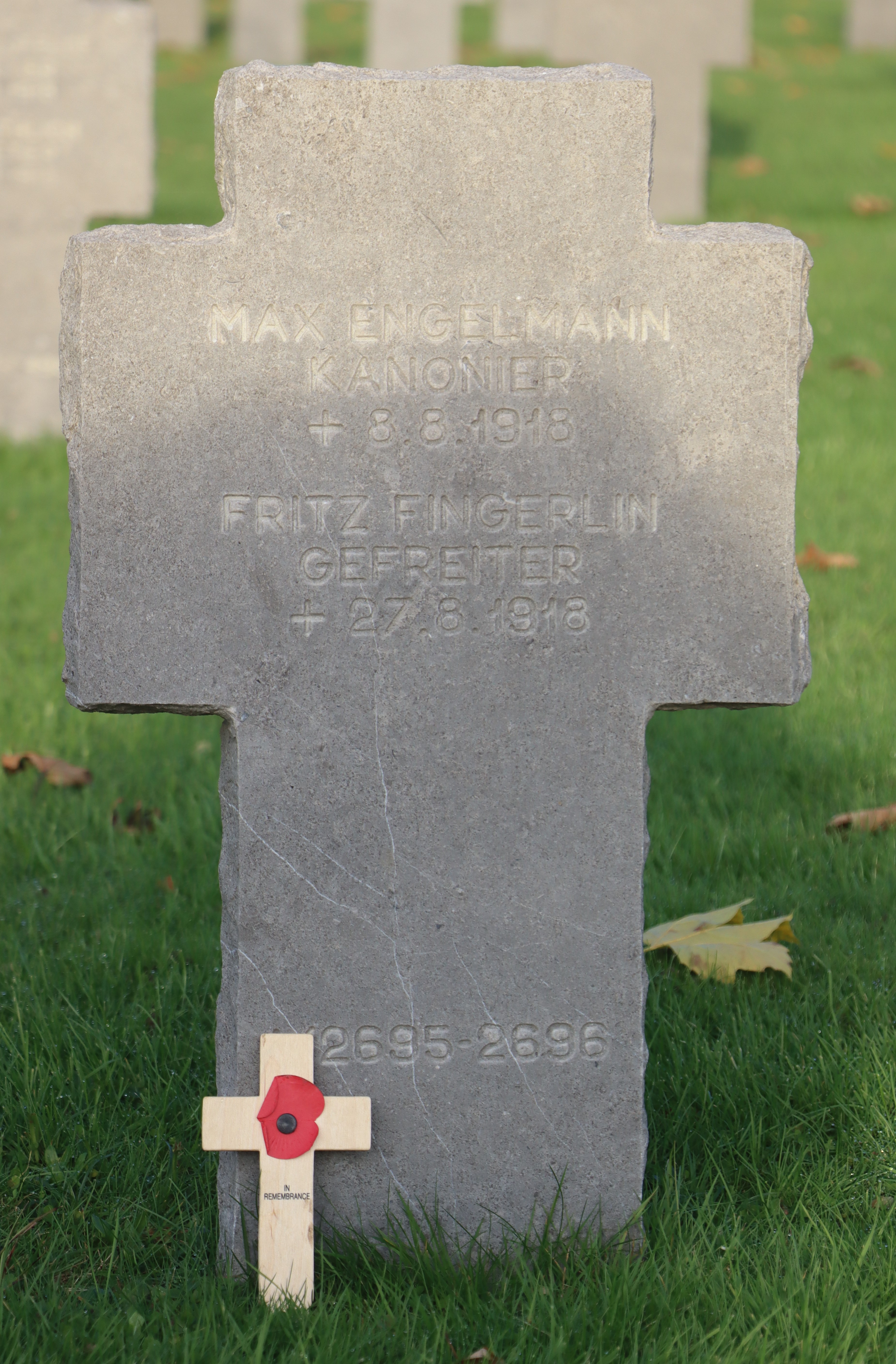 WENK Hermann 21.05.1893 - 11.09.1917 24 Jahre alt aus Brombach Gefallen in Chemin des Dames (FR) Kriegsgräberstätte in Montaigu I (FR) Block 1, Grab 18 |
