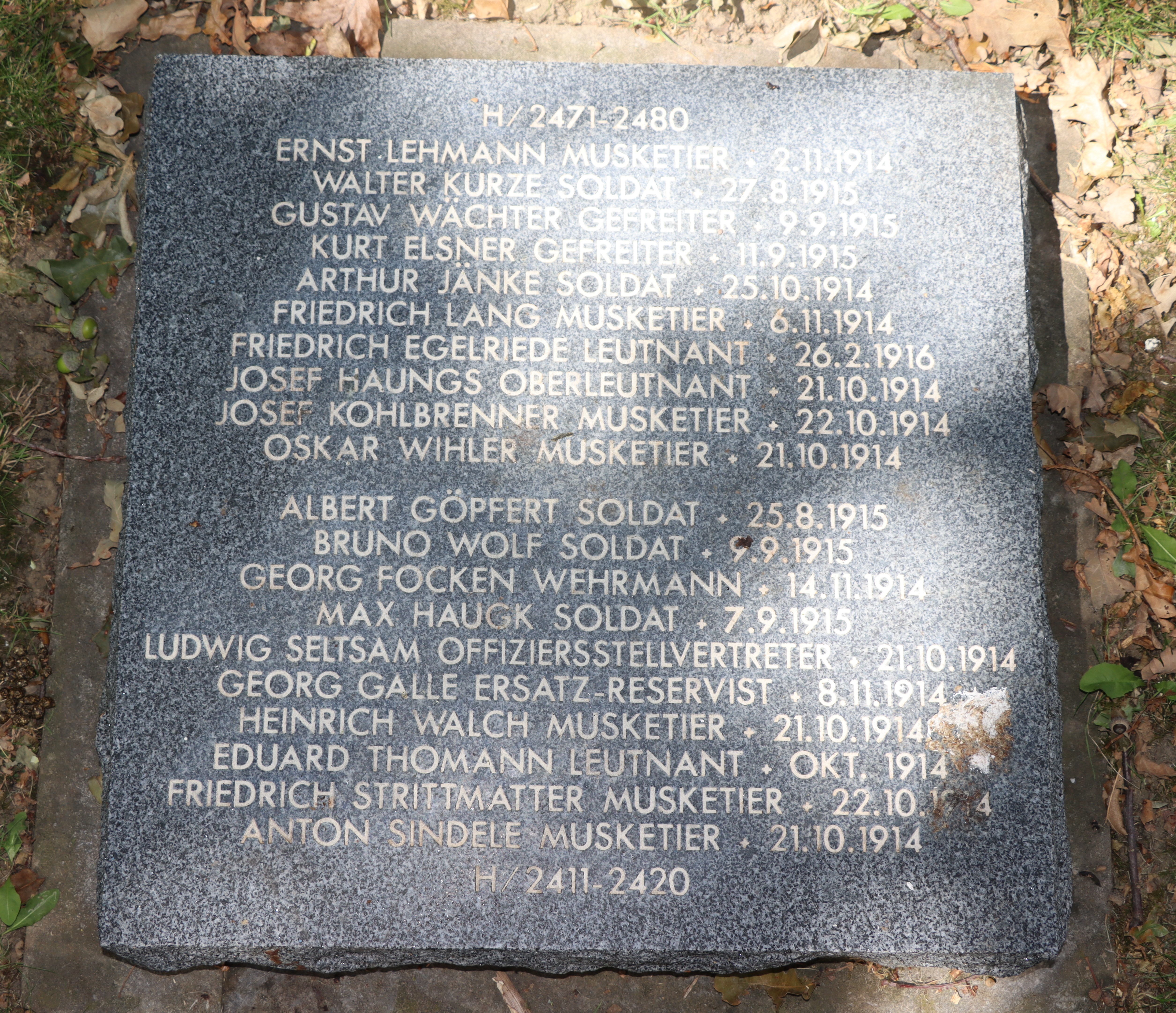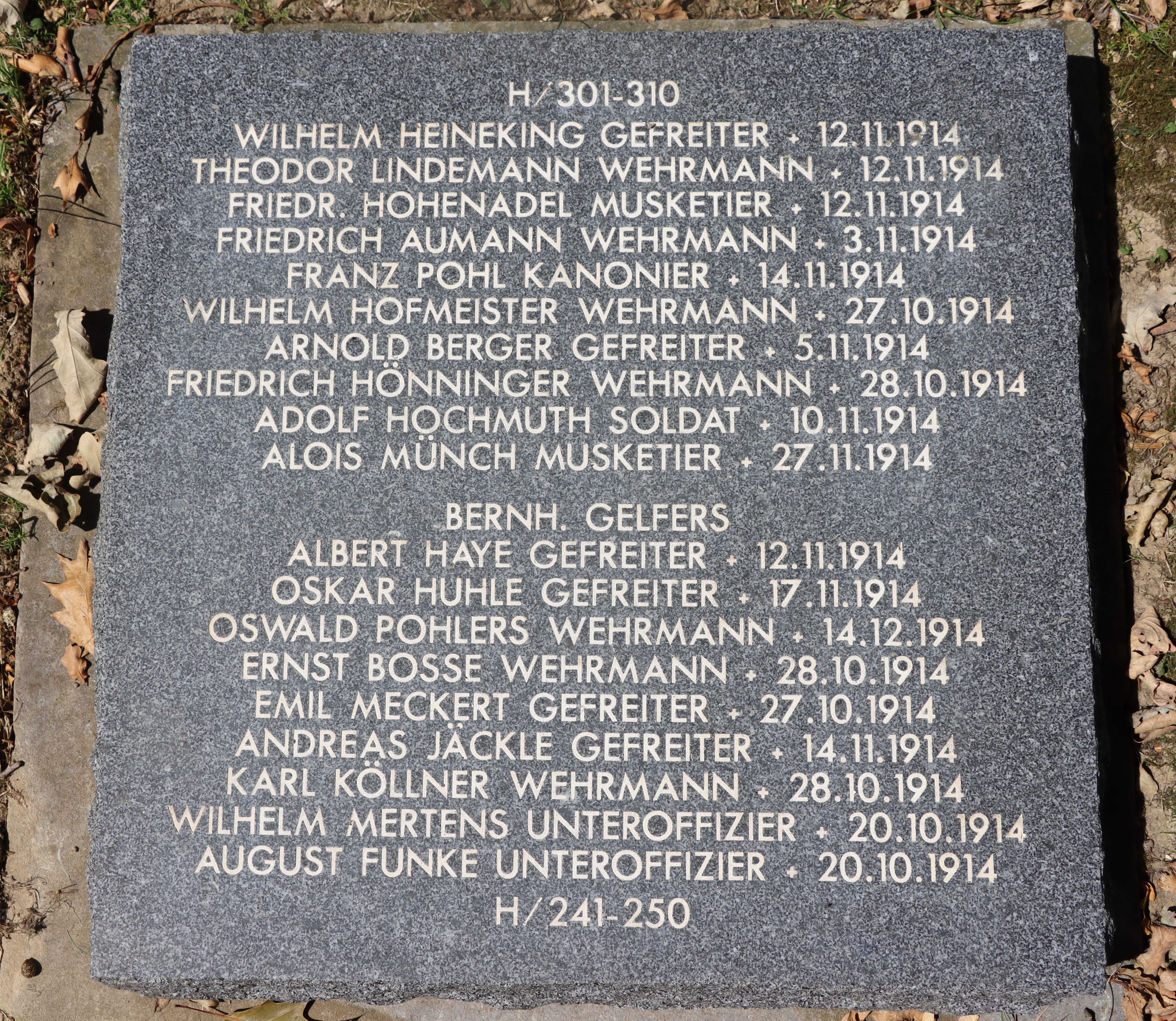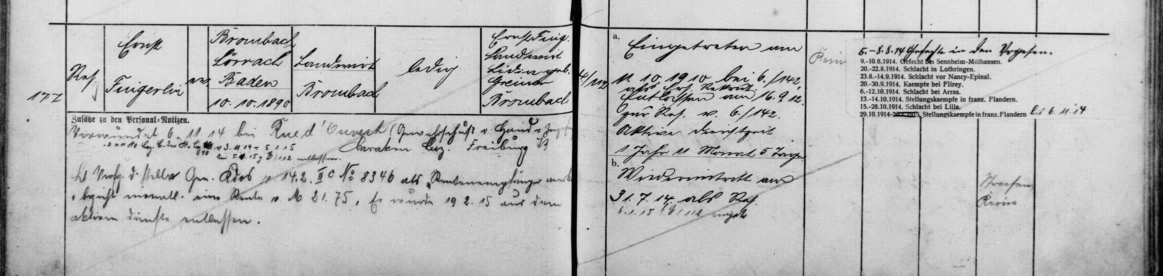 Musketier FINGERLIN Hermann 14.11.1892 - 03.11.1914 22 Jahre alt aus Brombach Reserve-Infanterie-Regiment No.240 1. Kompagnie Gefallen in Zoonebecke (BE) |
