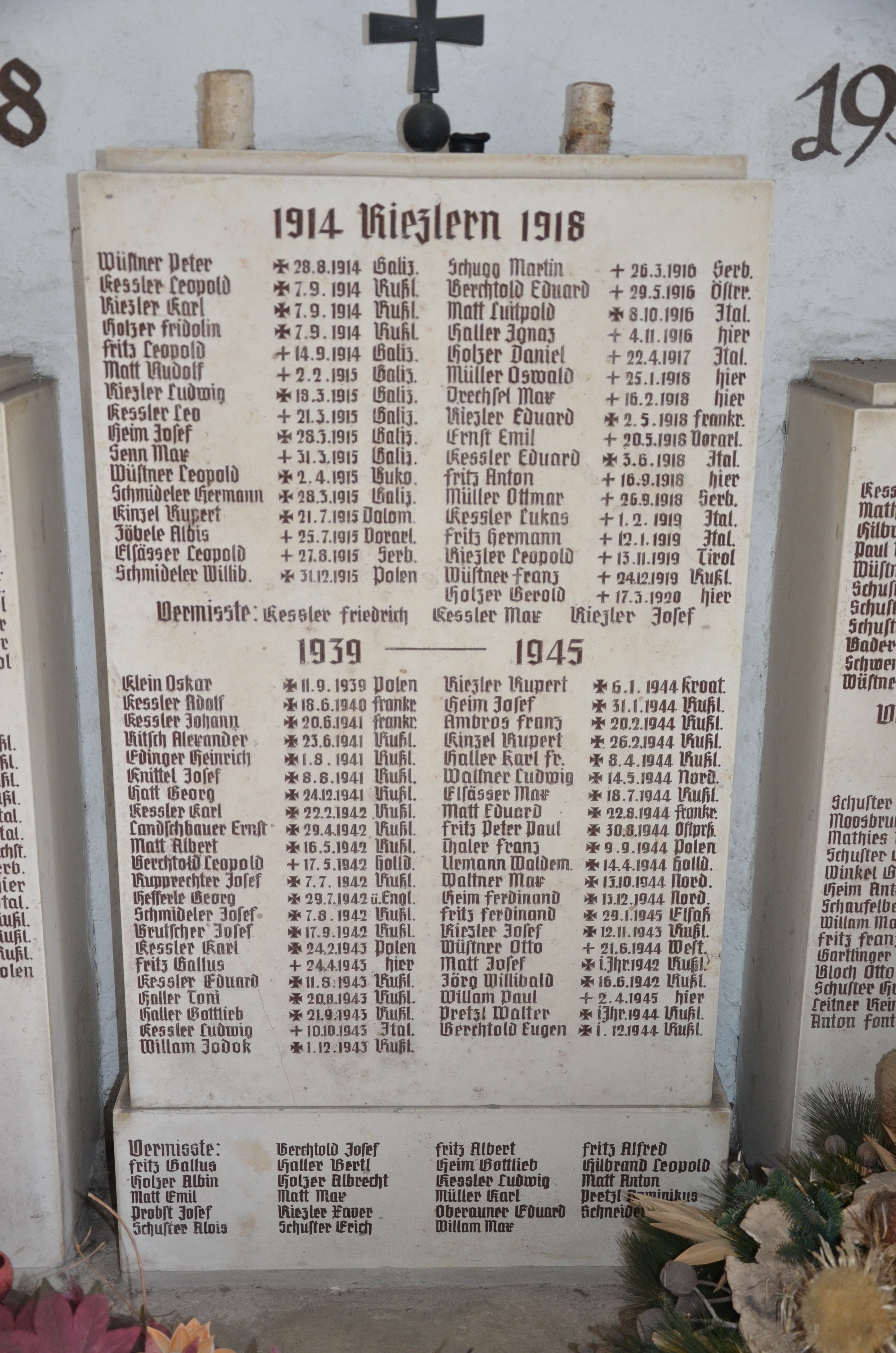 MANTL 24.10.1896 - 10.10.1916 20 Jahre alt aus Honau Gefallen am Pasubio Gedenkplatte bei der Kirche von Honau |