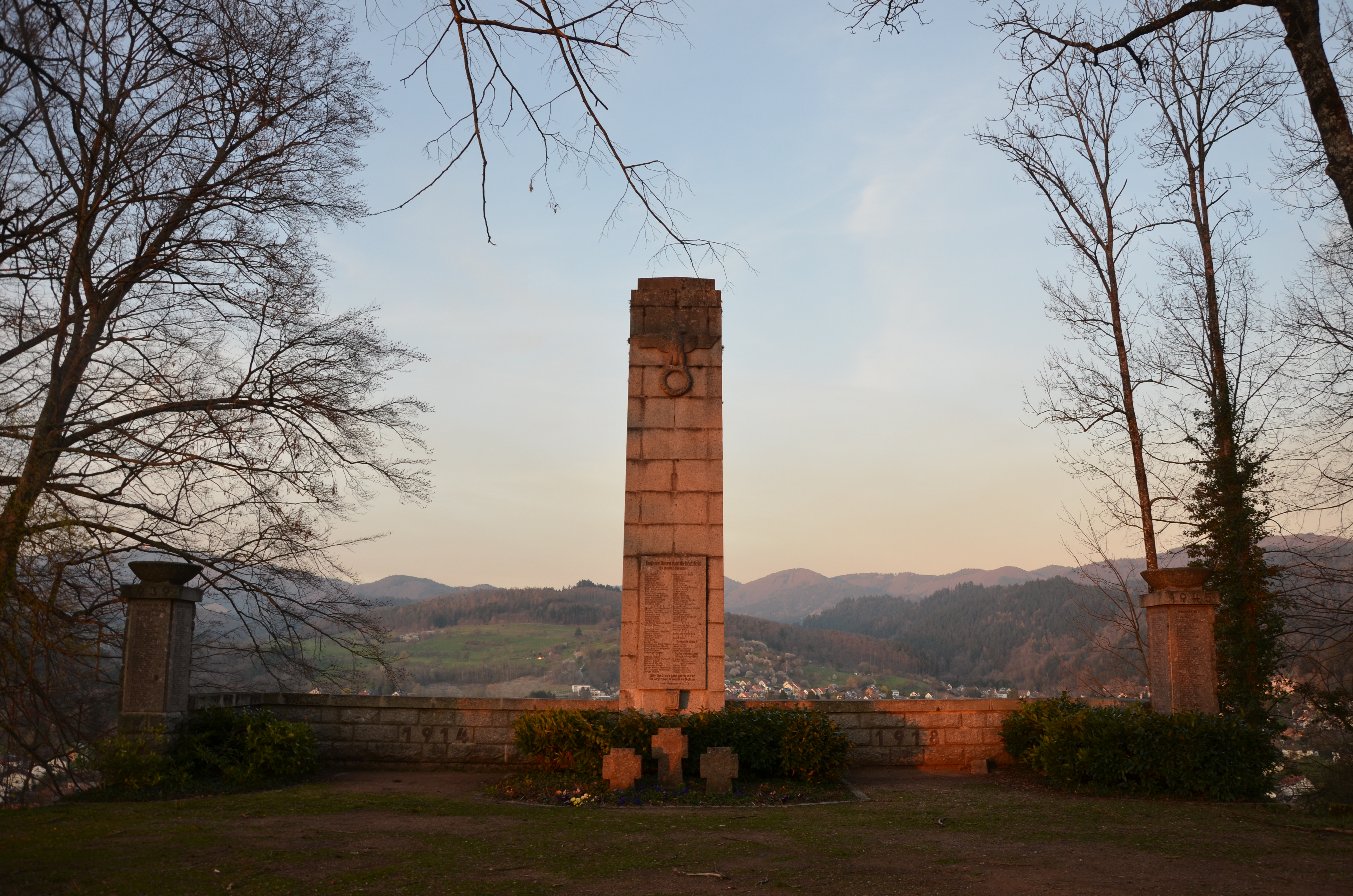 der beiden Weltkriege. Auf der mittleren grossen Säule die Namen der Gefallenen aus dem 1. Weltkrieg (1914-1918) von den 82 Namen auf der Säule sind 27 mit Fabian Coulot verwandt |