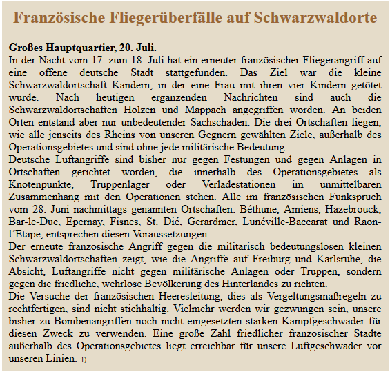 Aus dem Heeresbericht: ![]() Artikel Badische Zeitung: |