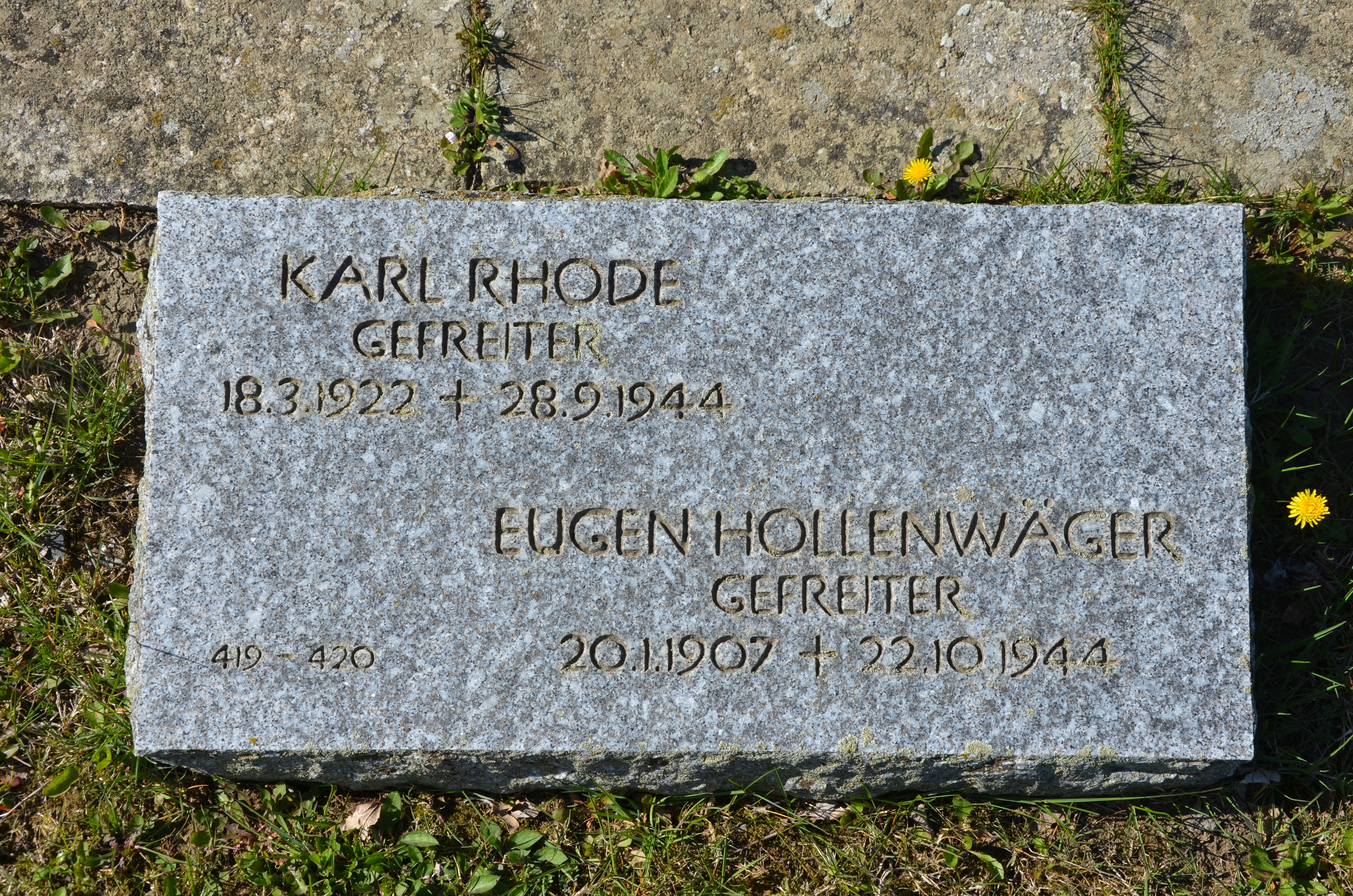 Feldwebel HUNZINGER Wilhelm Eugen 01.09.1915 - 24.08.1944 29 Jahre alt aus Niedereggenen Gefallen in der Normandie (FR) Kriegsgräberstätte in La Cambe (FR) Block 46, Reihe 2, Grab 41 C *Neffe 3.Grades der Schwägerin des Ehemanns der Tante 9.Grades der Schwägerin des Schwagers der Ehefrau des Ur-Grossneffen des 2xUr-Grossonkel durch Heirat von Fabian Coulot |