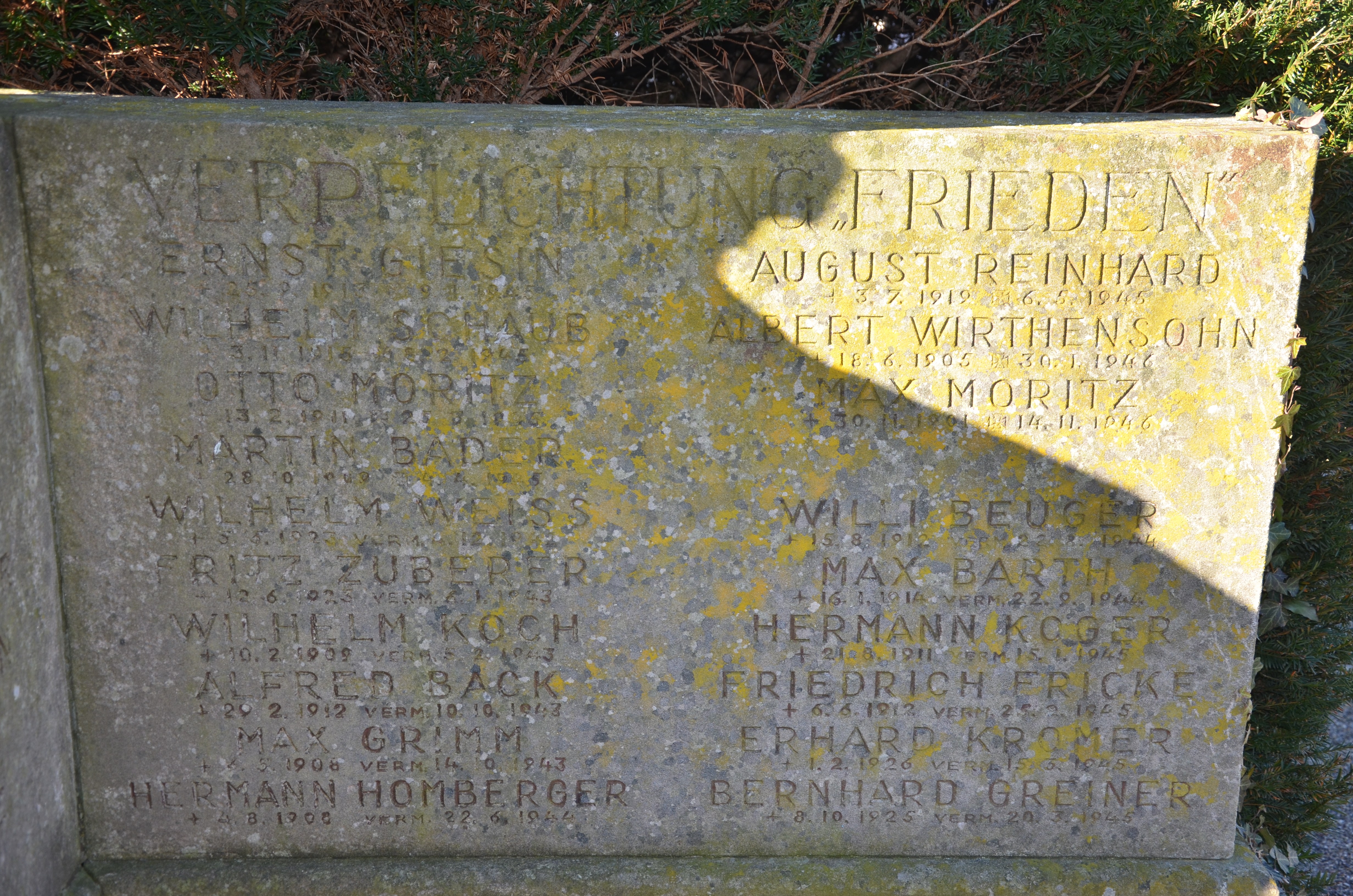 MORITZ 03.04.1892 - 27.12.1920 28 Jahre alt aus Obereggenen Verstarb an Lungenschwindsucht in Folge der französischen Kriegsgefangenschaft |
