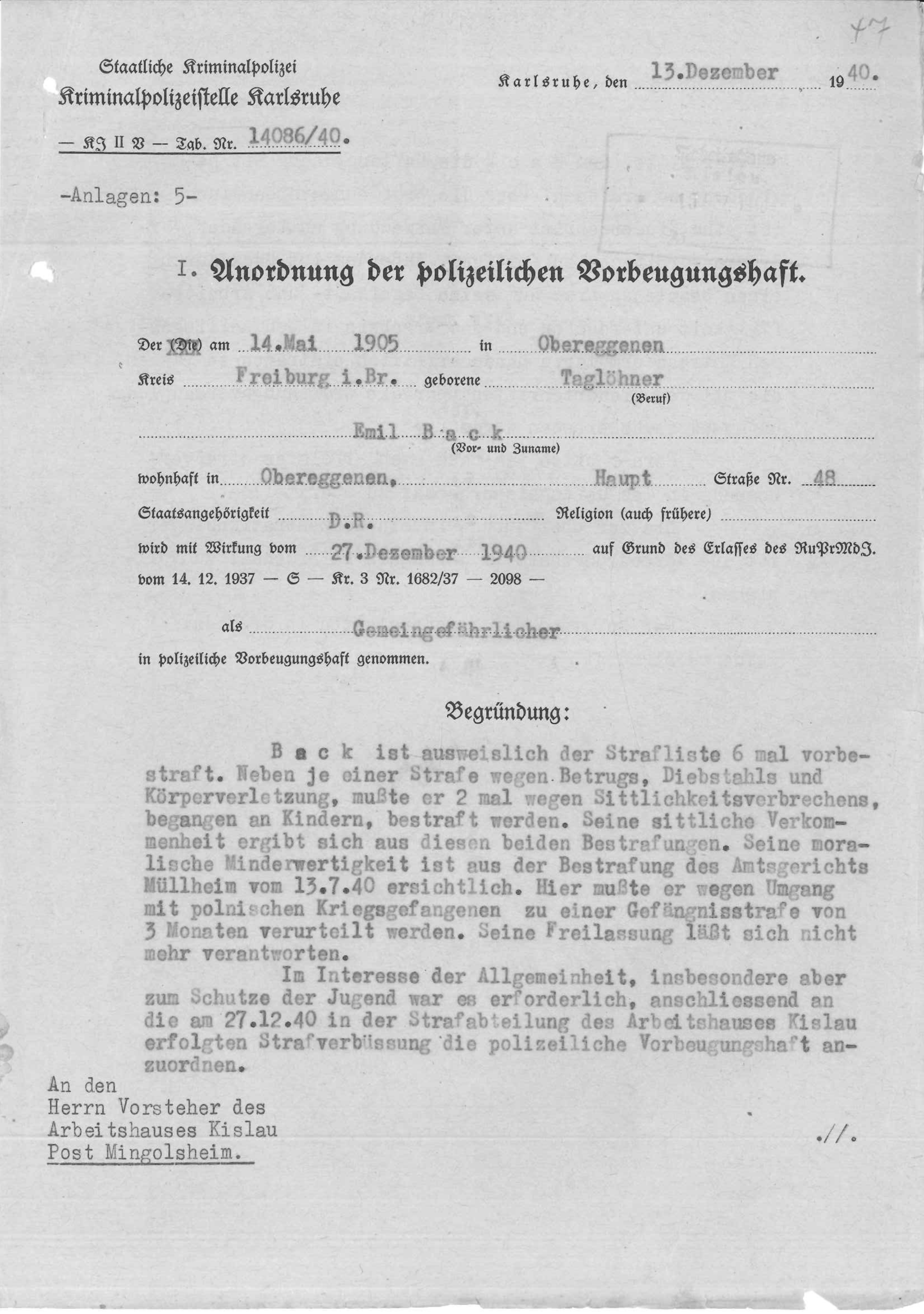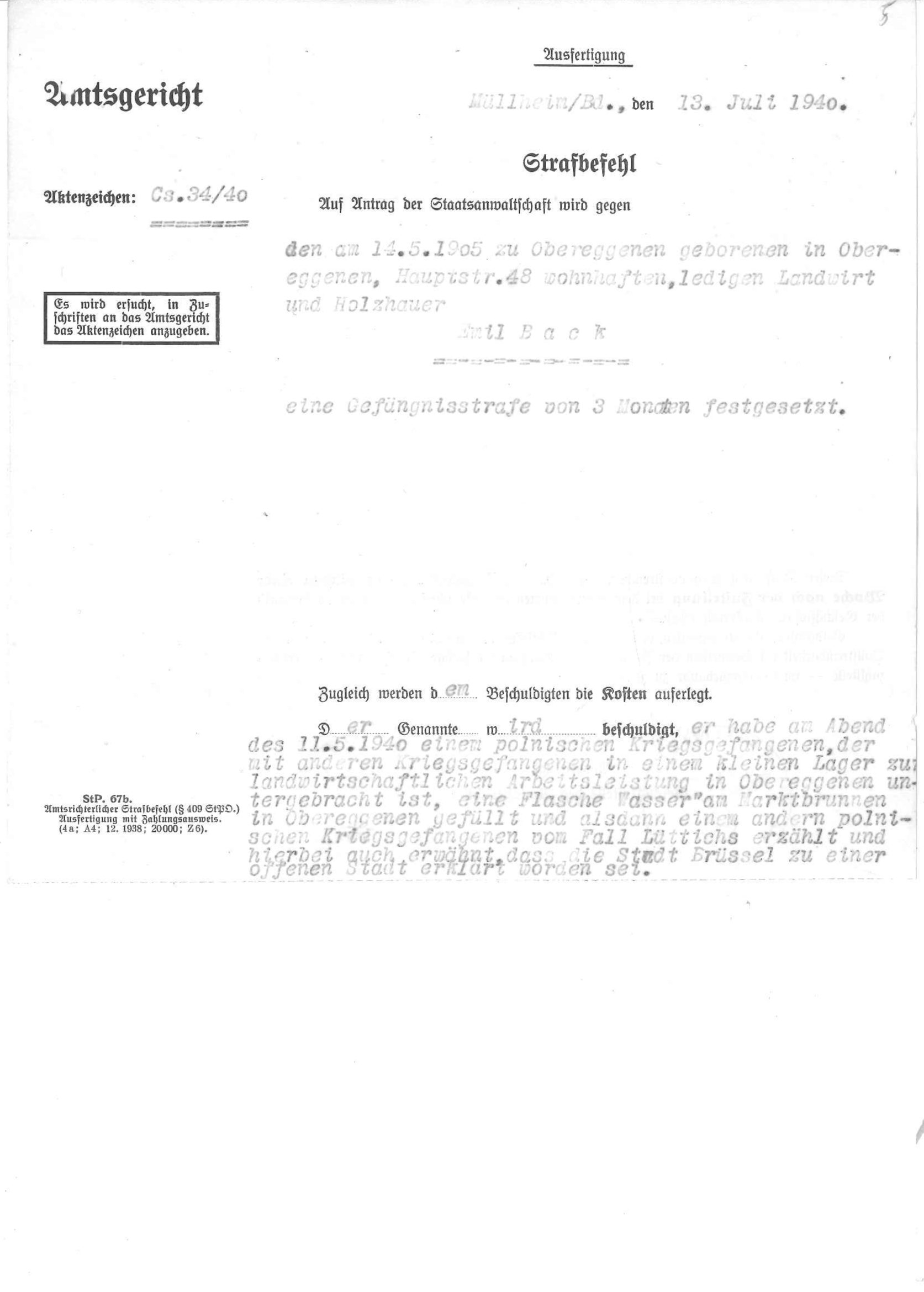 Strafbefehl: Umgang mit polnischen Kriegsgefangenen. | Anordnung für Vorbeugehaft |