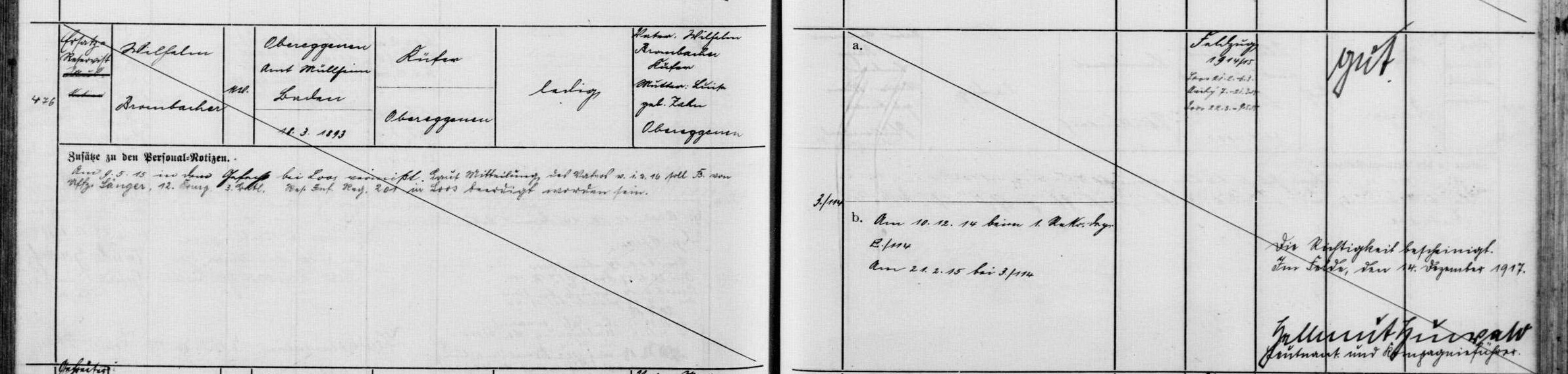 Musketier Wilhelm BROMBACHER 18.03.1893 - 09.05.1915 22 Jahre alt aus Obereggenen 6. Badische Infanterie-Regiment Kaiser Friedrich III No.114 3. Kompagnie Gefallen bei Loos (FR) *Cousin der Schwägerin des Ehemanns der Tante 9.Grades der Schwägerin des Schwagers der Ehefrau des Ur-Grossneffen des 2xUr-Grossonkel durch Heirat von Fabian Coulot |