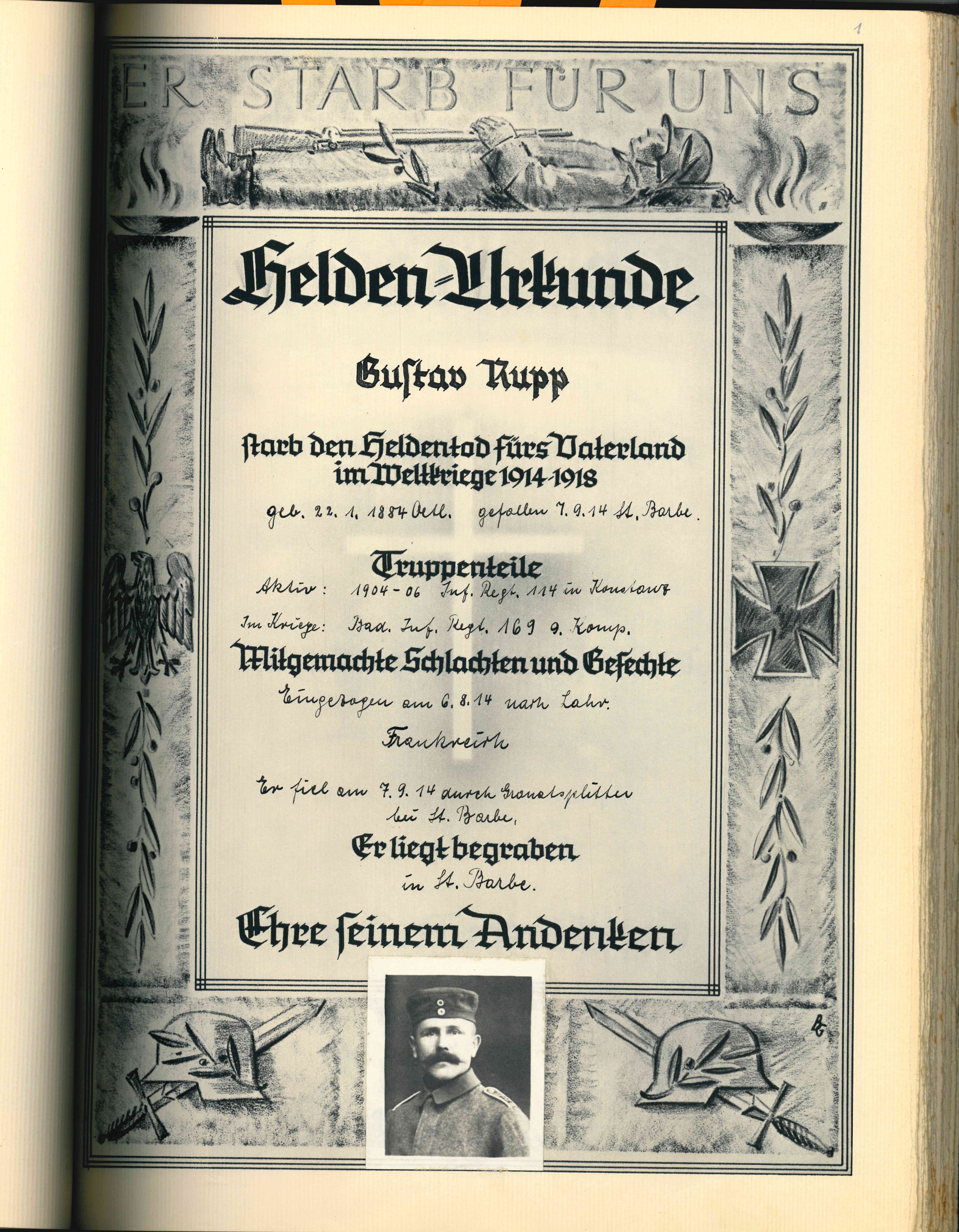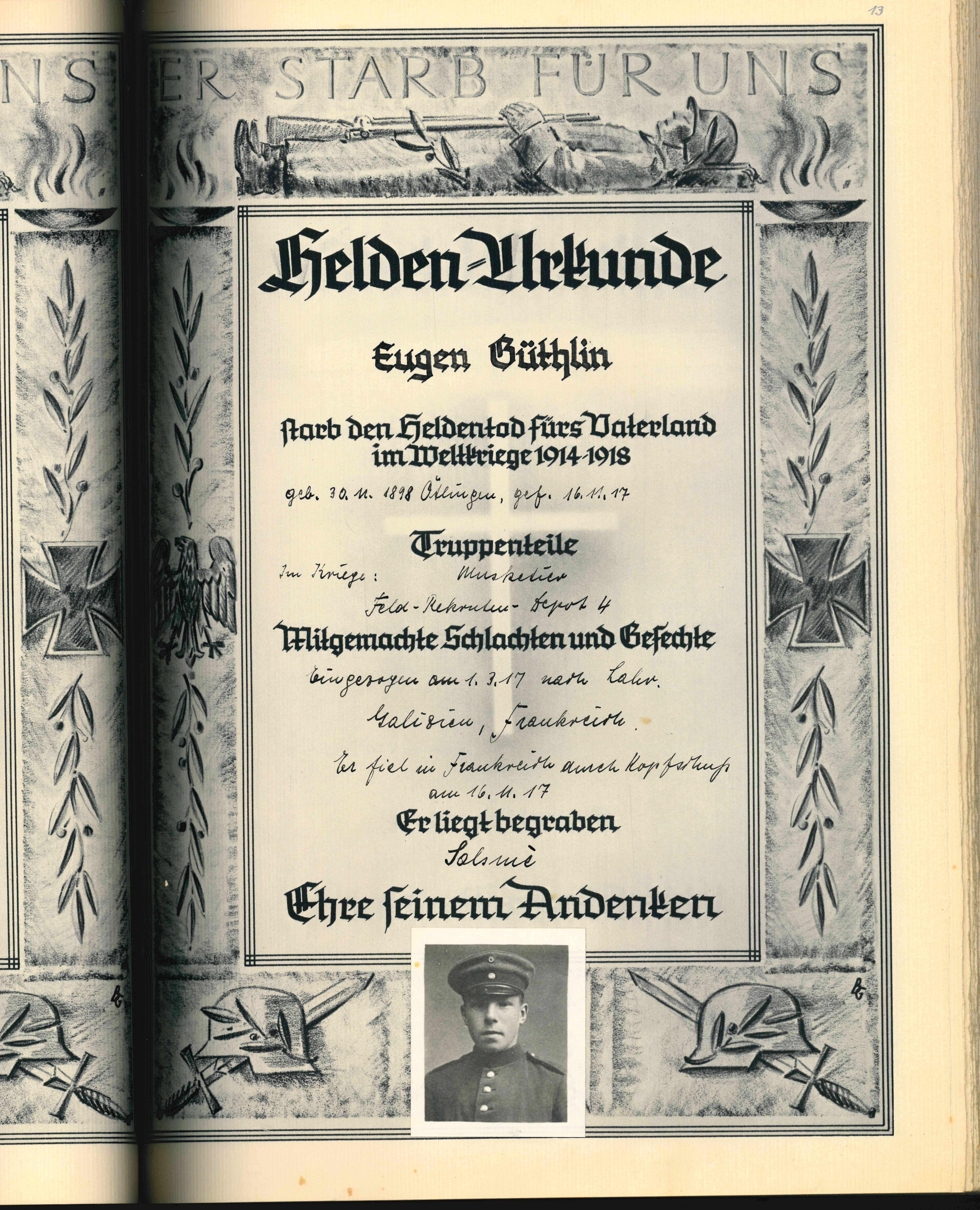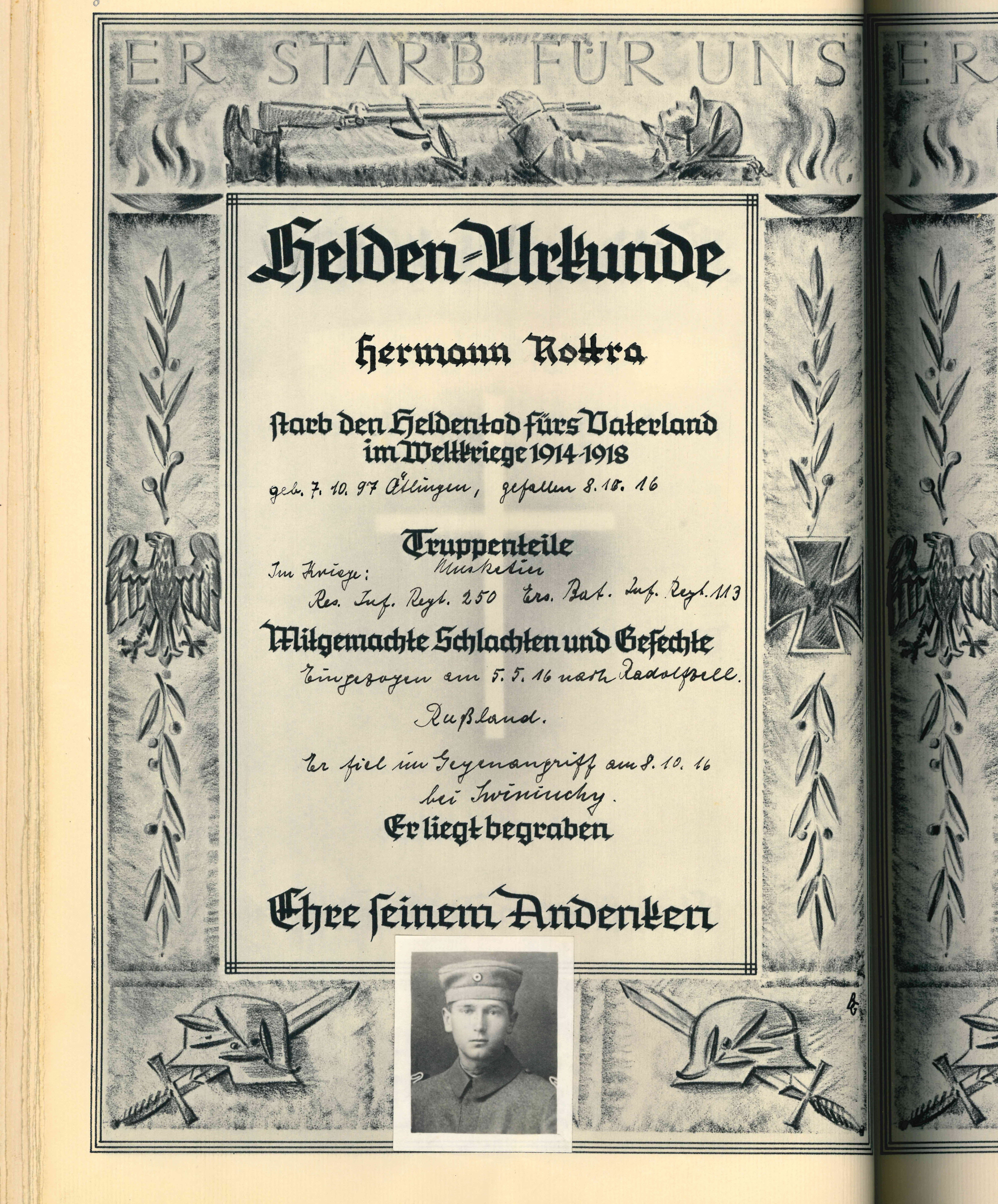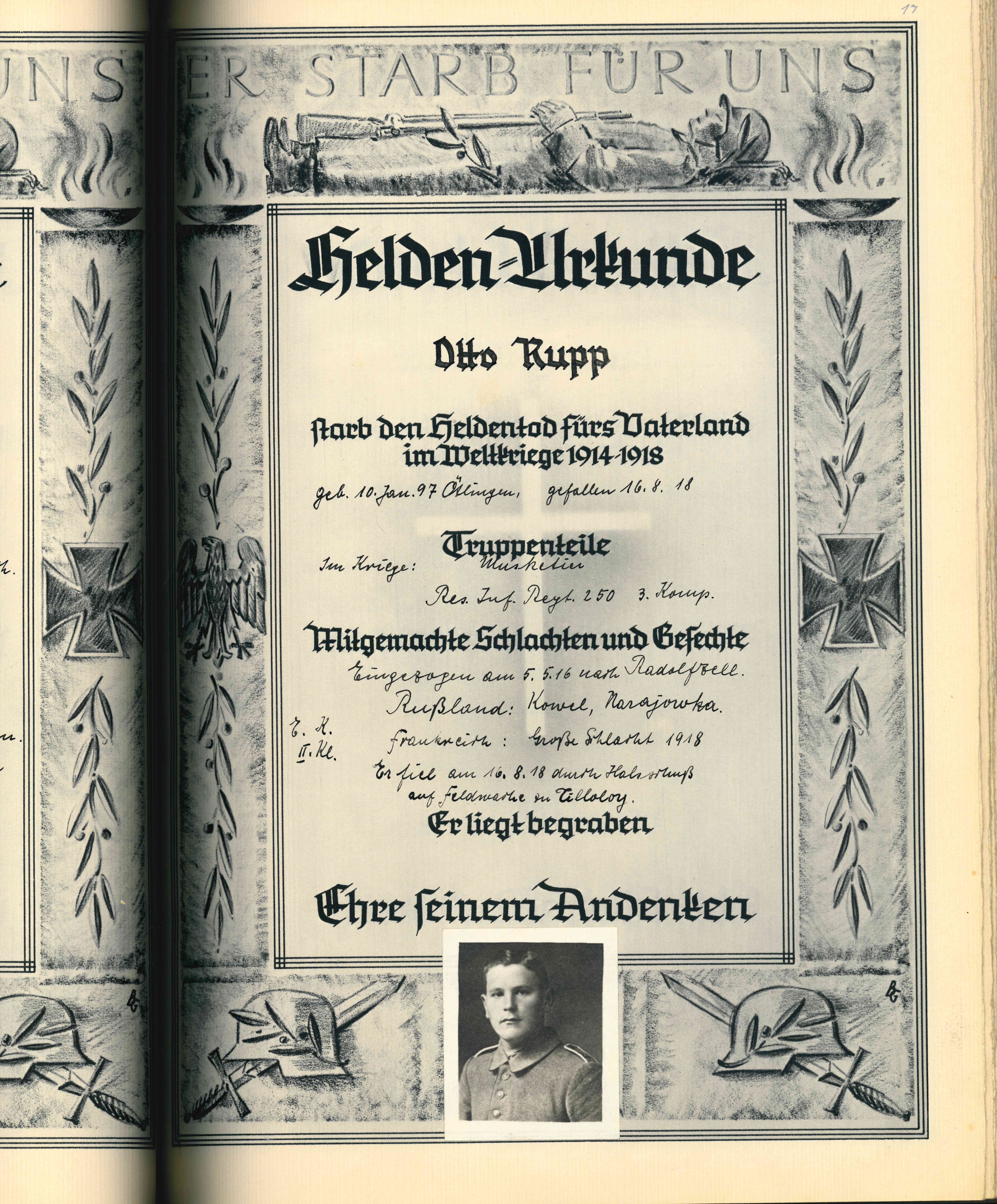RUPP Hans 07.08.1922 - 31.07.1943 21 Jahre alt aus Ötlingen Gefallen in Garany (RUS) |