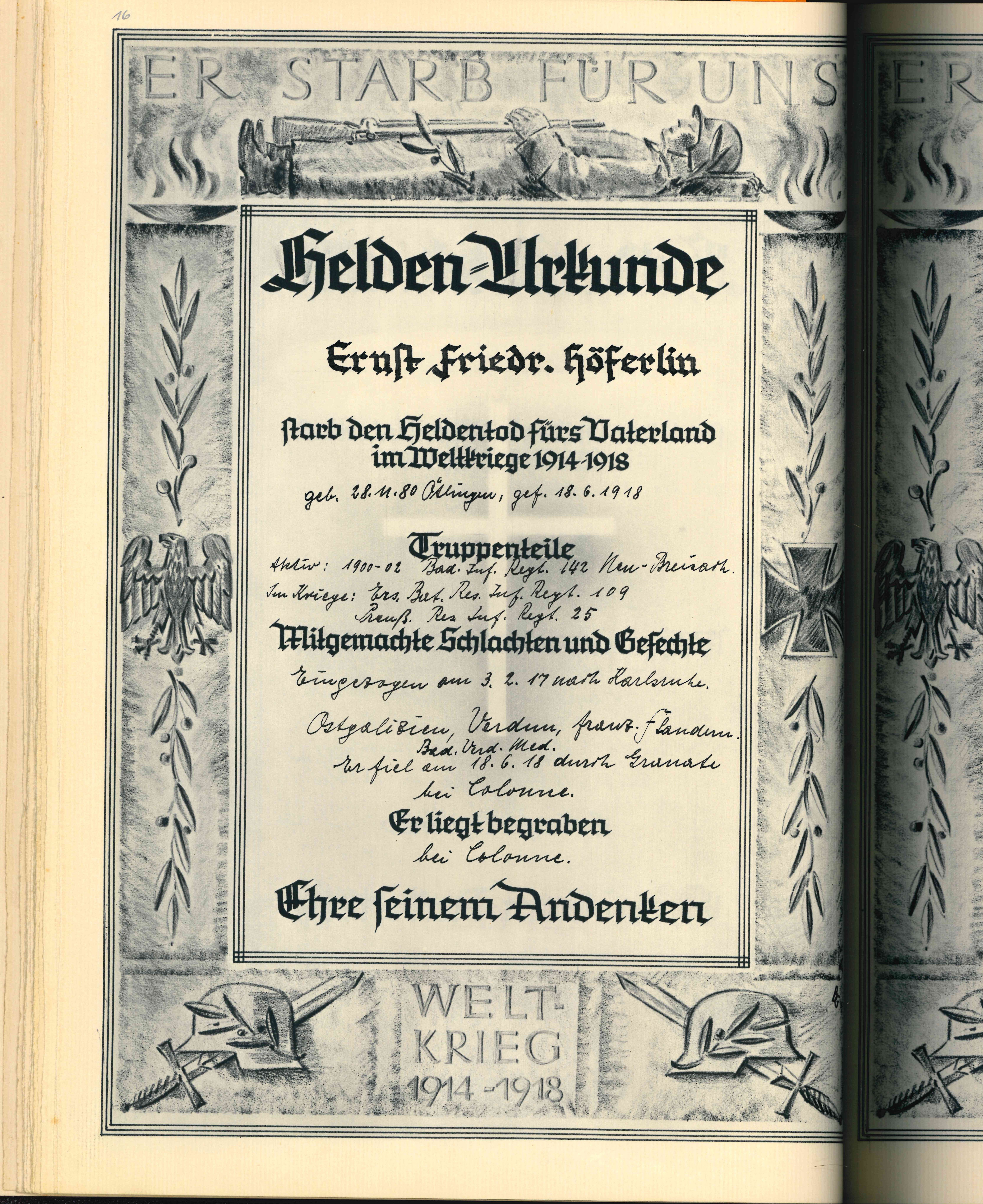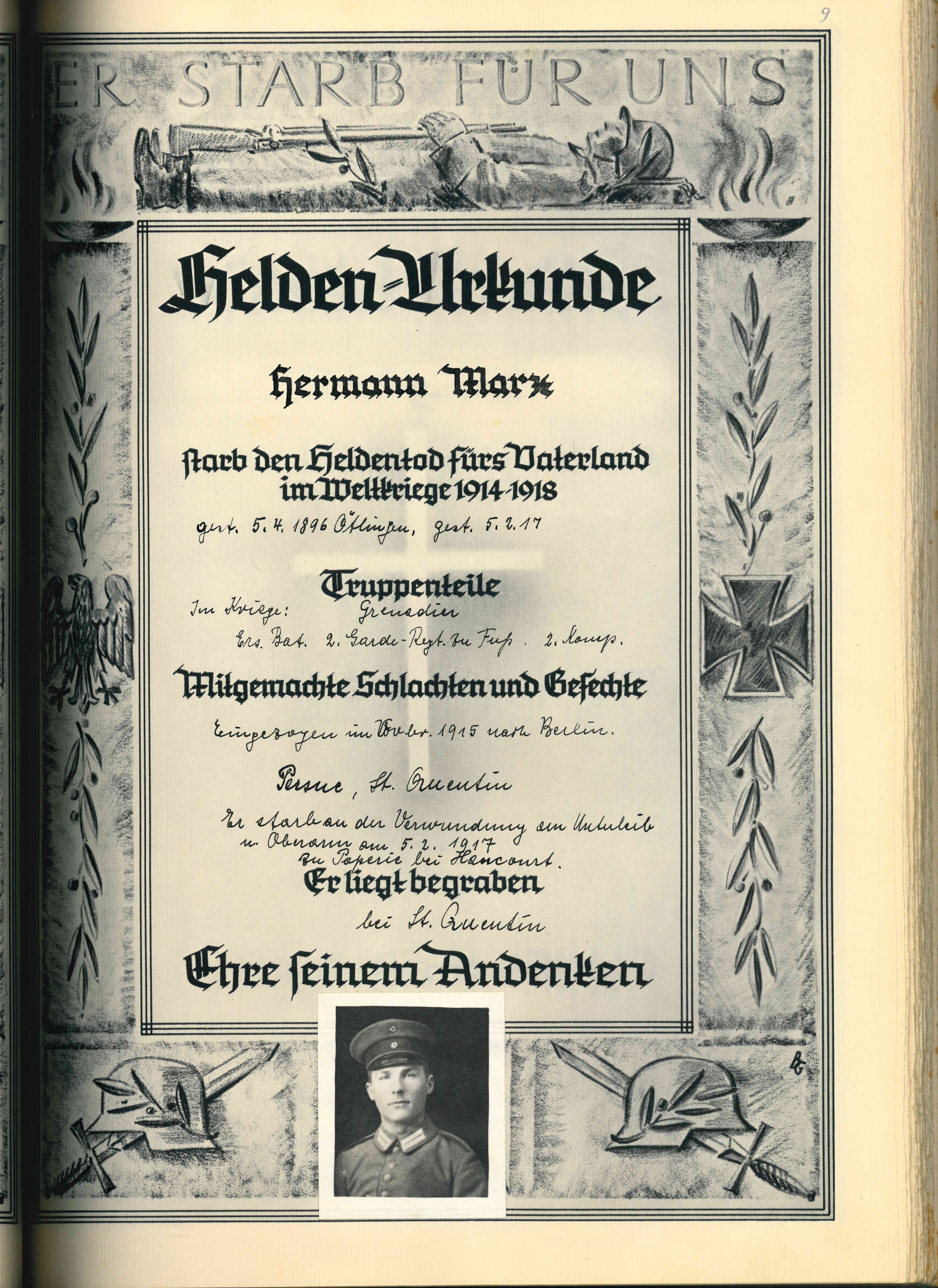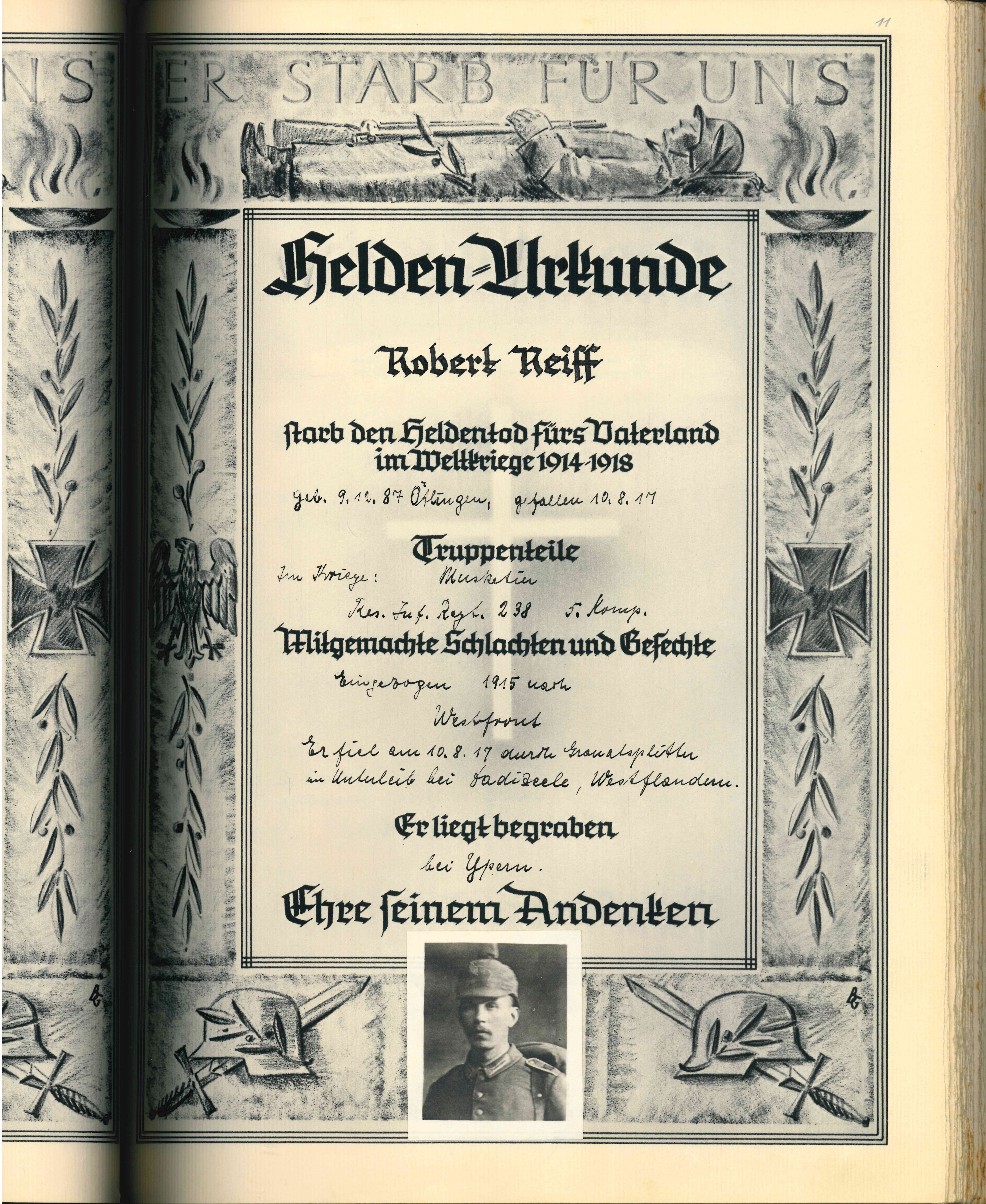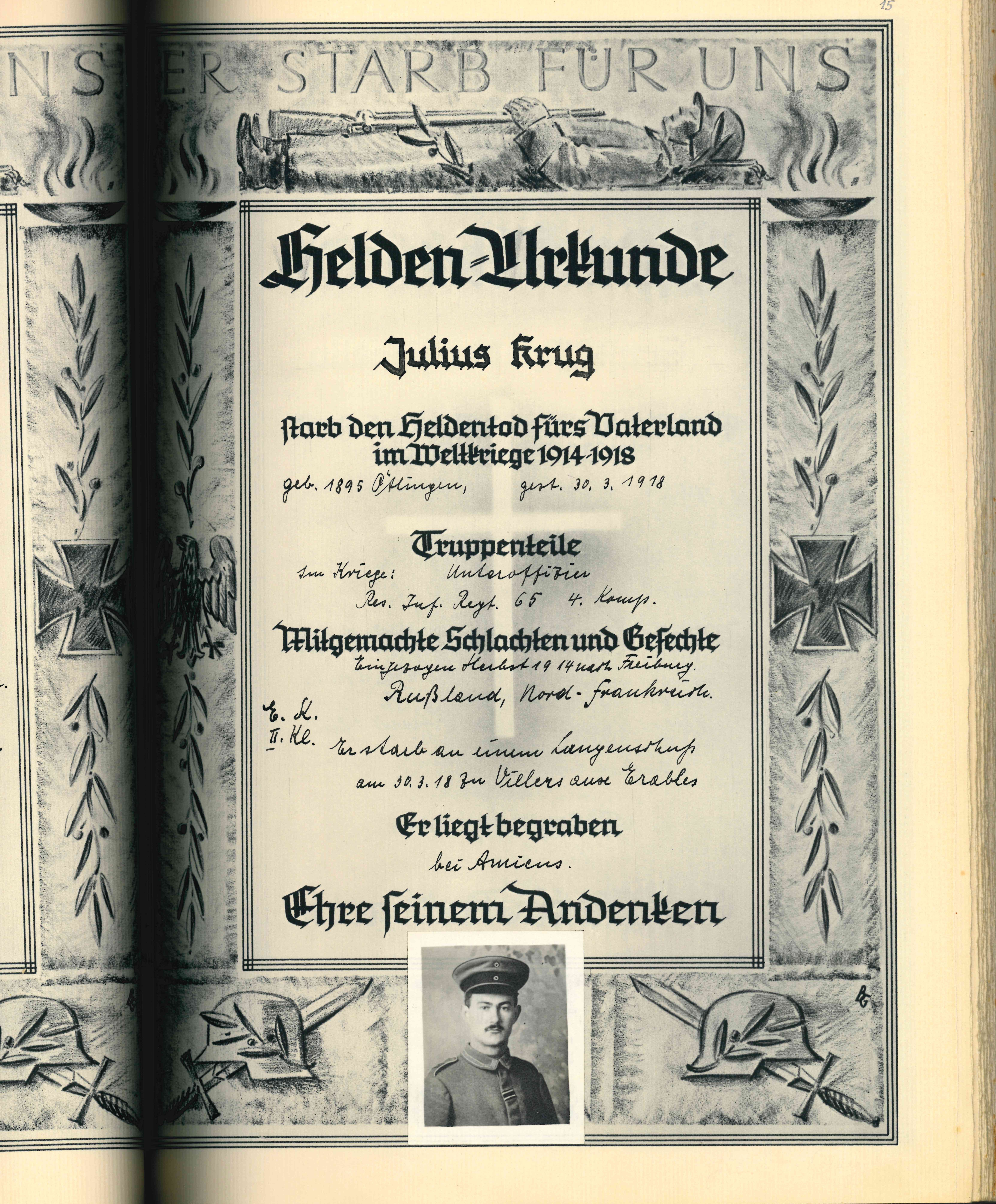 RUPP Hans 07.08.1922 - 31.07.1943 21 Jahre alt aus Ötlingen Gefallen in Garany (RUS) |