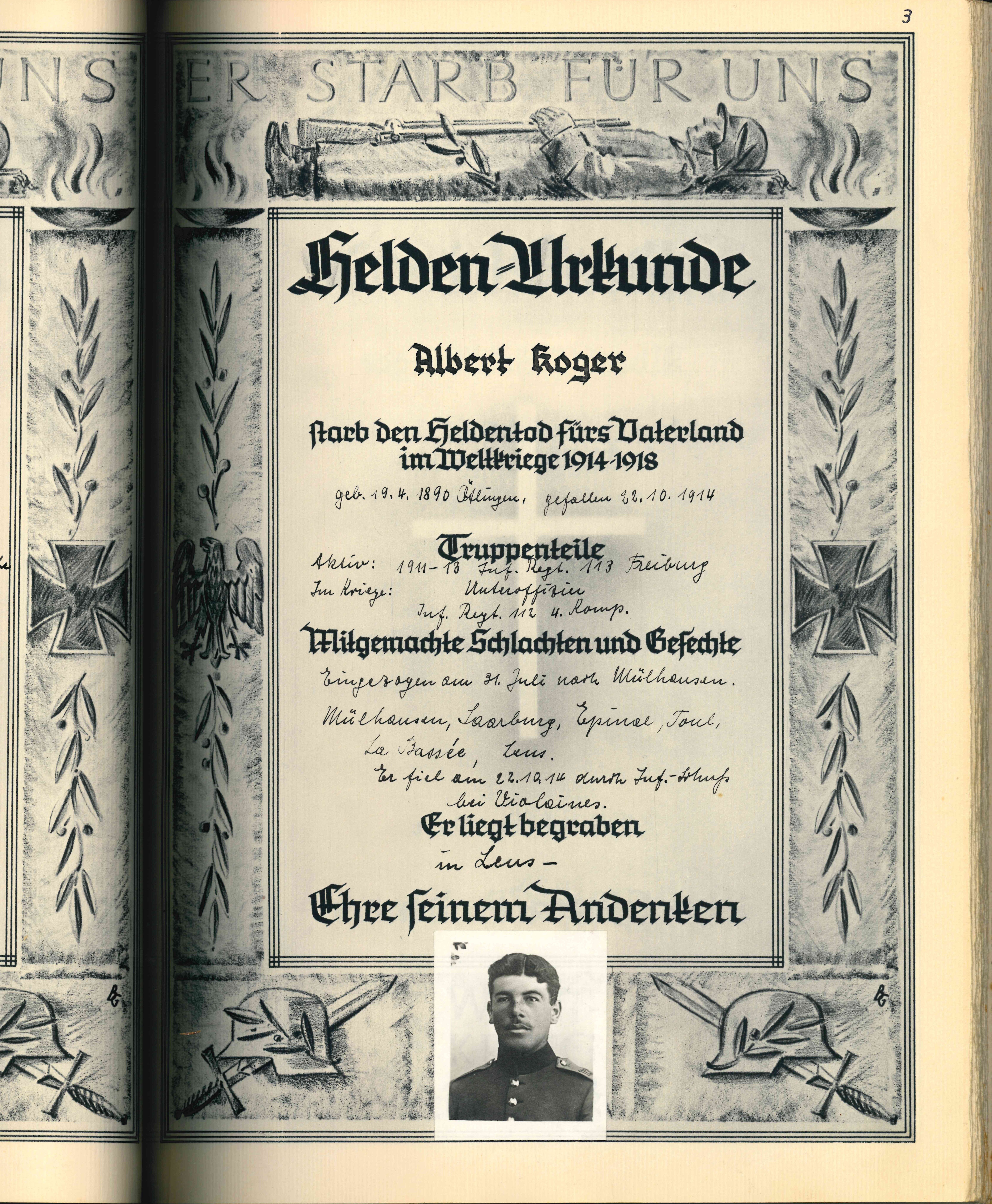 KOGER Johannes 20.01.1788 - 1812 24 Jahre alt aus Ötlingen Vermisst mit den Rheinbundtruppen bei den Napoleonischen Feldzügen |