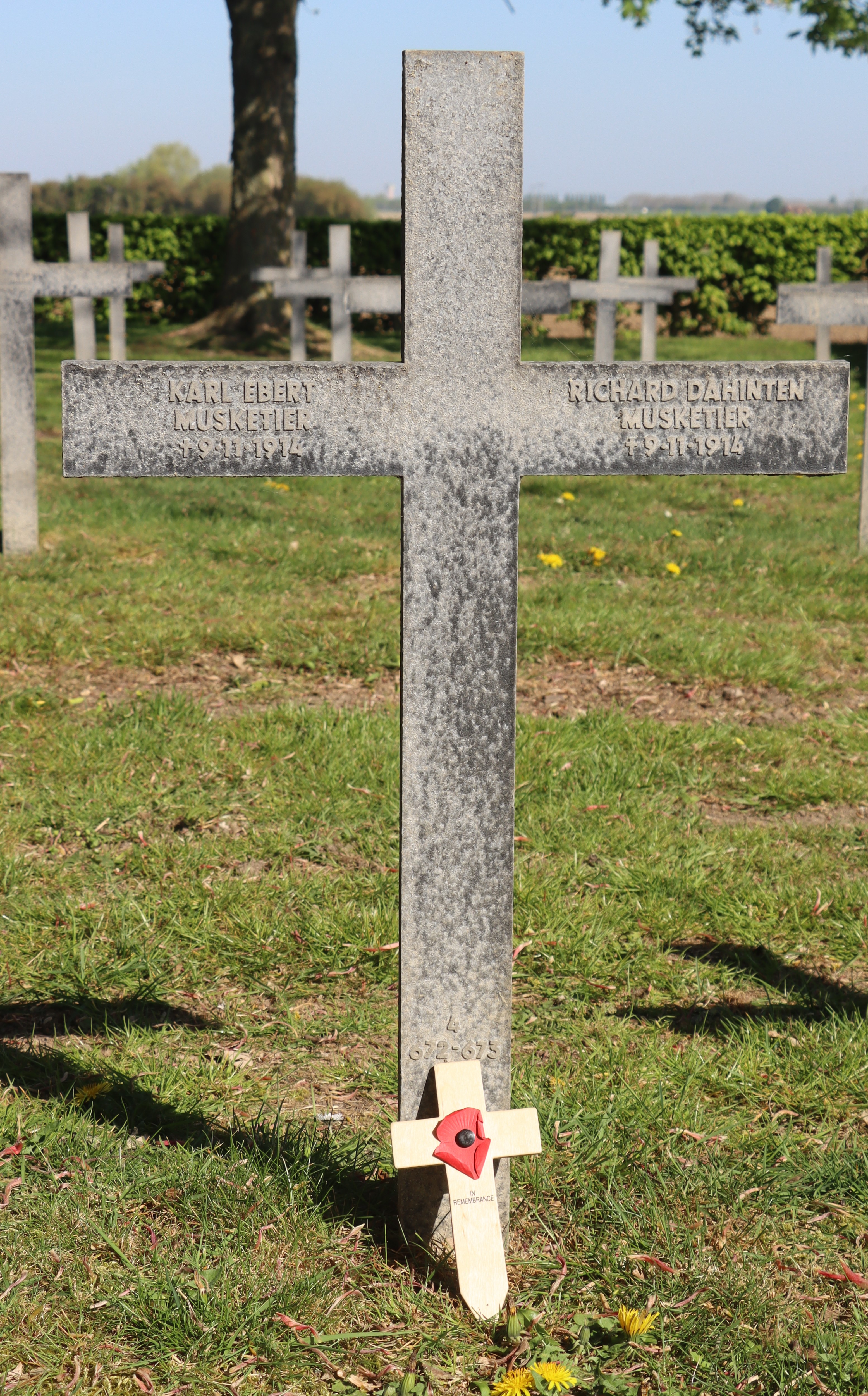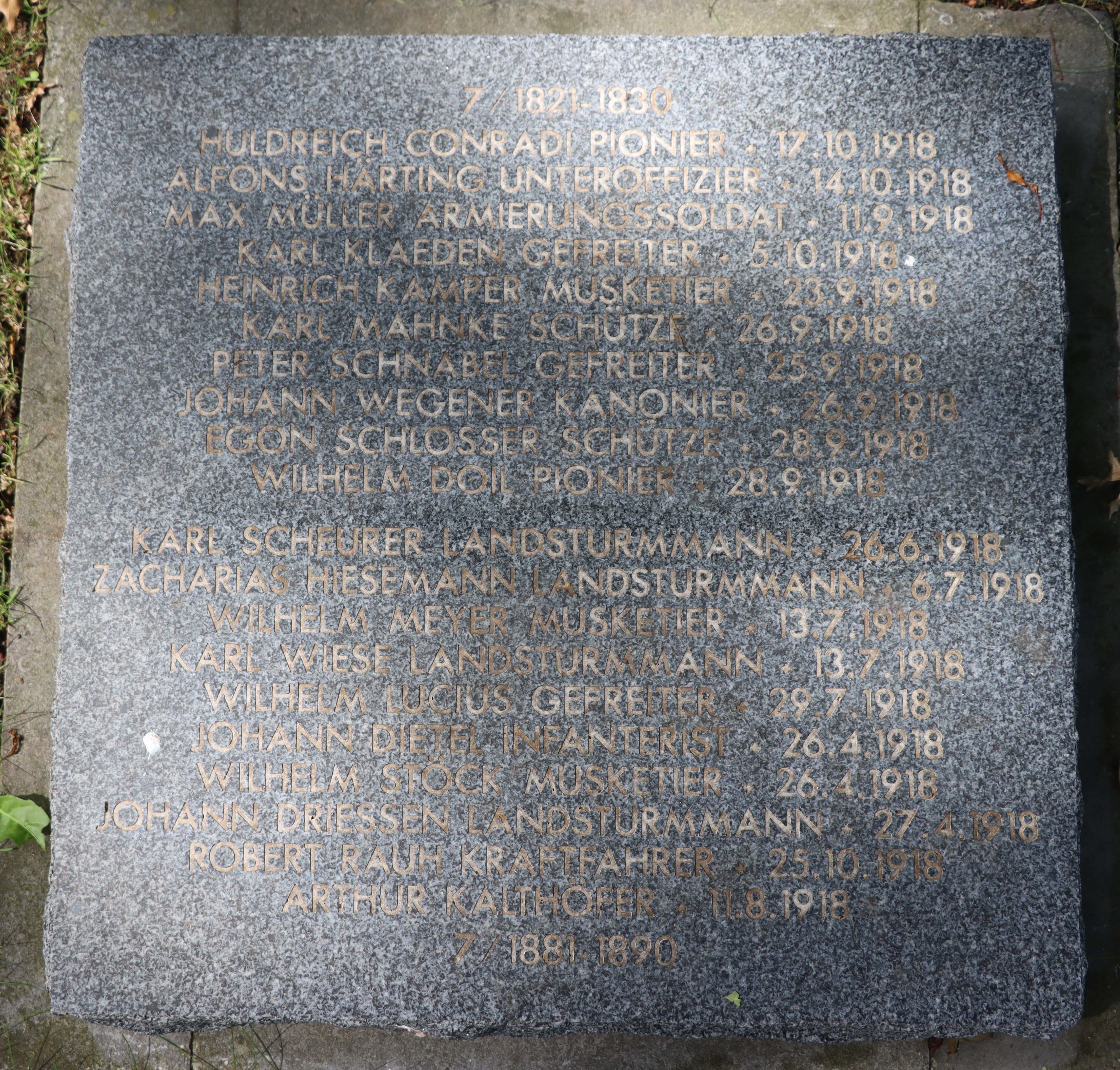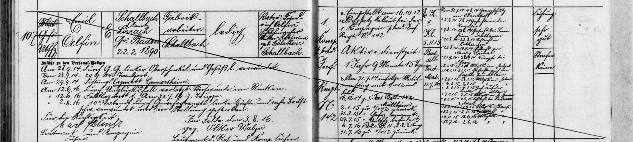 Unteroffizier ÖLFIN Emil 22.02.1890 - 02.08.1916 26 Jahre alt aus Schallbach 7. Badische Infanterie-Regiment No.142 1. Kompagnie Träger des Eisernen Kreuzes 2.Klasse (05.11.1915) Träger der Silbernen Verdienstmedaille am Bande der Militärischen Karl-Friedrich Verdienstmedaille (11.07.1916) Gefallen in Ripont (FR) Kriegsgräberstätte in Monthois (FR) Block 1, Grab 184 |
