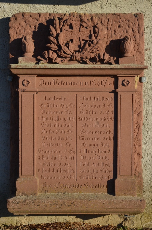 Von den 22 Namen der Gefallenen aus dem 1.Weltkrieg (1914-1918) an der Gedenkplatte einer Hauswand zwischen Kirche und Rathaus in Schallbach, sowie auf dem Kriegerdenkmal auf dem Friedhof in Schallbach, sind 21 davon mit Fabian Coulot verwandt. | Von den 28 Namen der Vermissten und Gefallenen aus dem 2.Weltkrieg (1939-1945) auf dem Denkmal im Firdhof von Schallbach sind 23 davon mit Fabian Coulot verwandt. |