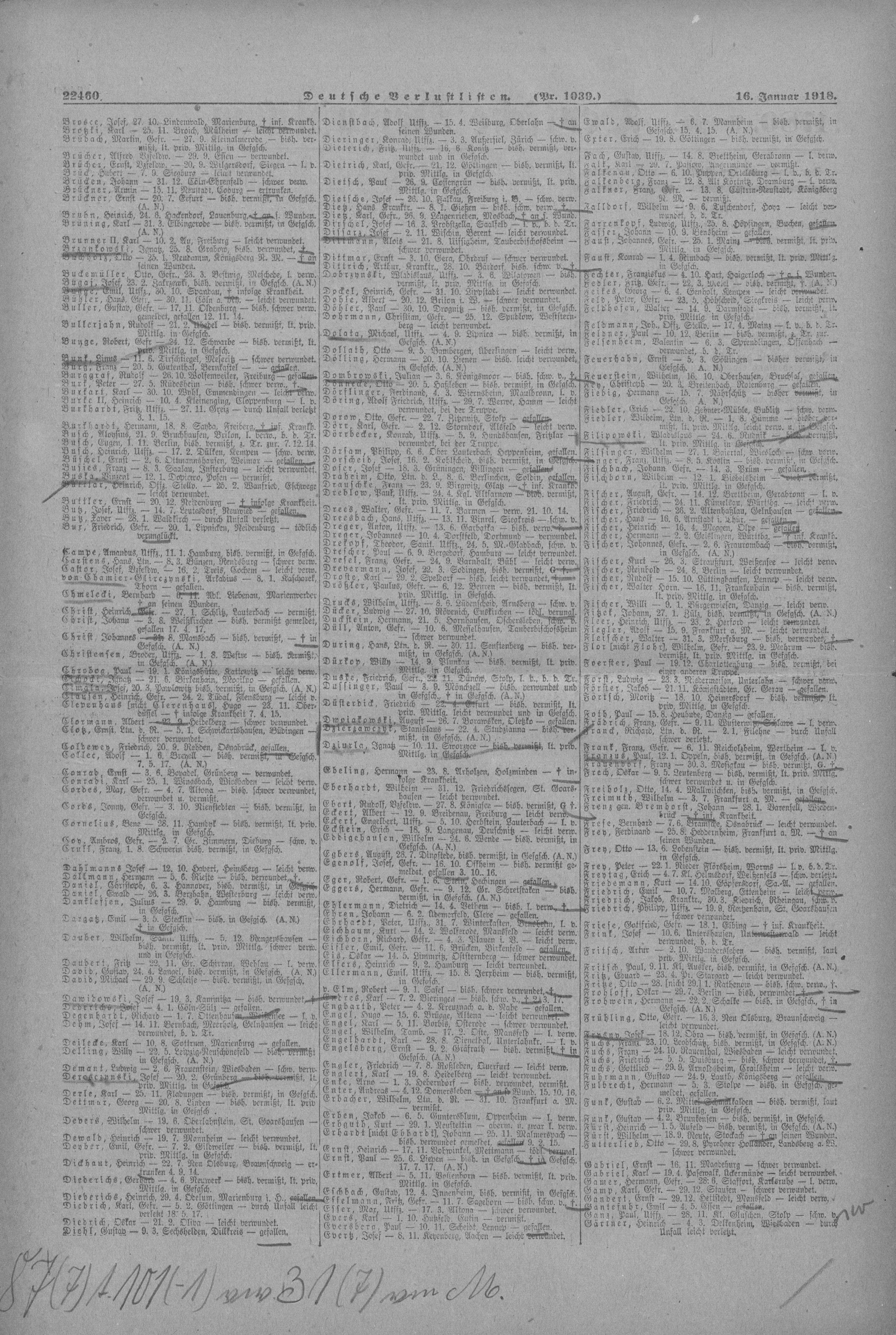 Unteroffizier Karl BURGGRAF 25.01.1895 - ? aus Wolfenweiler Reserve Infanterie Regiment 109 3. Kompagnie Vermisst *Sohn der Cousine von Emil Lupberger |
