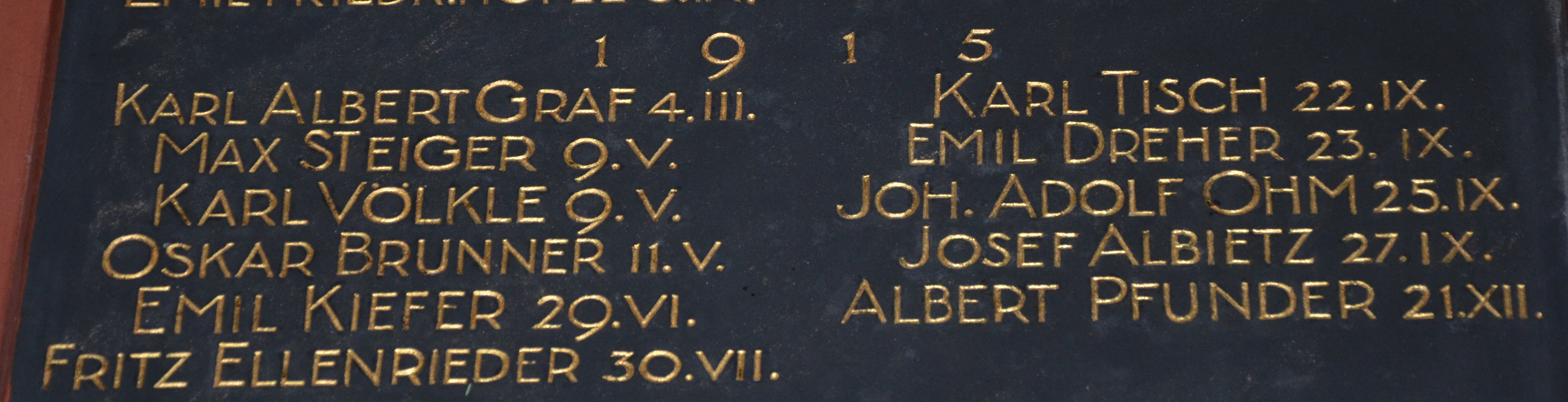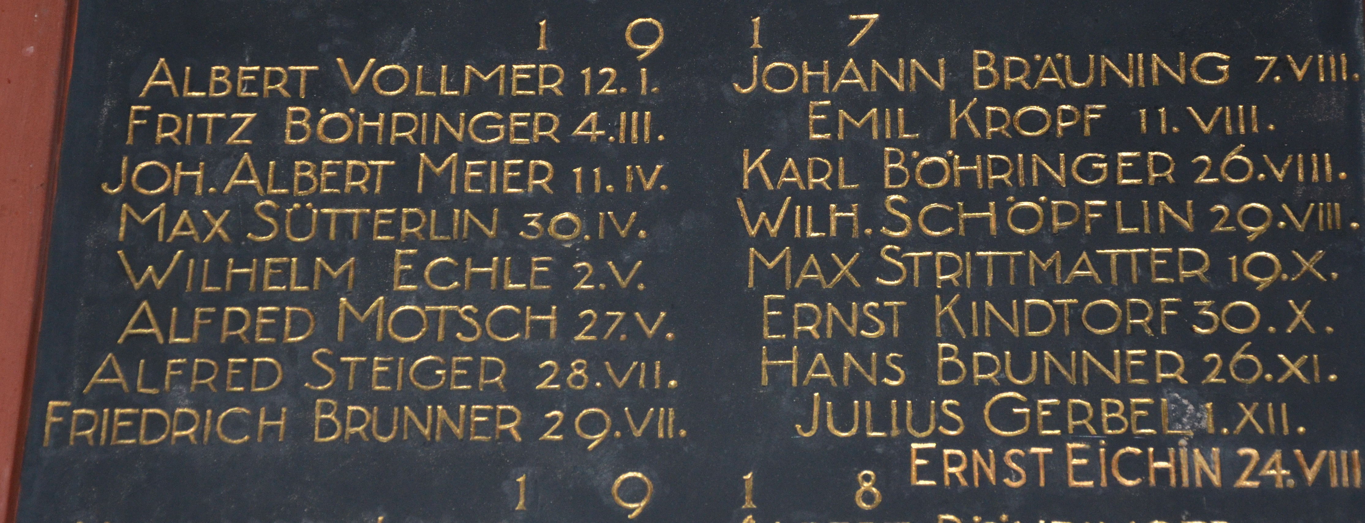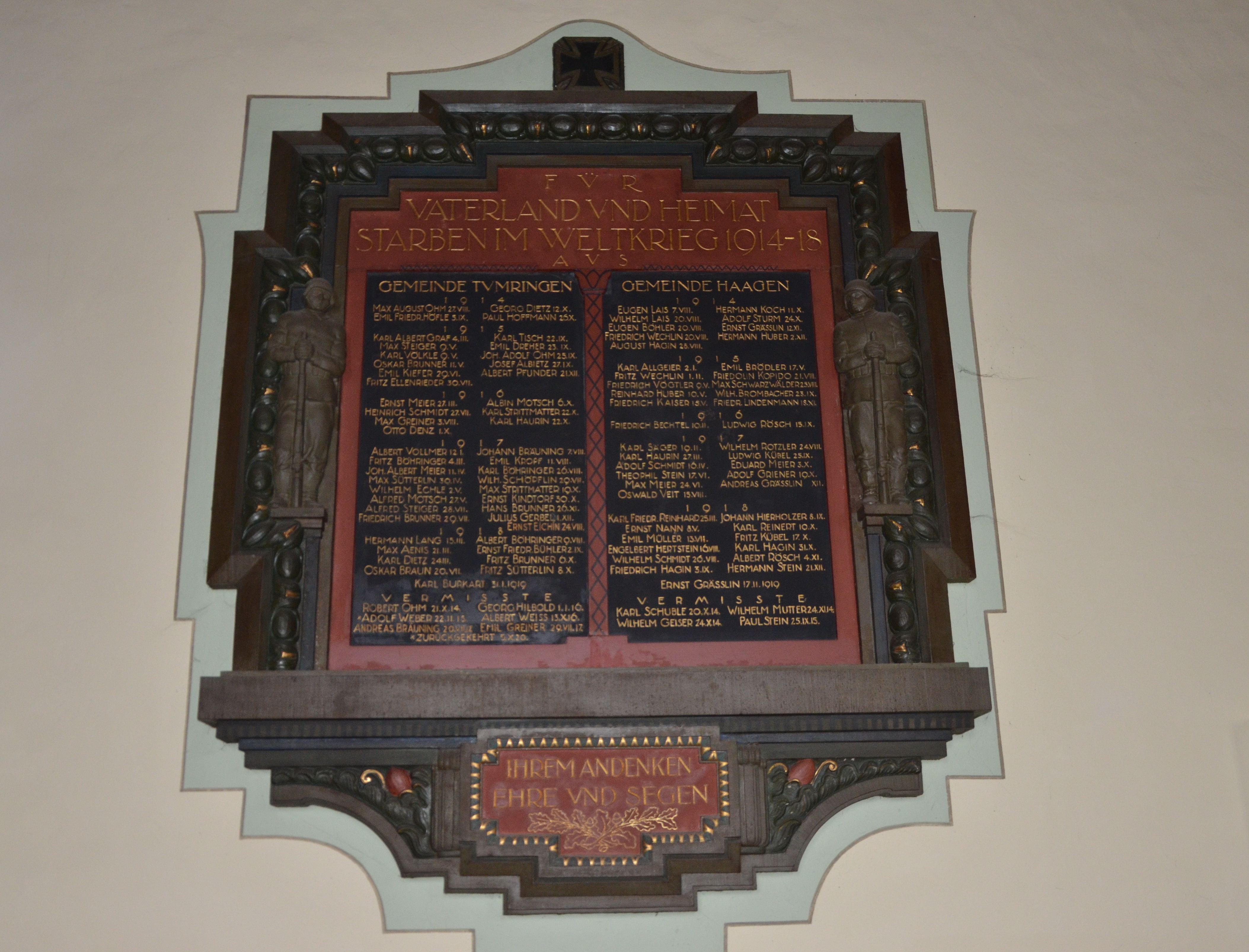 Im Innern der evangelischen Kirche, unterhalb der Burg Rötteln, befindet sich die Gedenkplatte der Gefallenen aus dem 1. Weltkrieg (1914-1918)