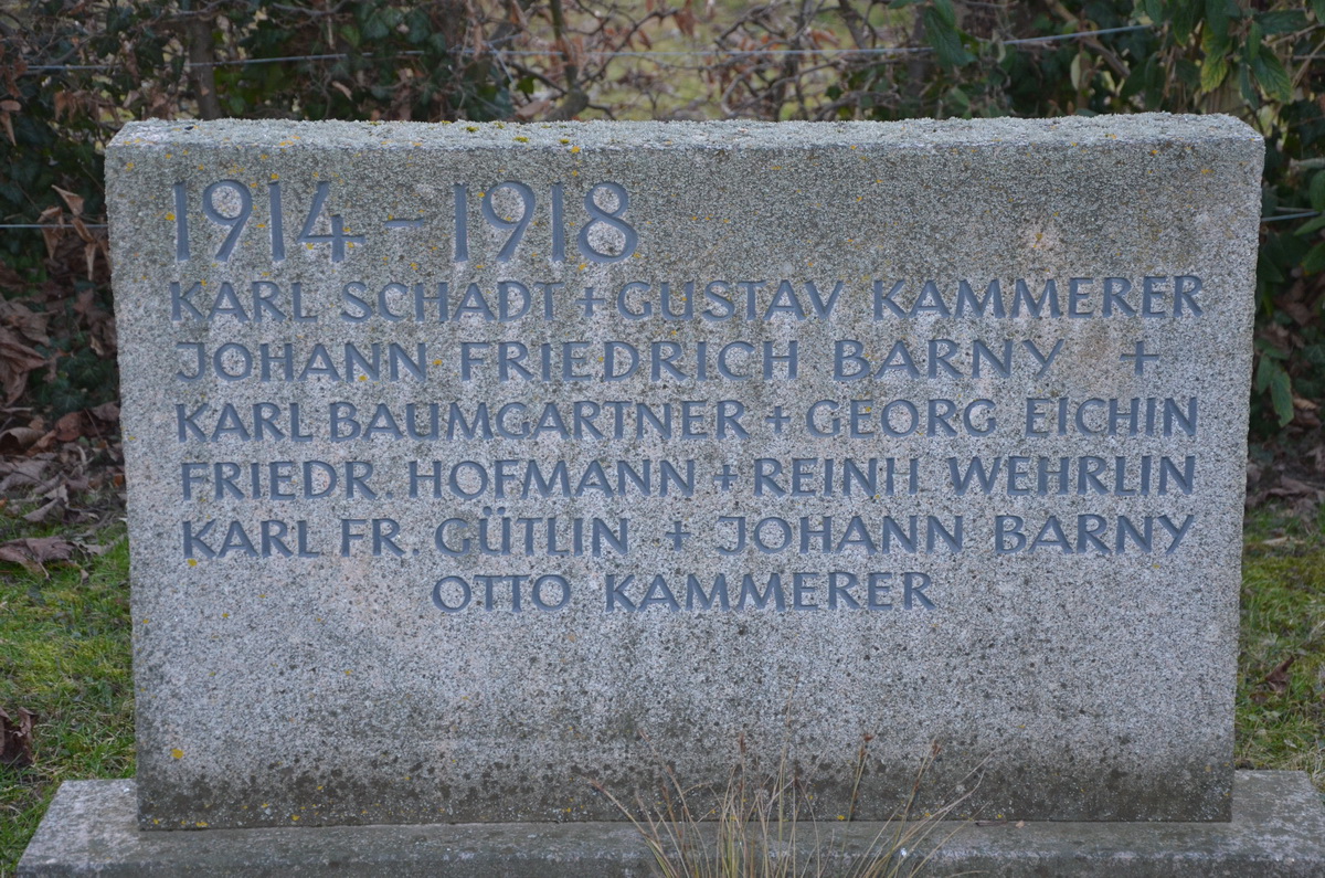 Soldat GÜTLIN Karl Friedrich 13.09.1872 - 27.09.1918 46 Jahre alt aus Wintersweiler "Obwohl sein Name auf dem Gedenkstein der Gefallenen des 1.Weltkriegs vermerkt ist, wurde durch mündliche Überlieferung seiner Angehörigen mitgeteilt, das er nie im Krieg war. Ist wahrscheinlich an der damals grassierenden Spanischen Grippe gestorben |
