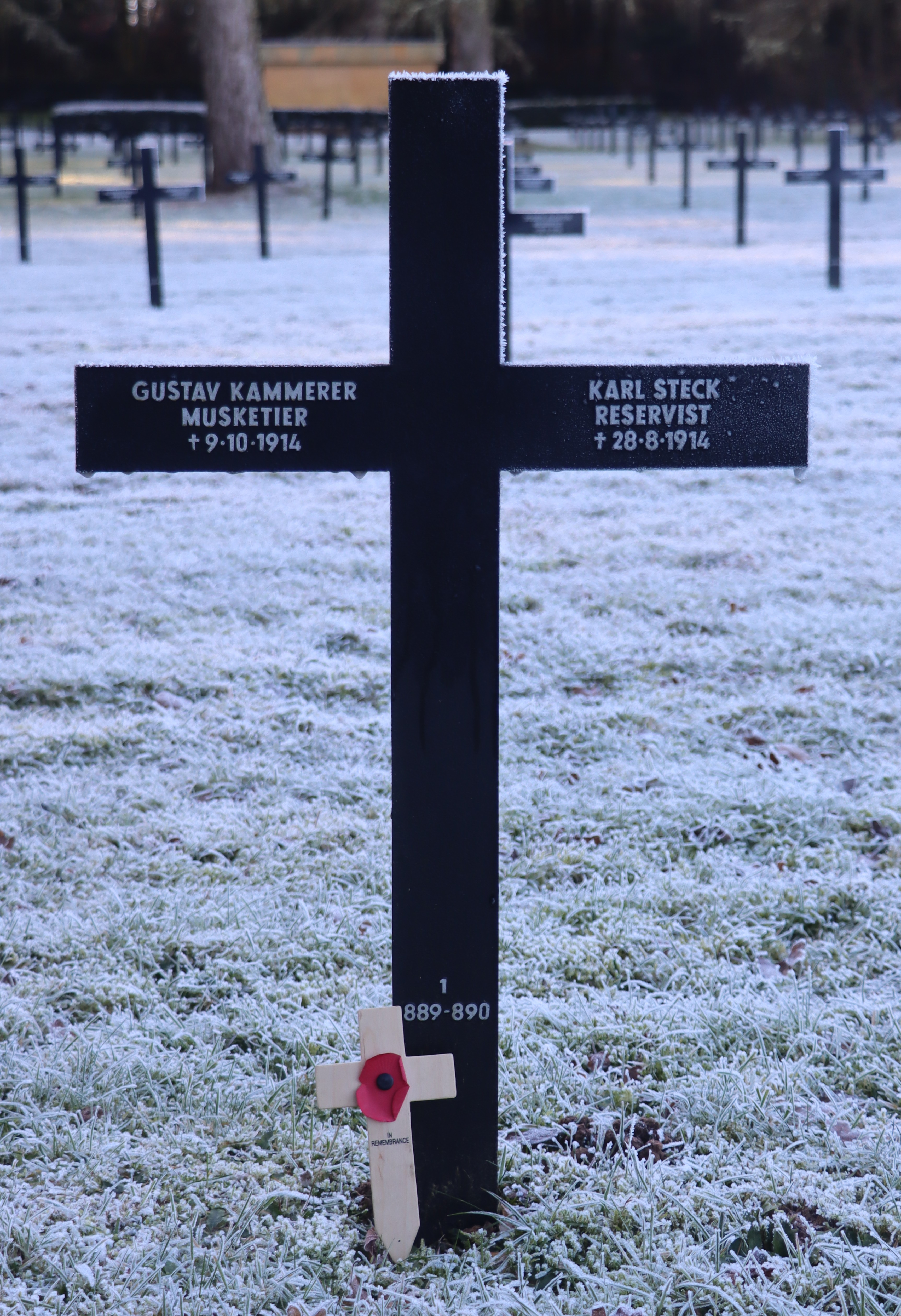 Soldat KAMMERER Otto 21.02.1887 - 19.10.1918 31 Jahre alt aus Wintersweiler 3. Landsturm Infanterie Ersatz Bataillon Rastatt (XIV 28) 5. Kompagnie Verstorben im Lazarett an Lungenentzündung |