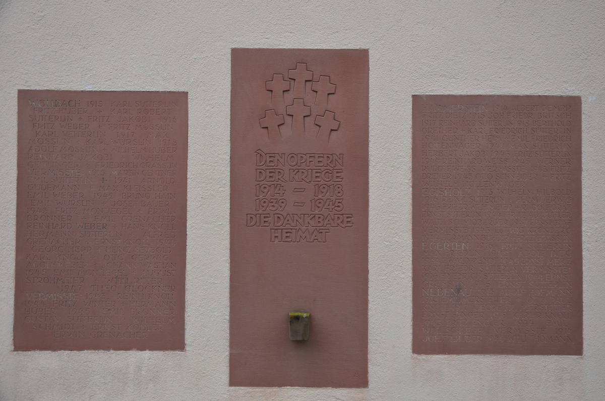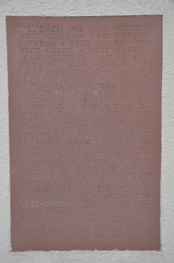 Im Jahr 2017 feierte das Dorf sein 1250-jähriges Bestehen. Von den auf den Gedenkplatten (an der Aussenwand der evangelischen Kirche von Wollbach) verzeichneten Soldaten welche in den Napoleonischen Kriegen (1792-1815), dem 1. Weltkrieg (1914-18) und dem 2. Weltkrieg (1939-45) auf dem Feld der Ehre blieben, sowie zivile Kriegsopfer gehören 75 Männer und Frauen zur Familie. Hier ihre Namen: